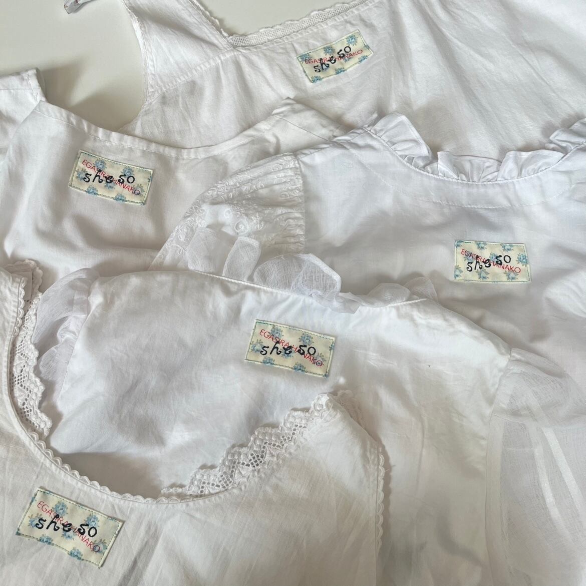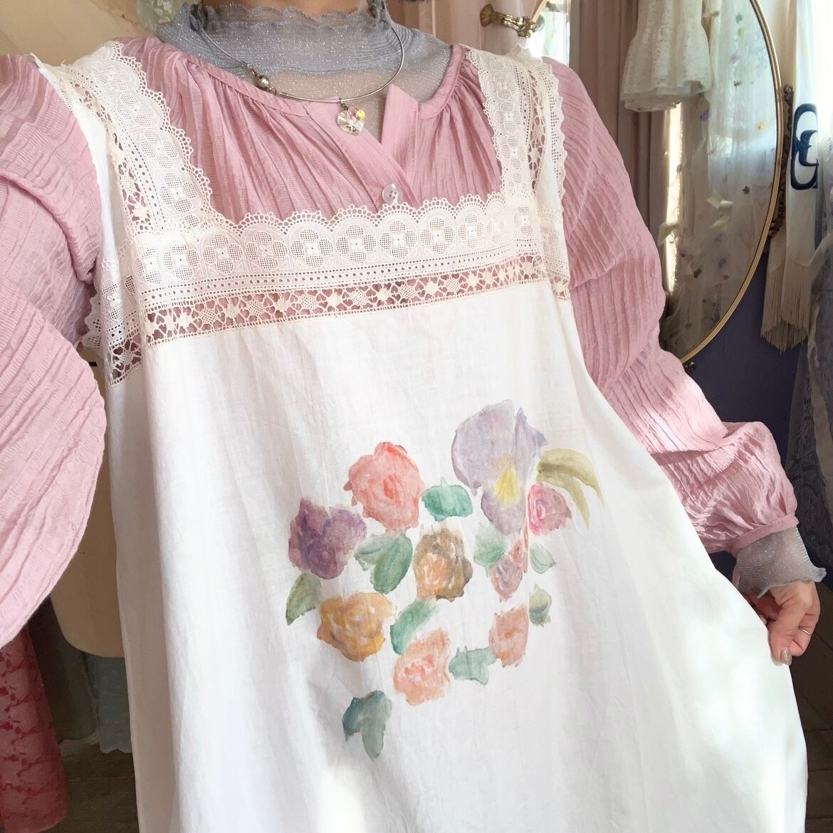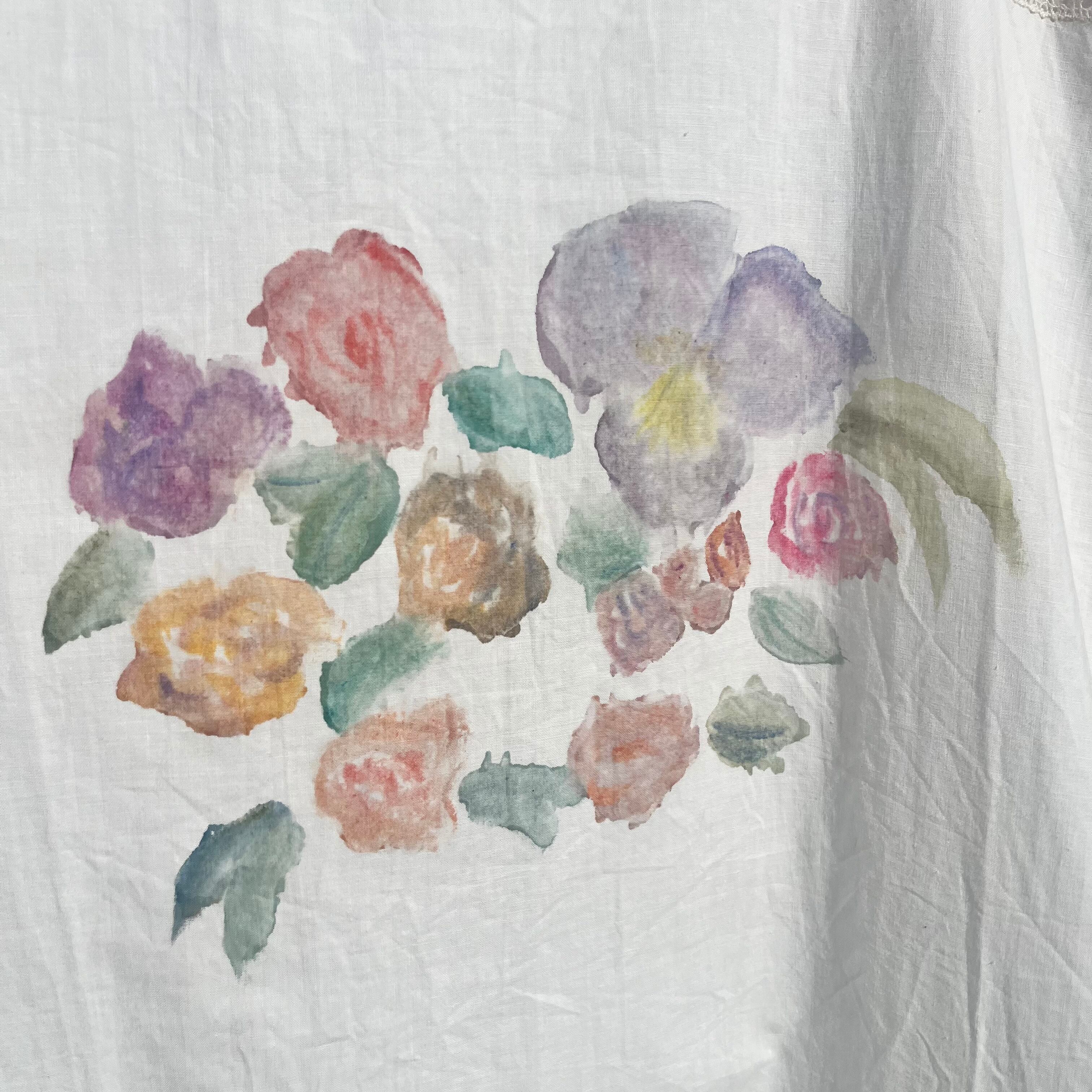 EGASIRA HANAKO さんにヴィンテージのコットンブラウスやワンピースにハンドペイントで自由に絵を描いていただいたお品です
