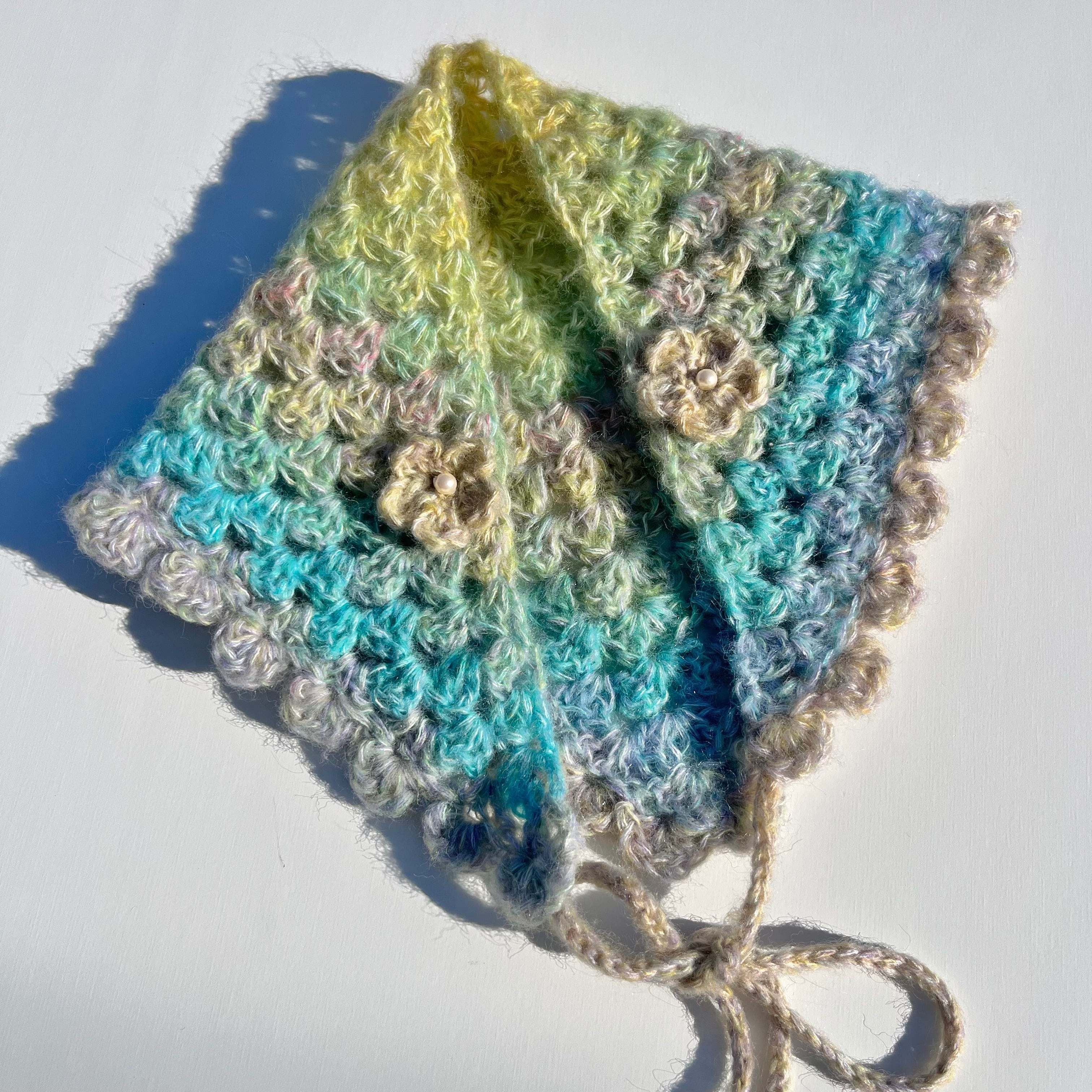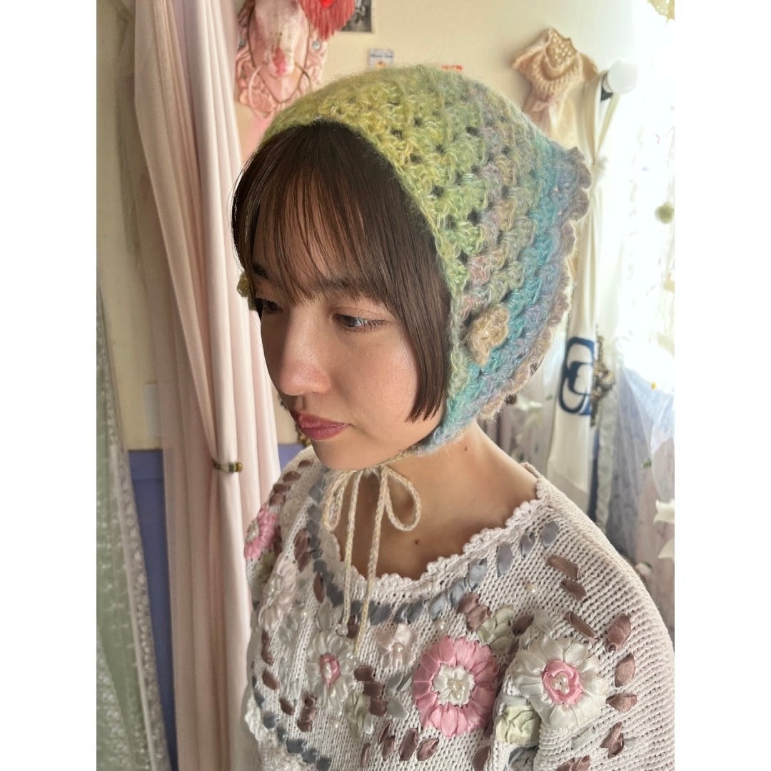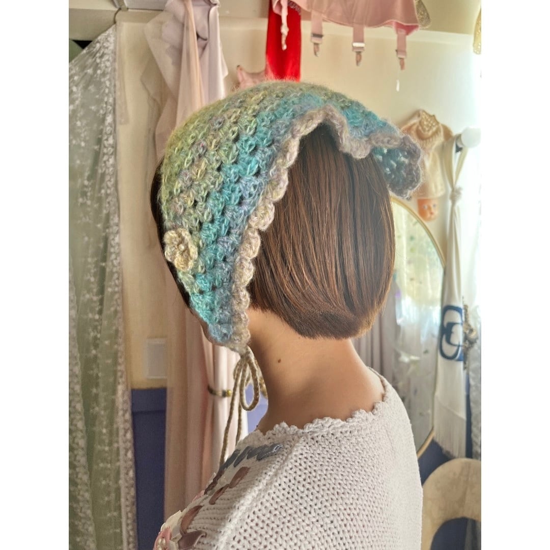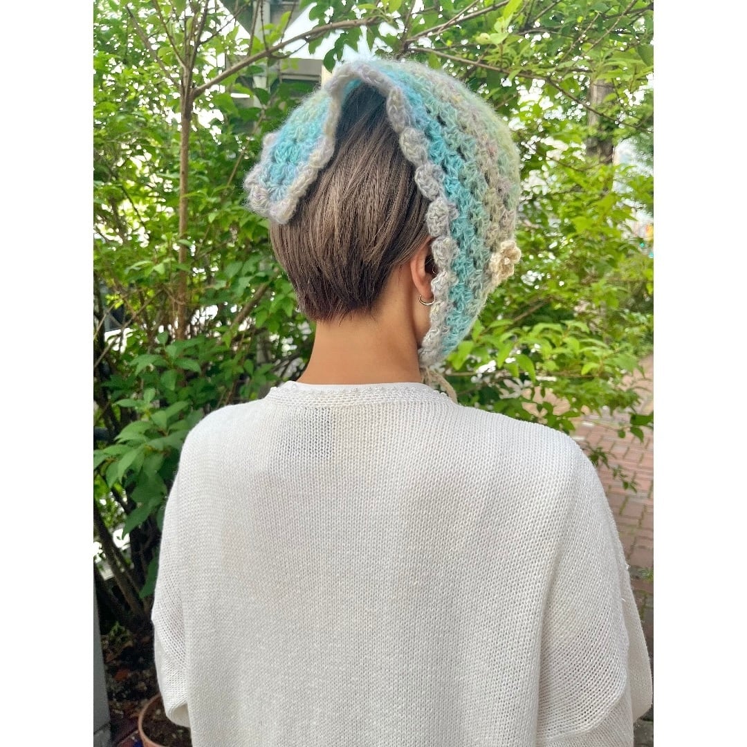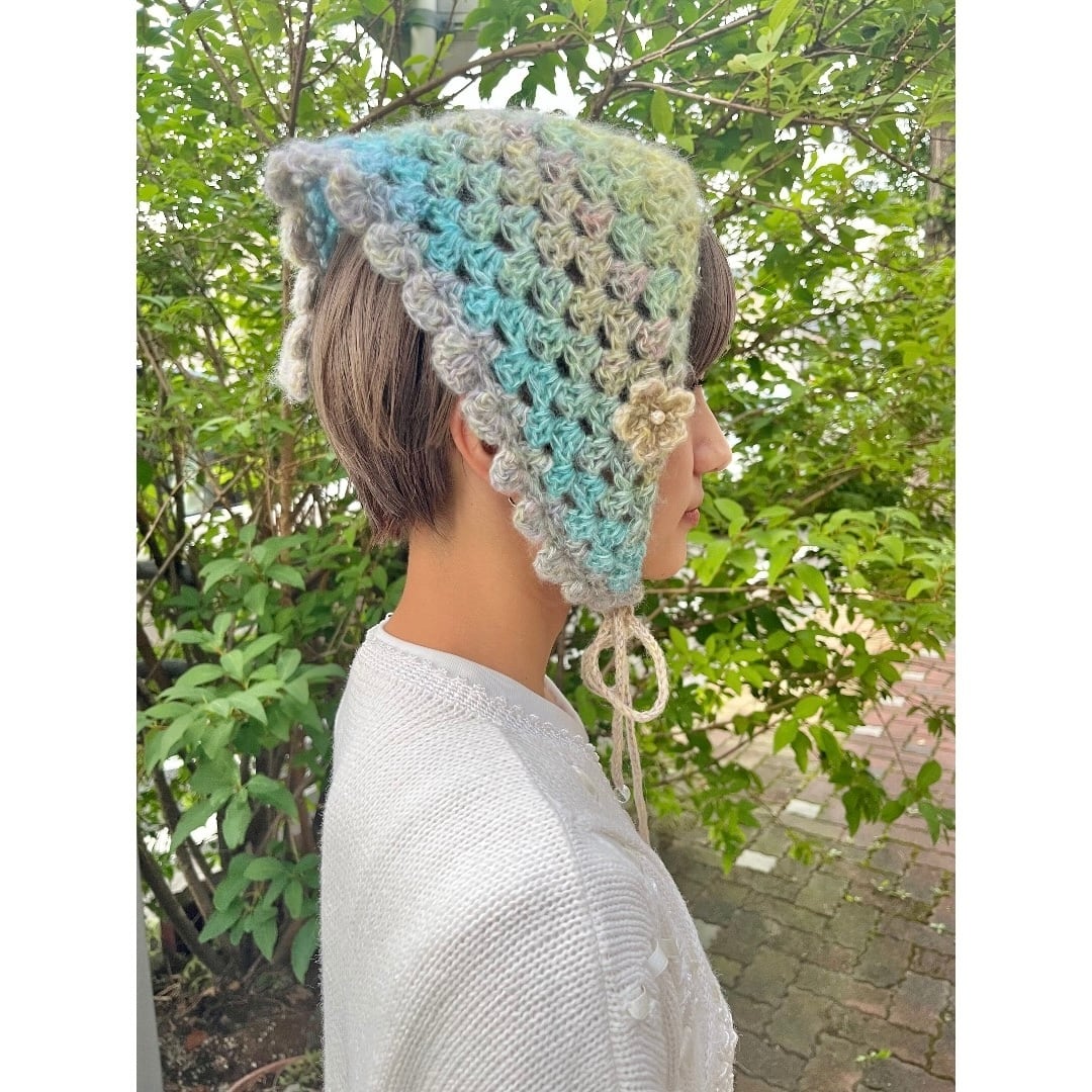 こちらはひとつの玉から編み始めてグラデーションになっていく毛糸を使用しました。