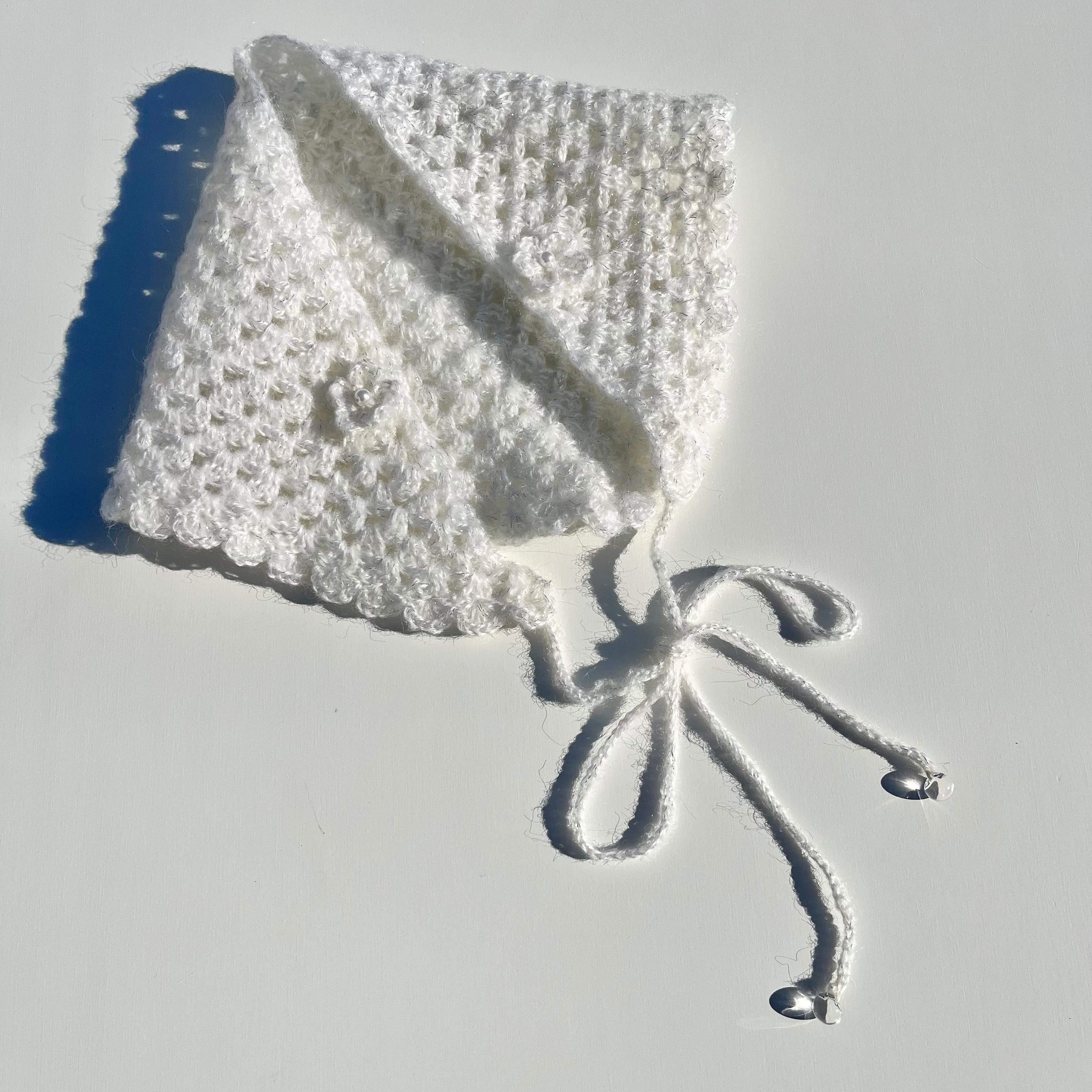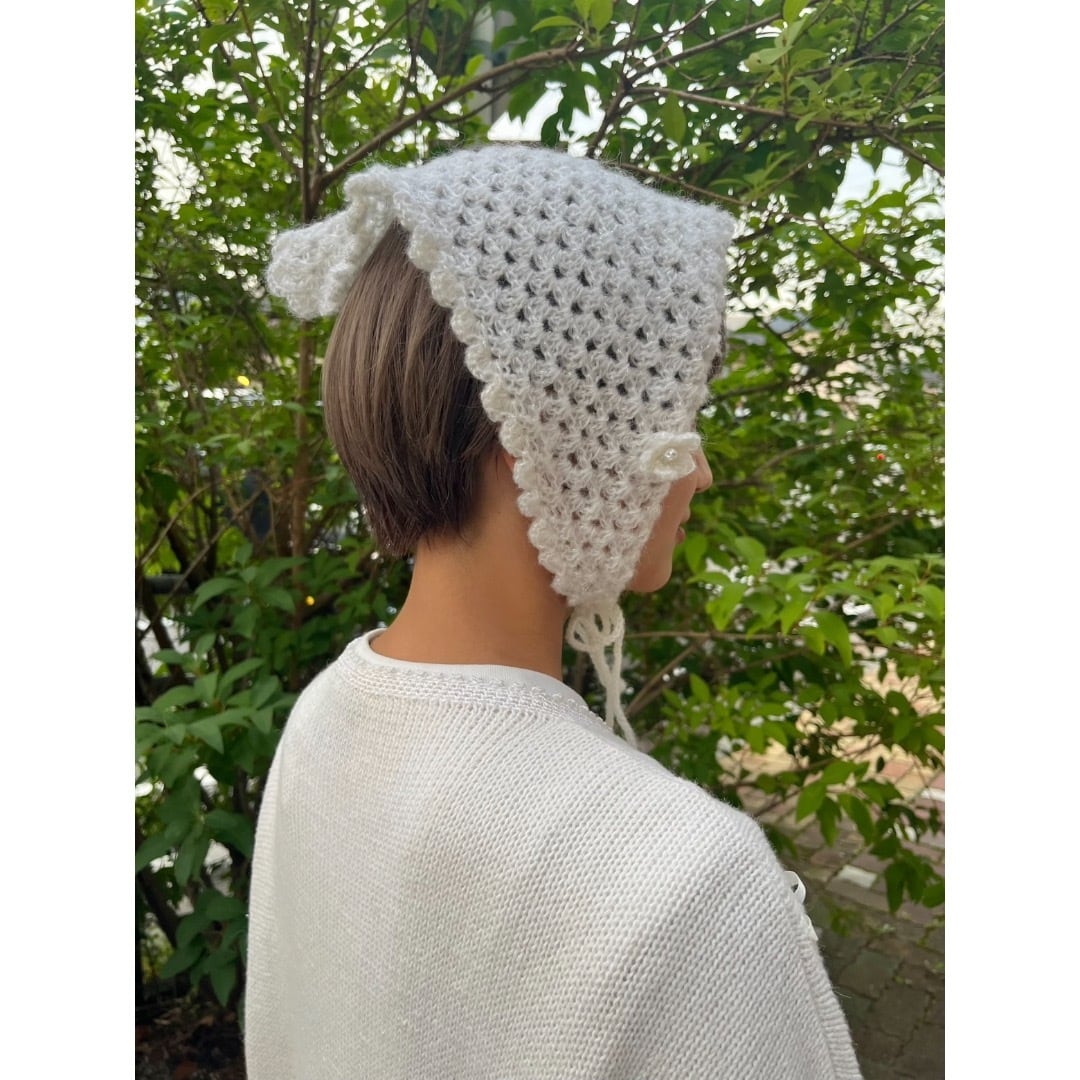 こちらは白い毛糸の中に細いシルバーラメの糸を混ぜて編みました。