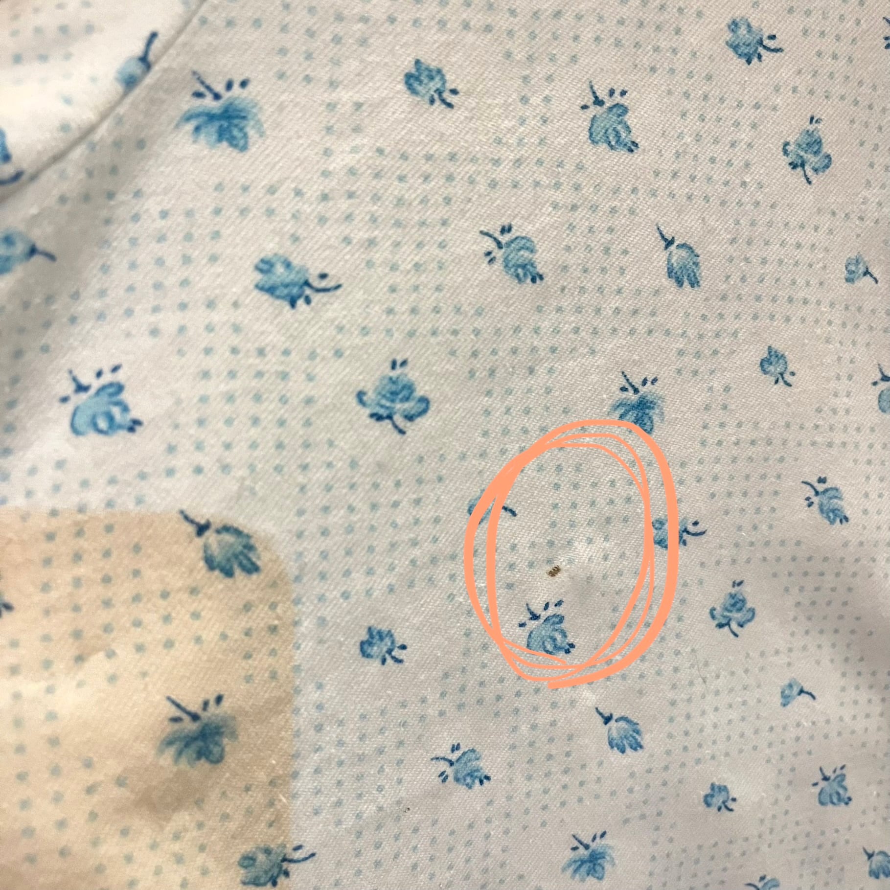 丸をつけた部分、右胸元に小さな汚れあり