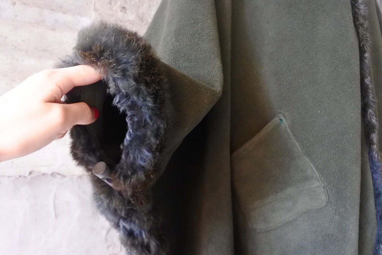 お色は深いグリーンでボディはフリース素材のような触り心地、