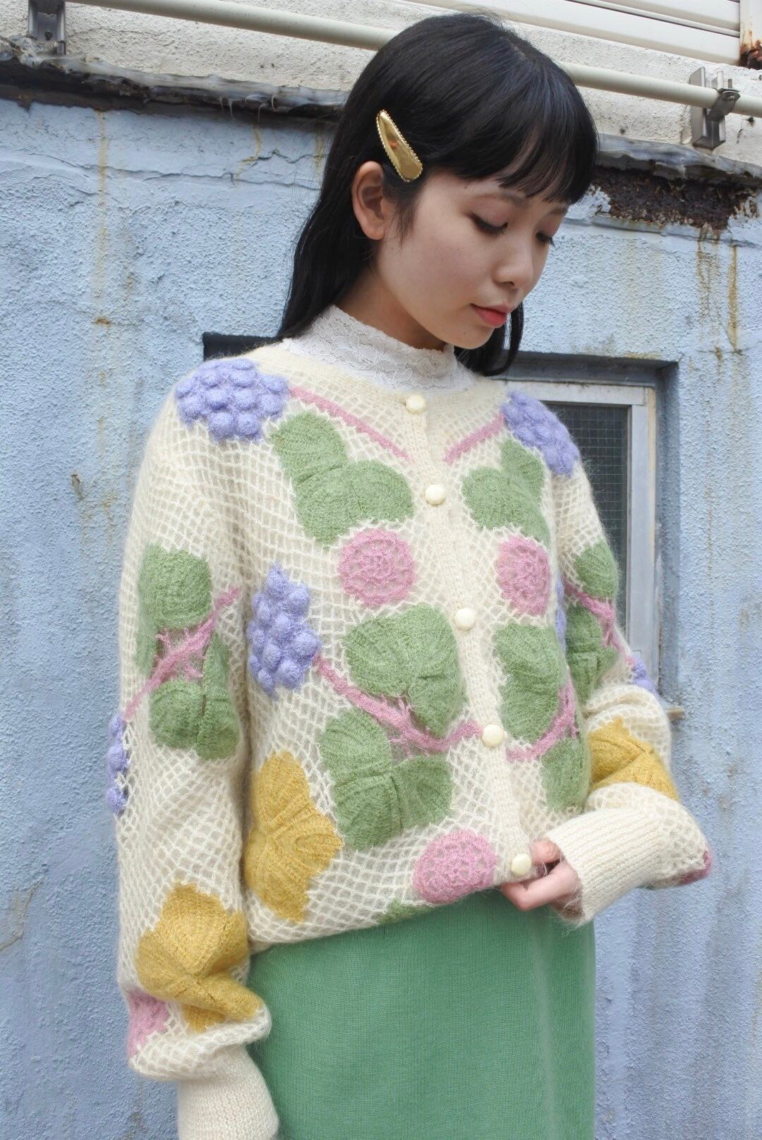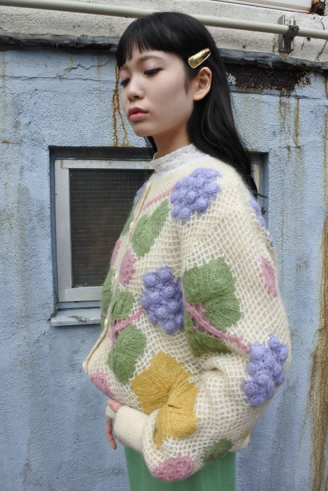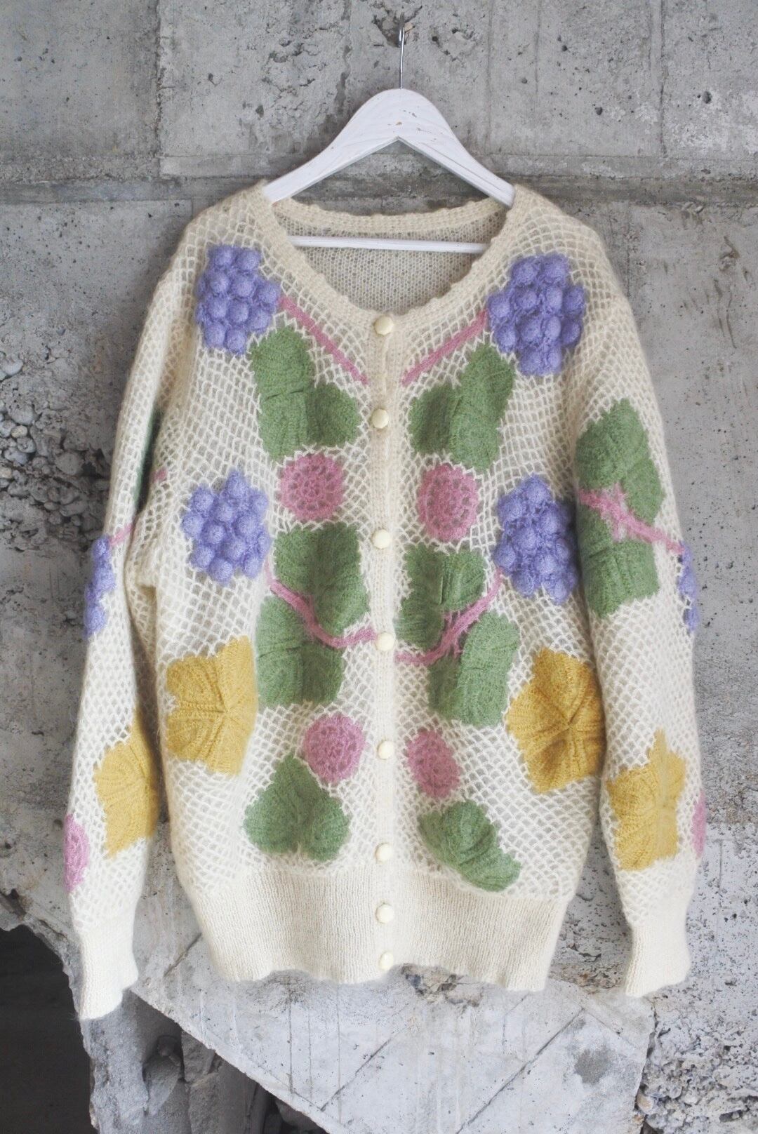 葡萄モチーフのほっこりした鍵編みカーディガン 。