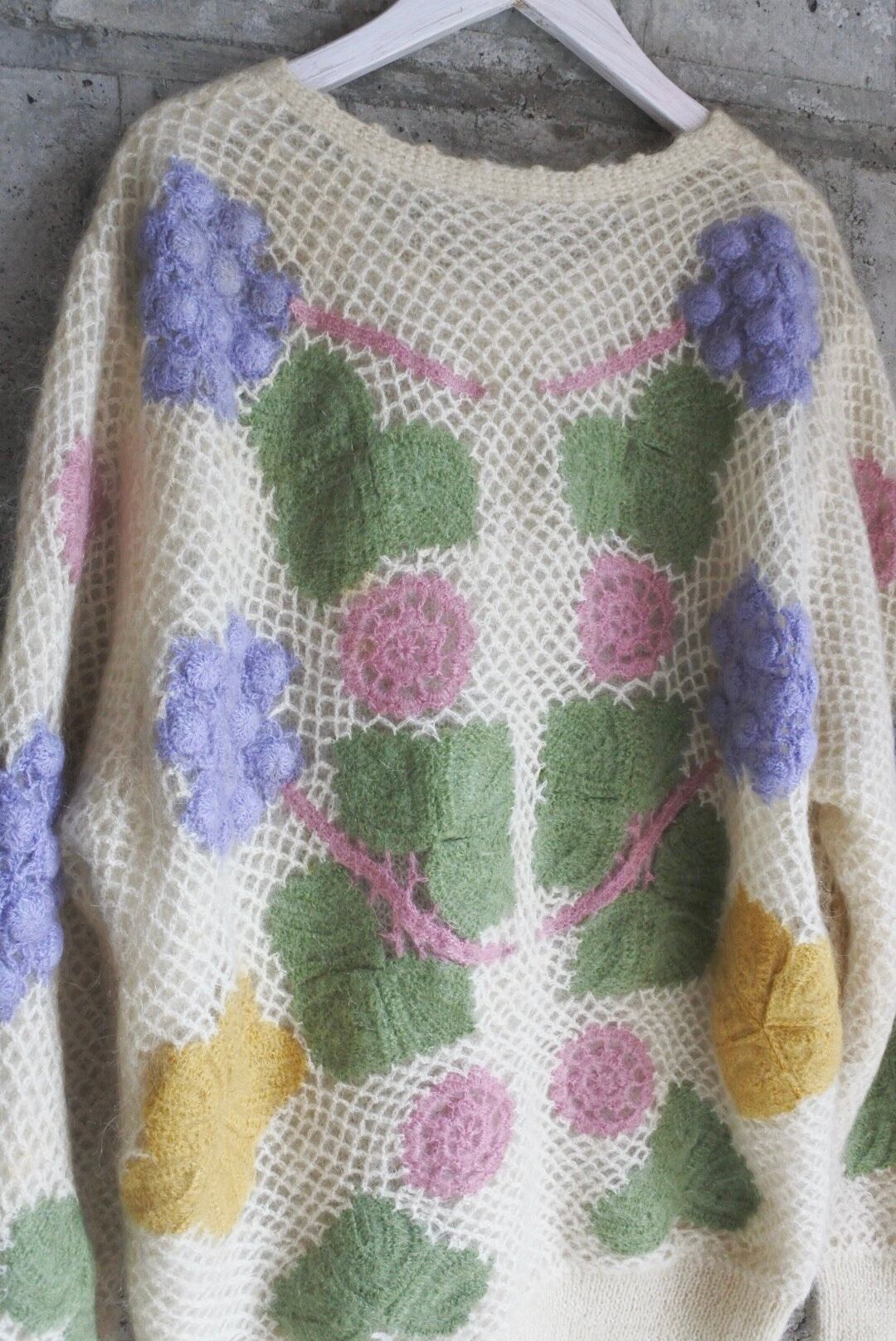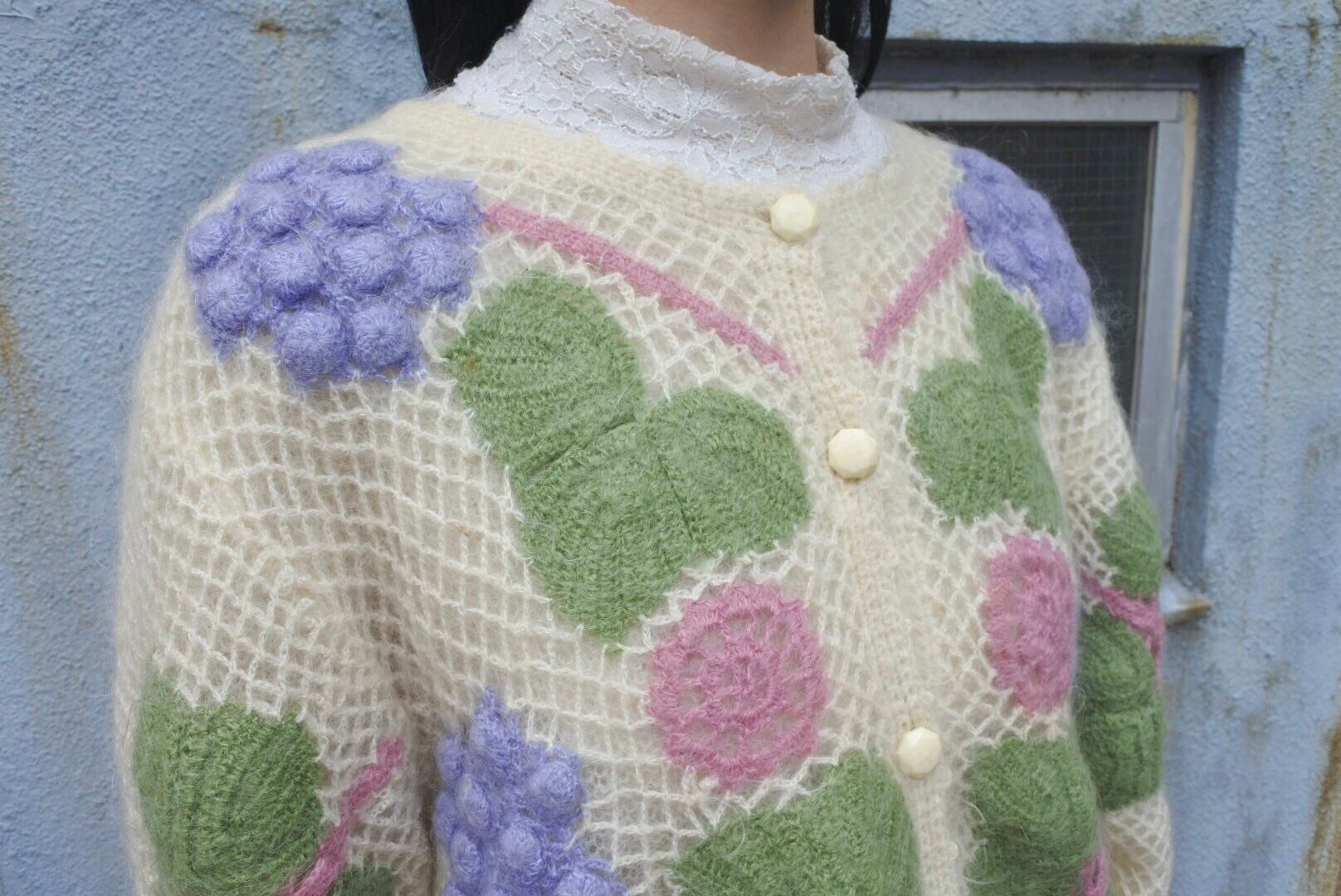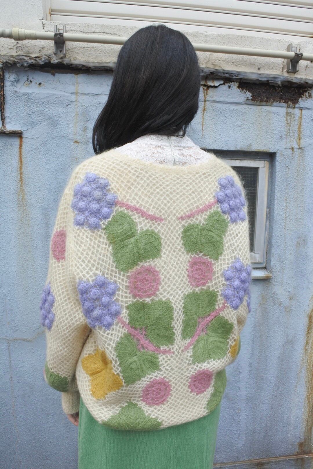 葡萄モチーフのほっこりした鍵編みカーディガン 。