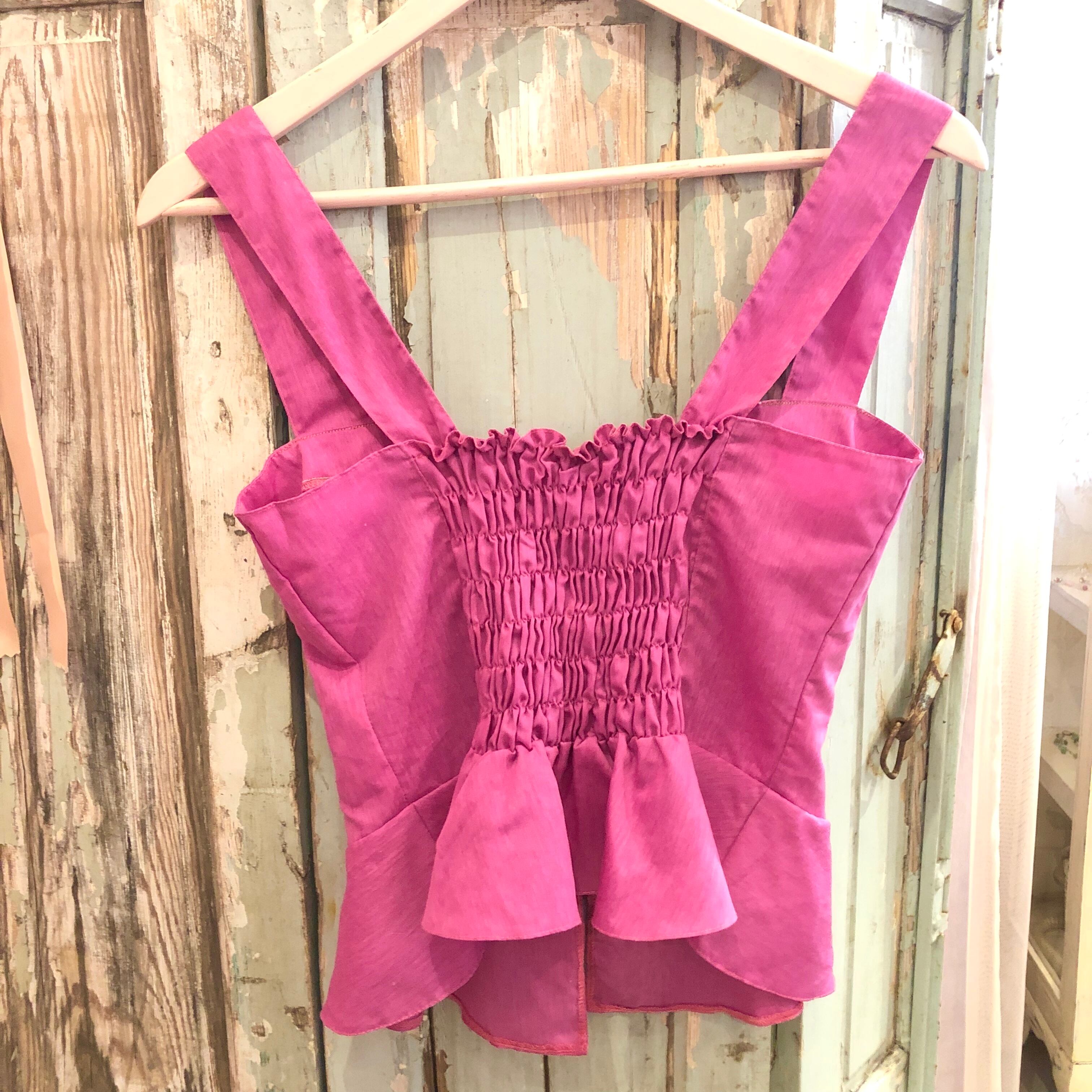 後ろがシャーリングになっている春夏生地のビスチェです。