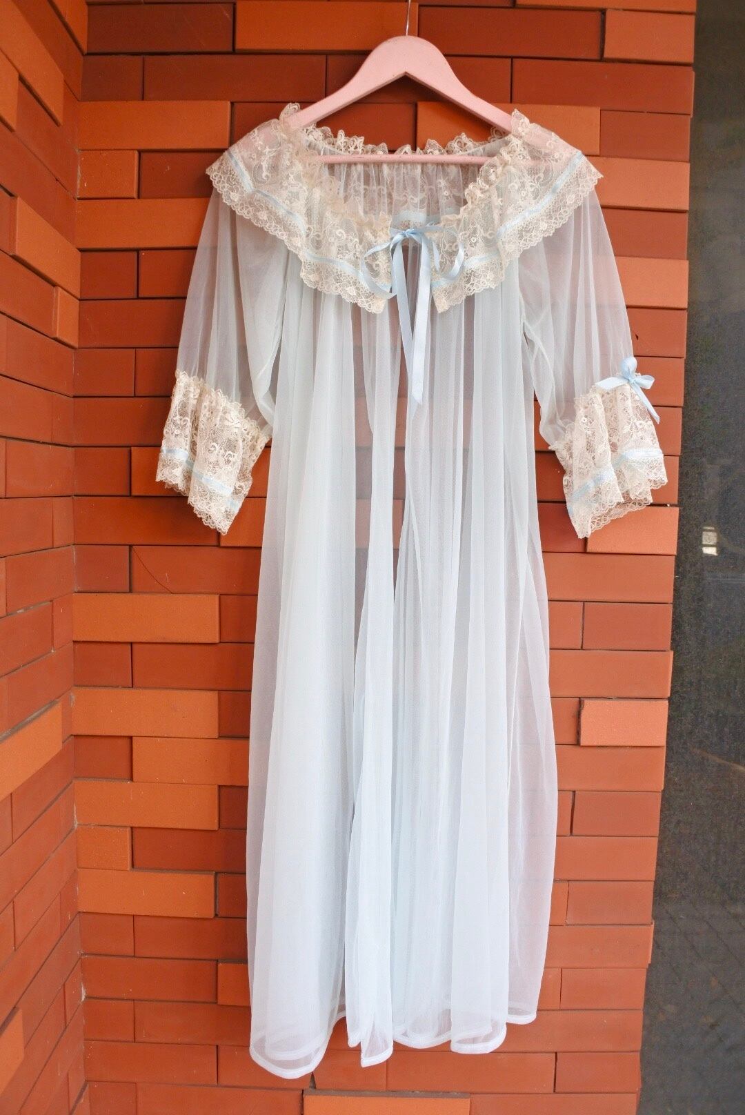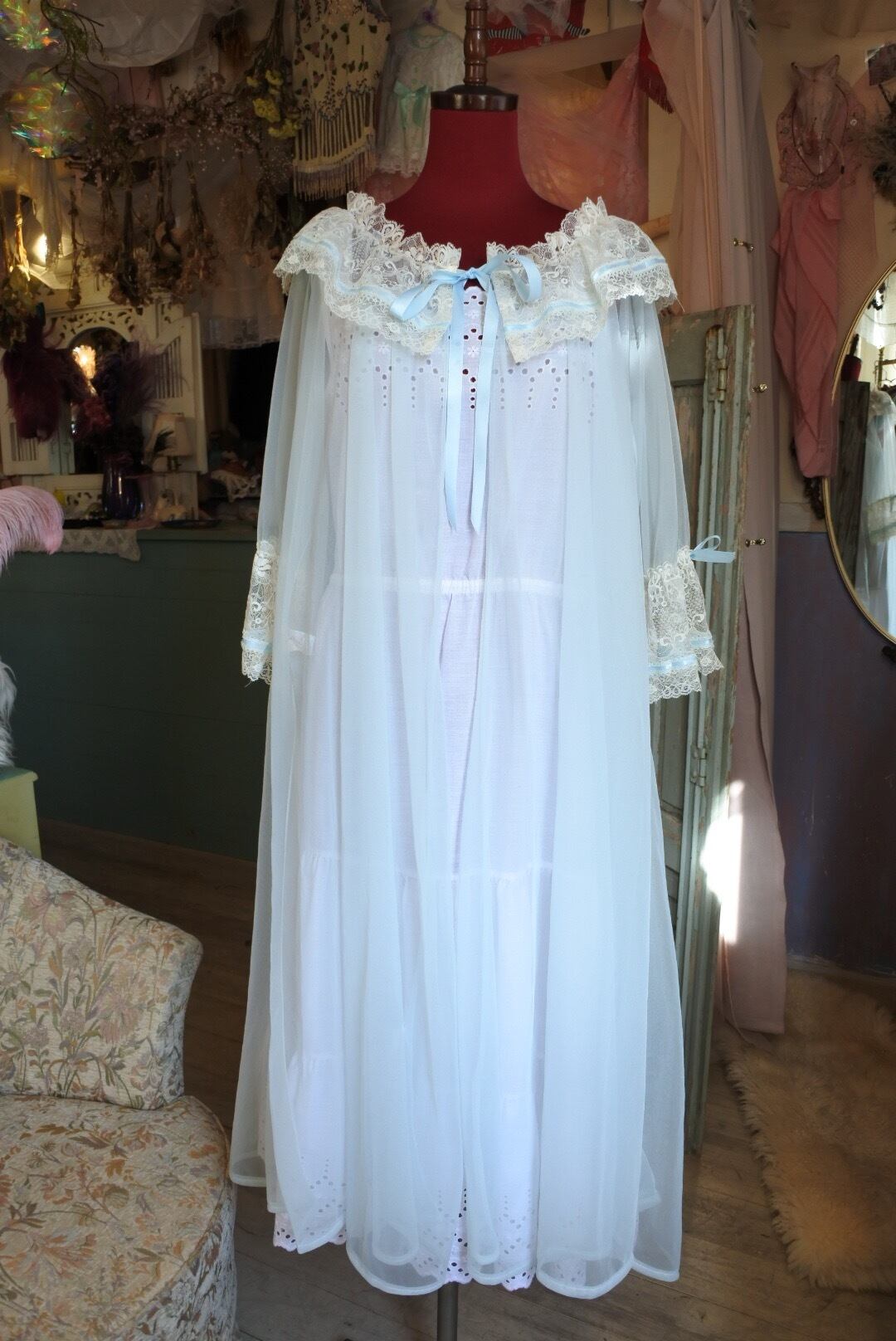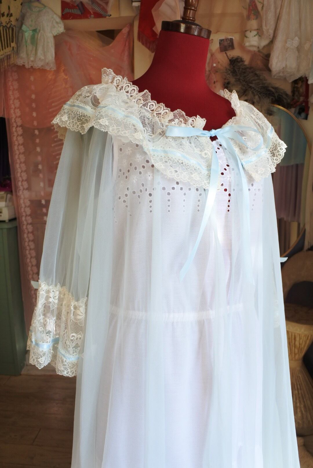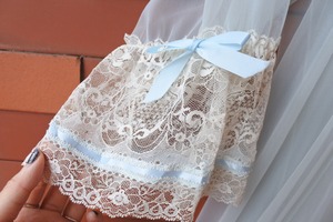 可憐なレースと水色リボンがポイントのガウンです。