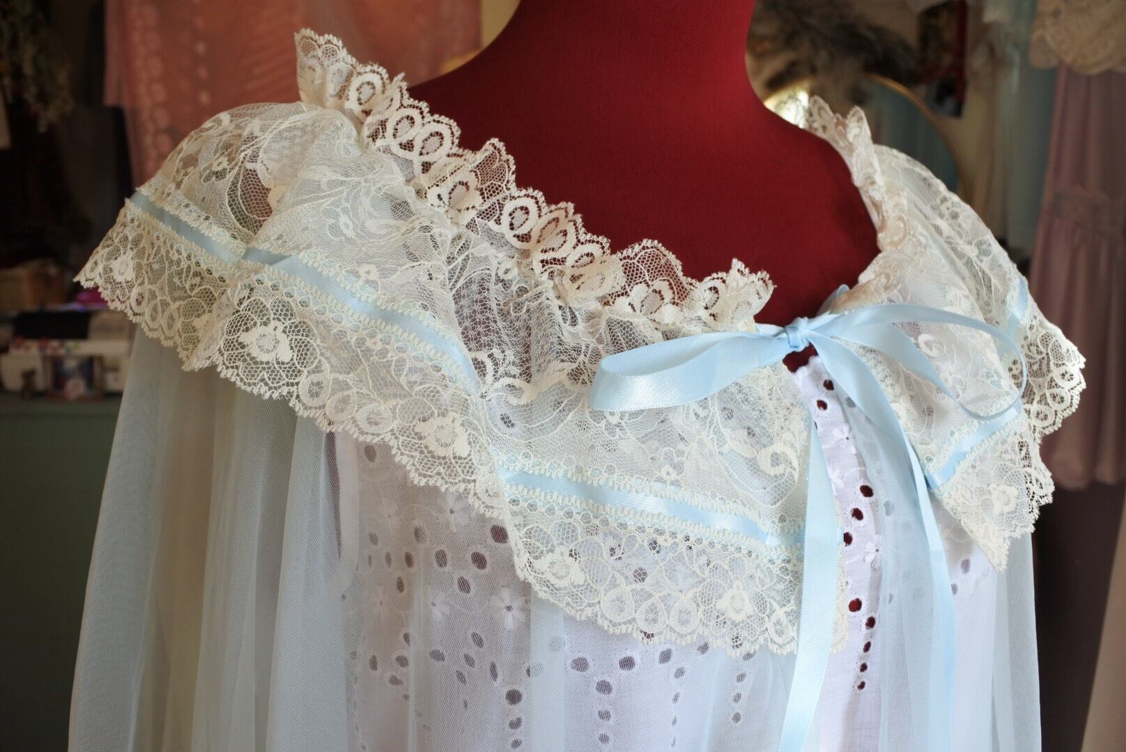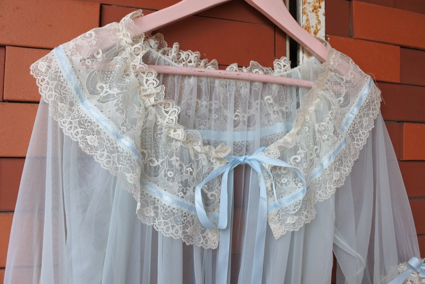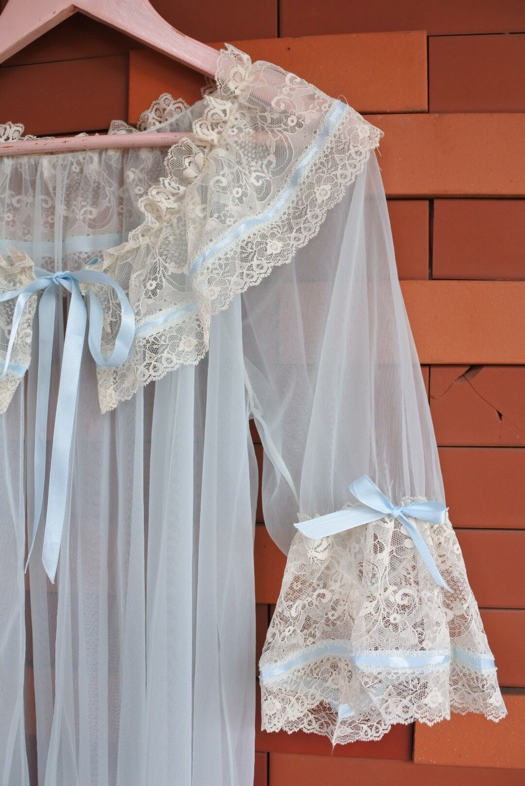 可憐なレースと水色リボンがポイントのガウンです。