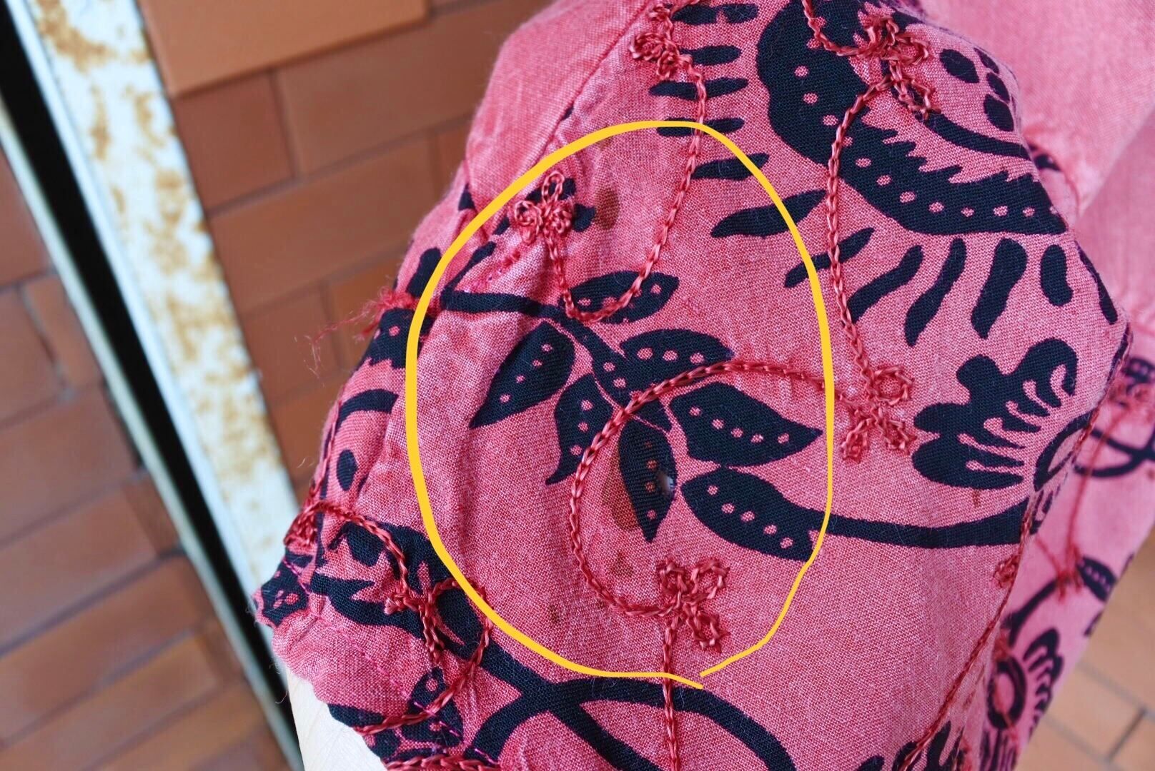 裾部分に小さな穴、シミがあります。画像以外にも目立ちませんがほんのりシミがある部分があります。