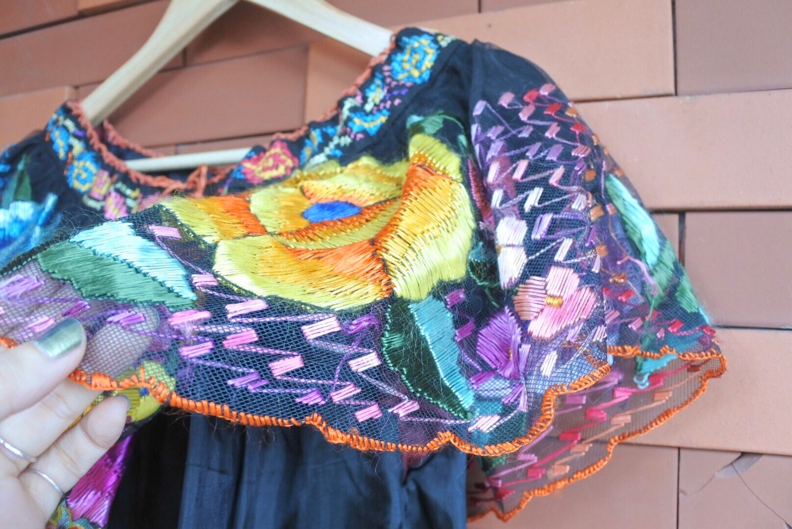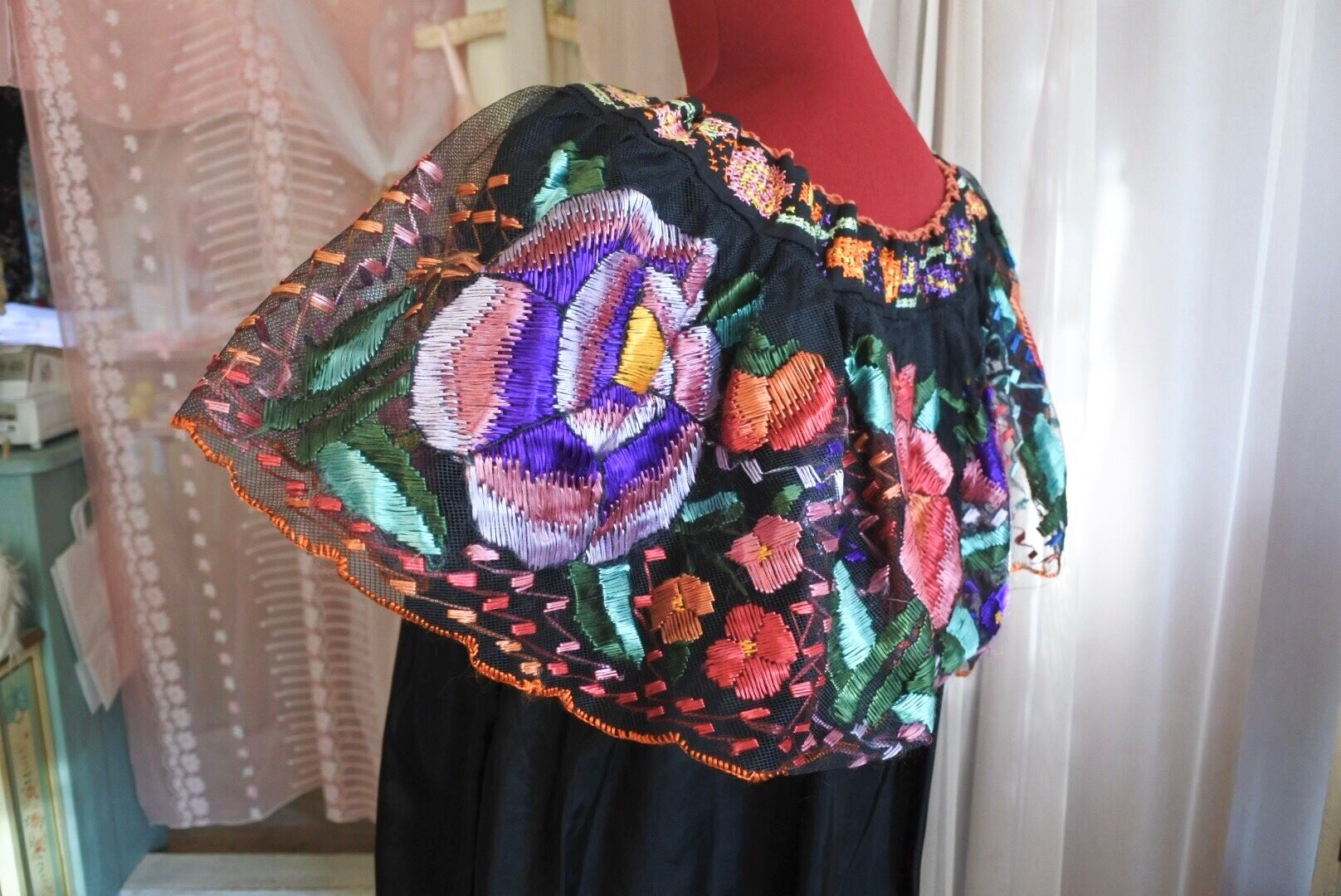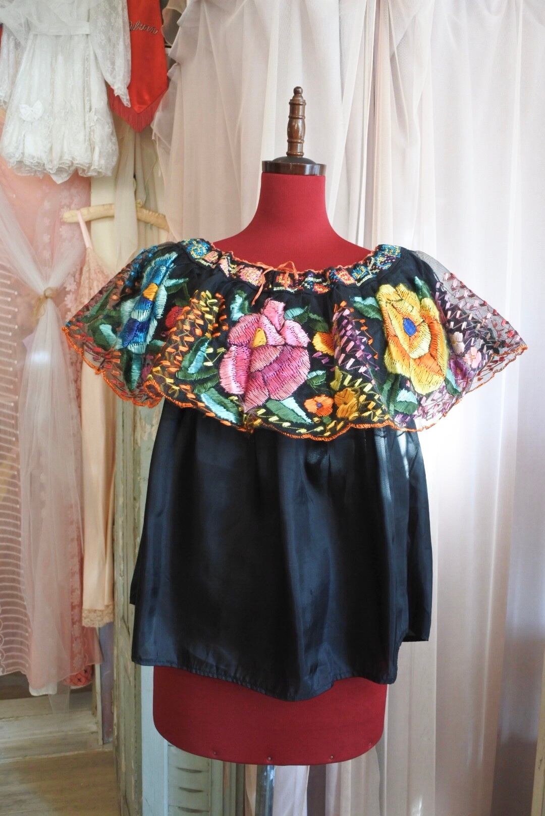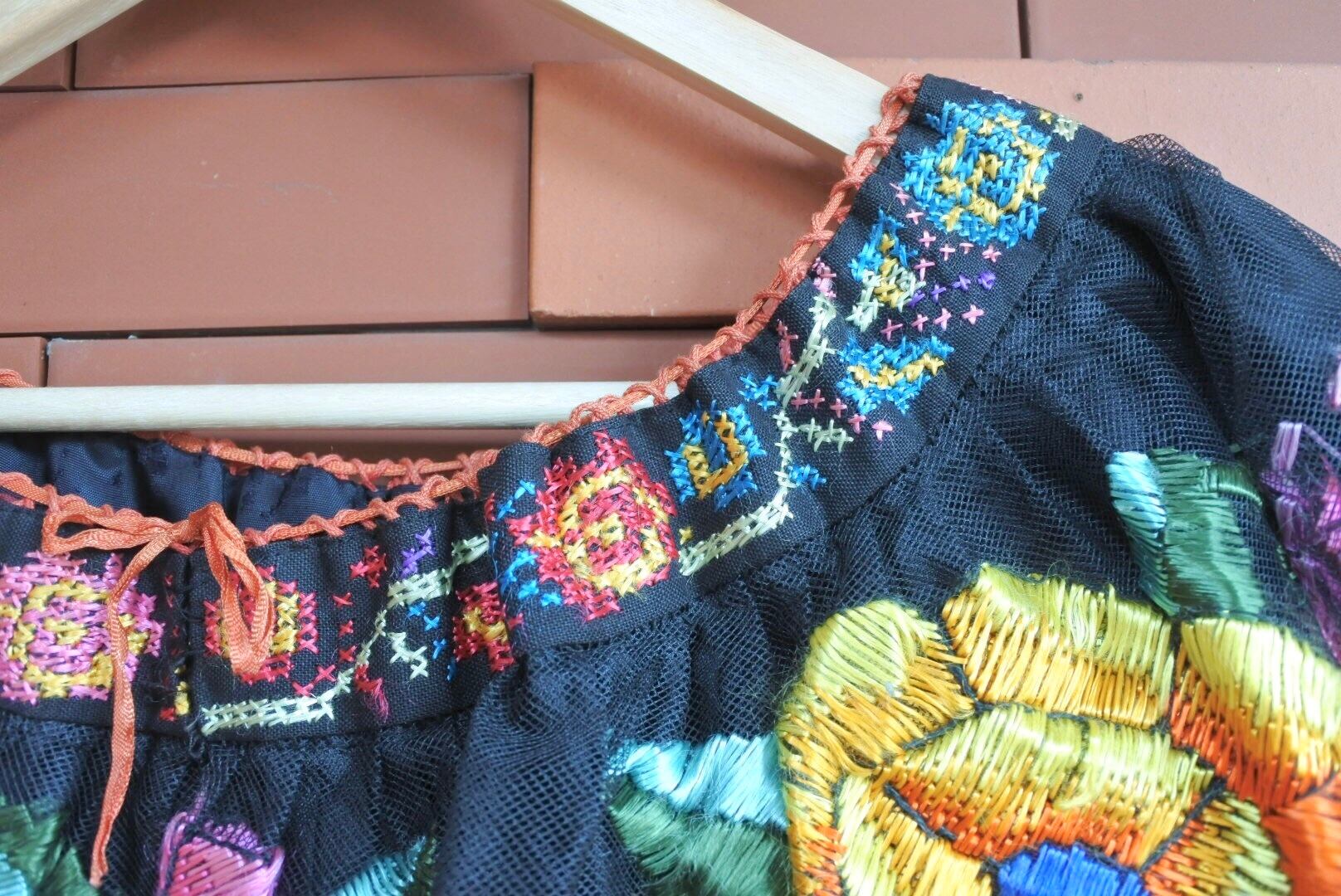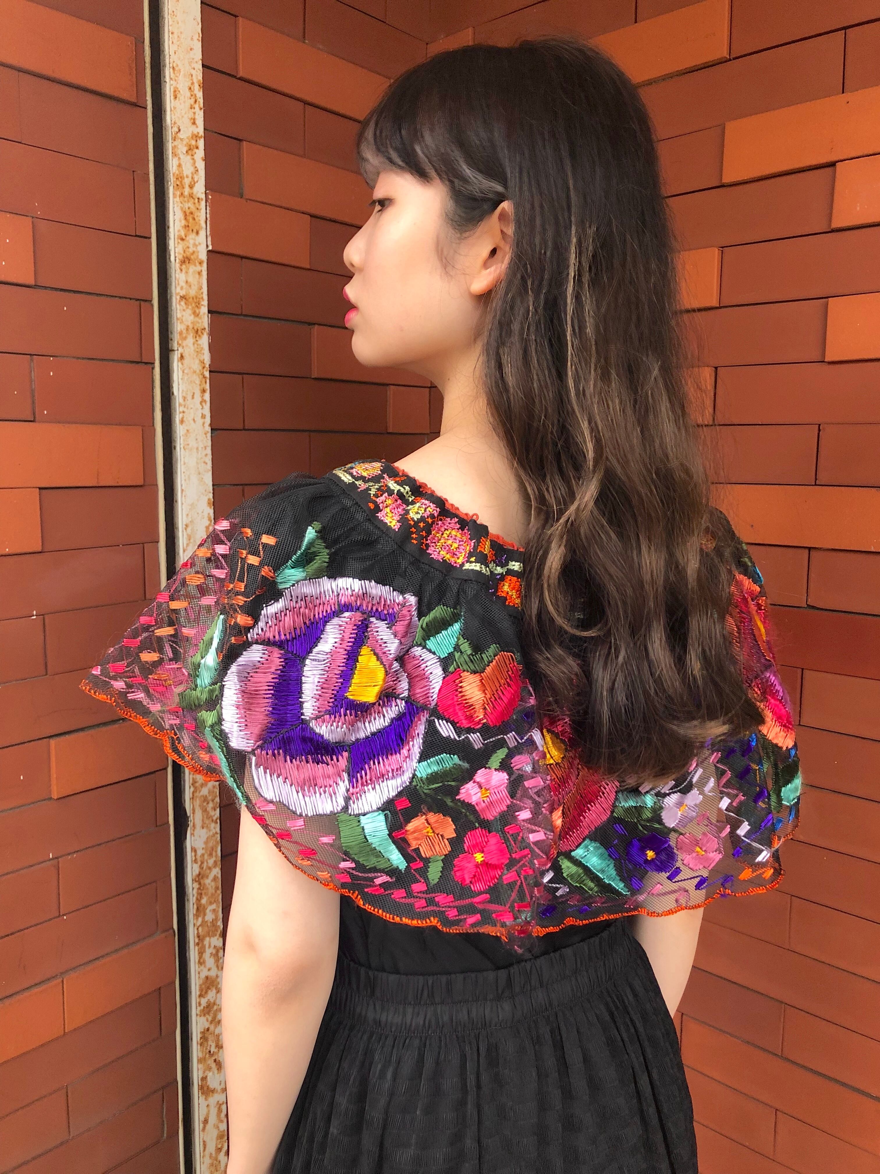 ソフトチュールの襟に大胆に刺繍されたお花が目を惹くvintageのチュニックです。