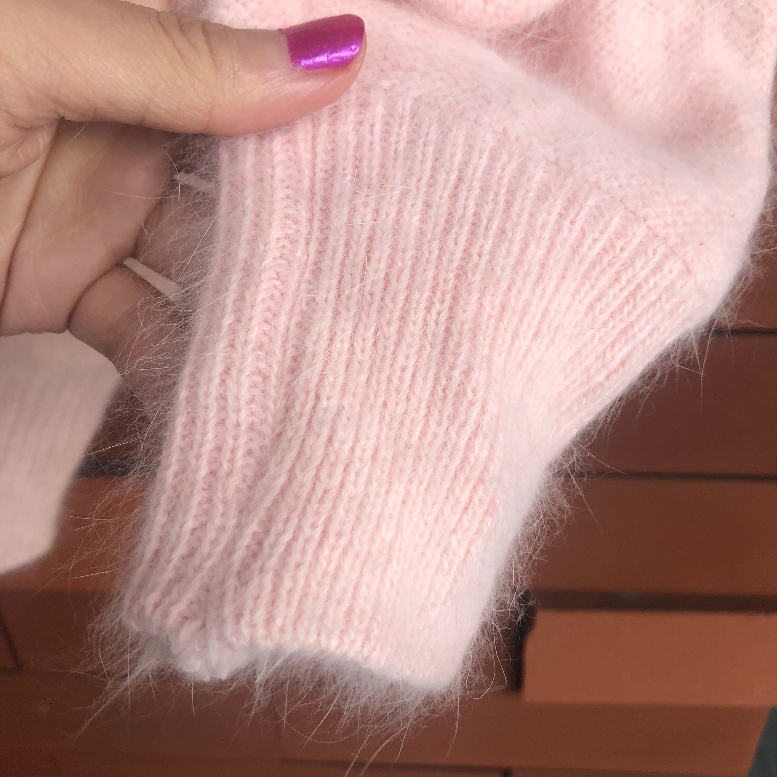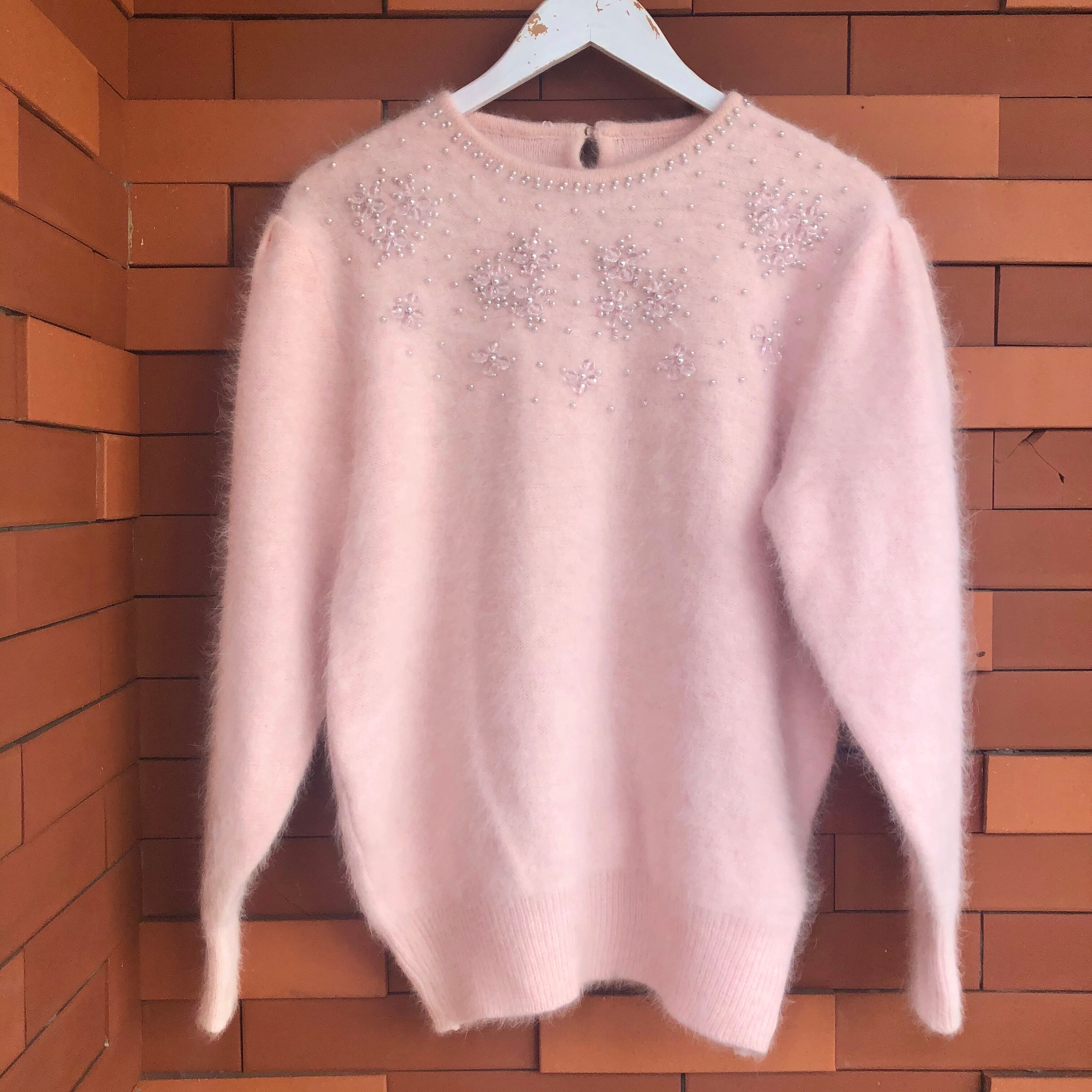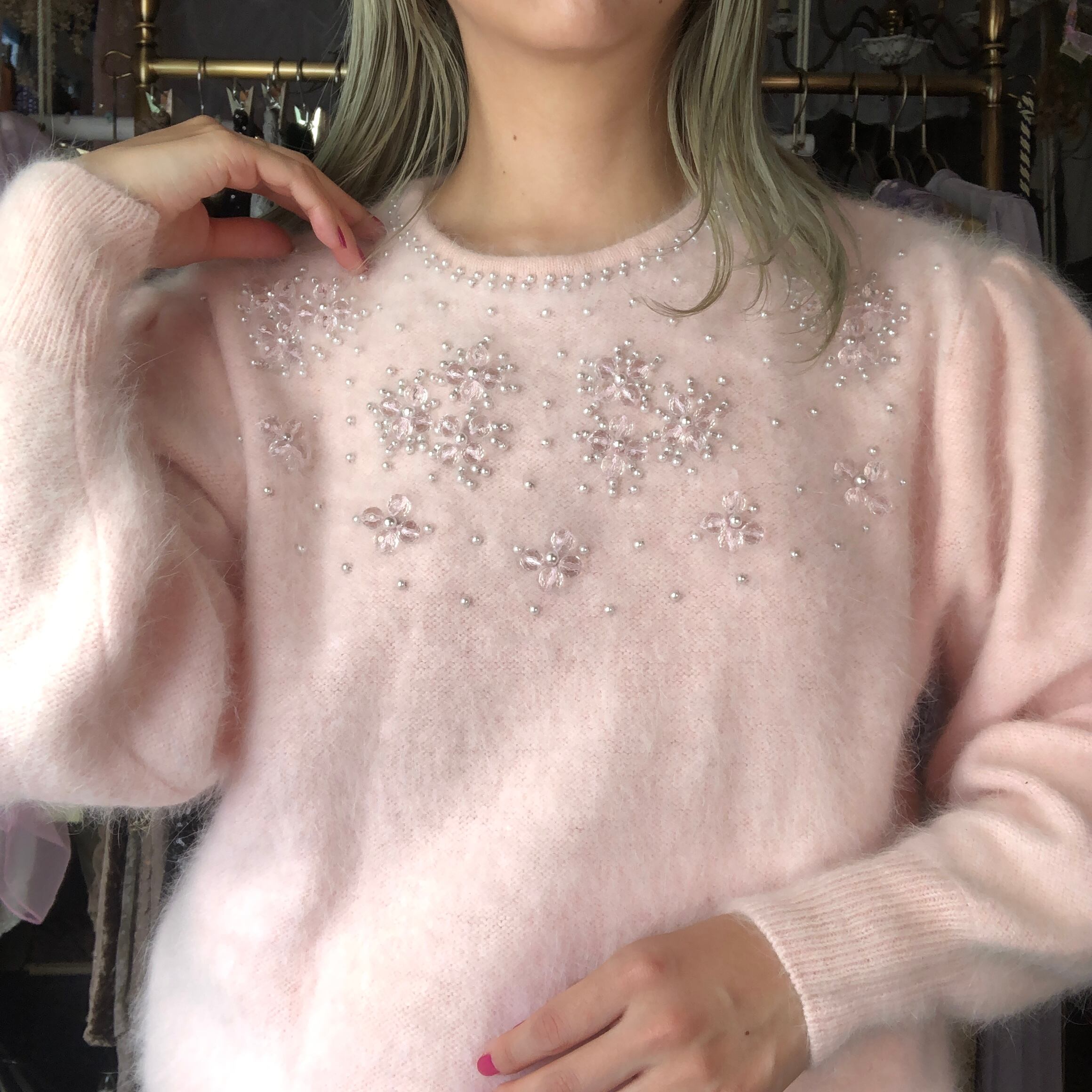 フワフワな肌触りの甘いピンクのアンゴラセーター。