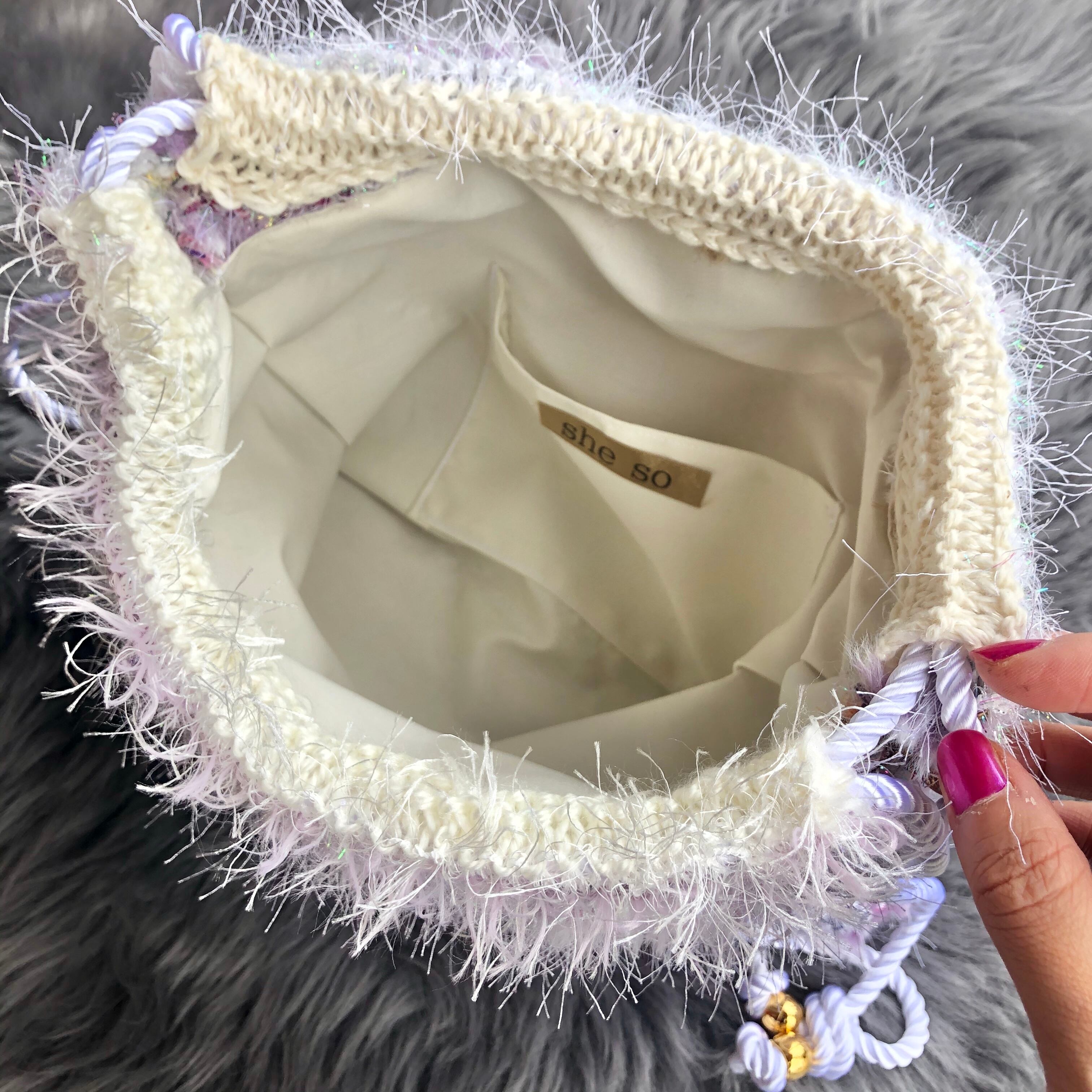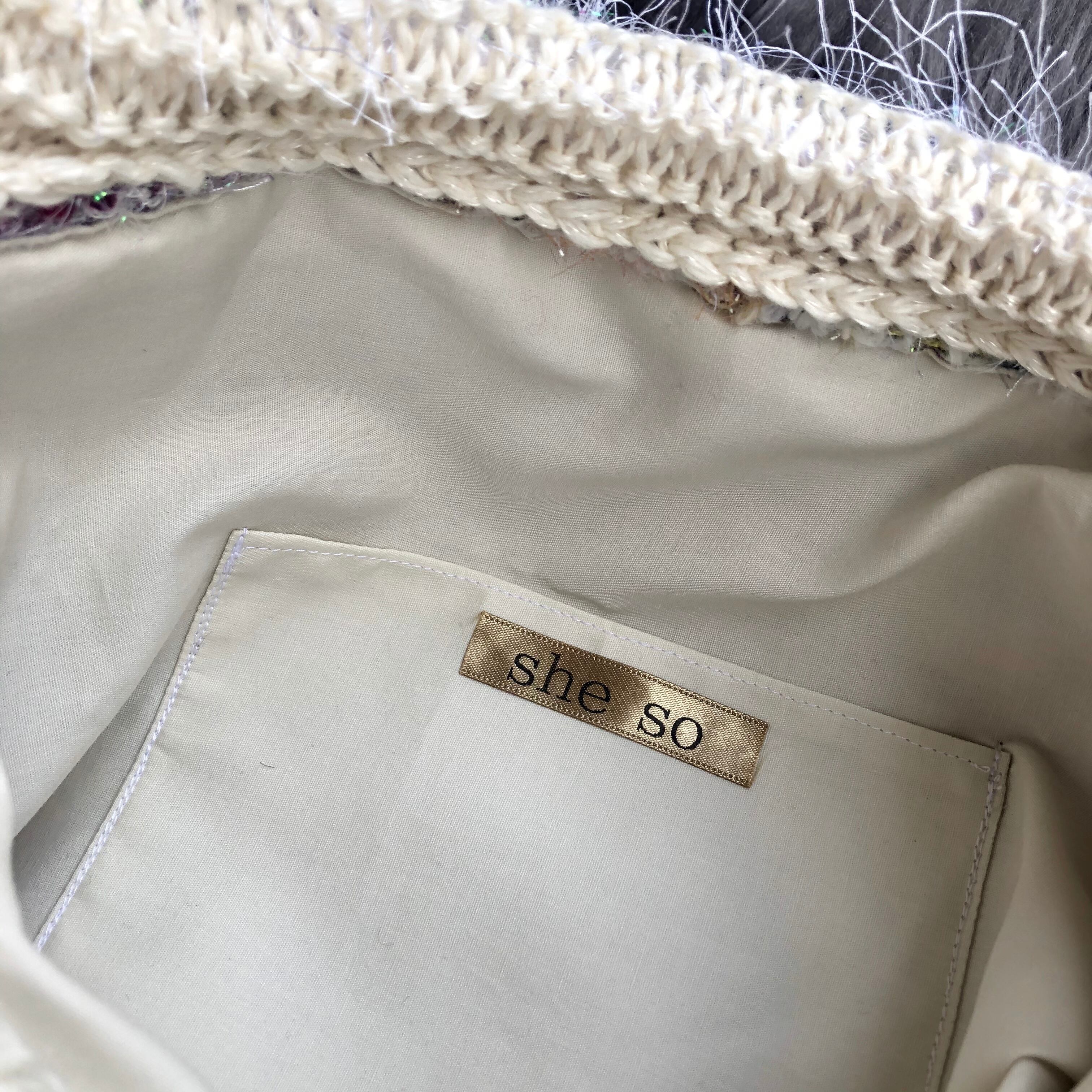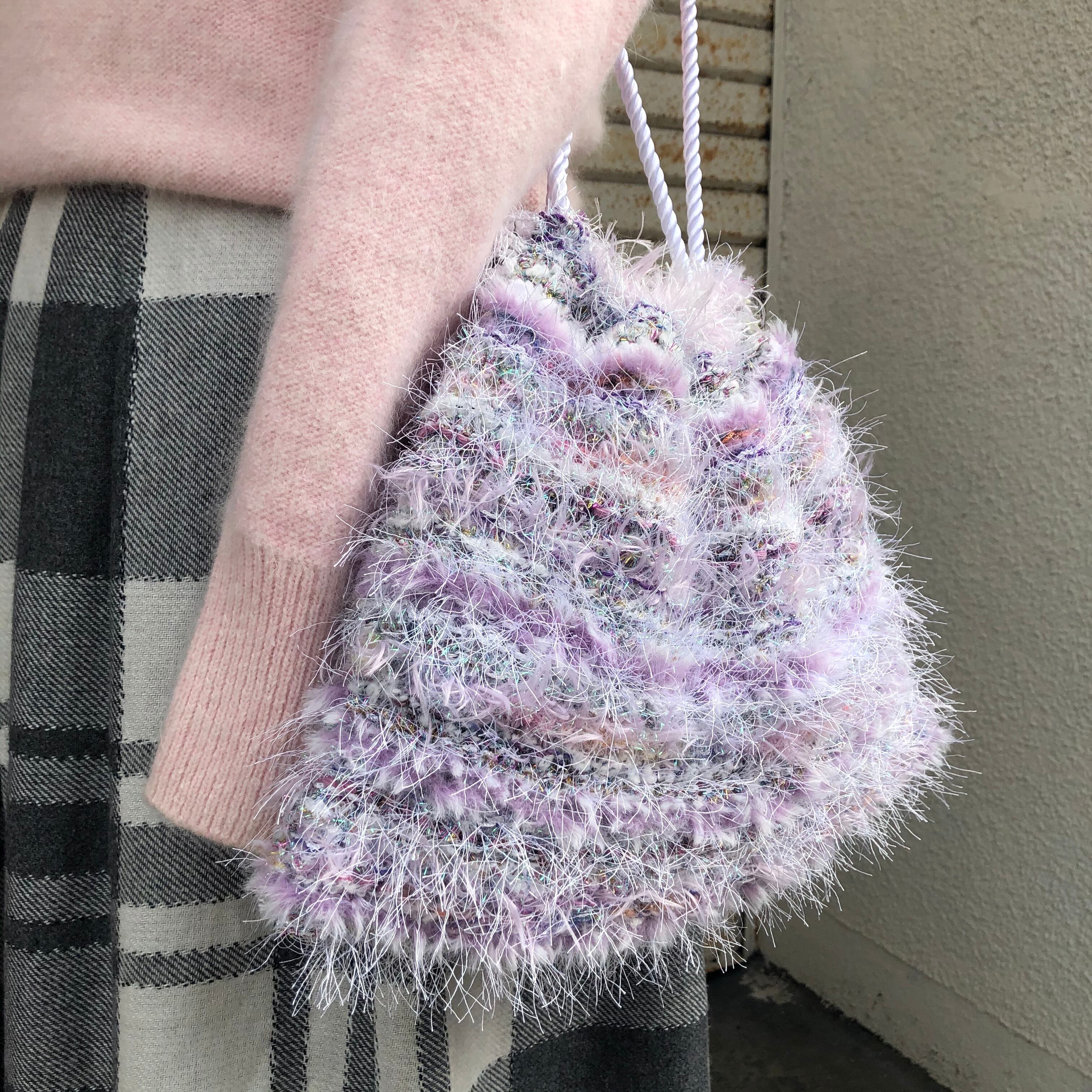 she soの秋冬定番商品の手編みの巾着バッグです。