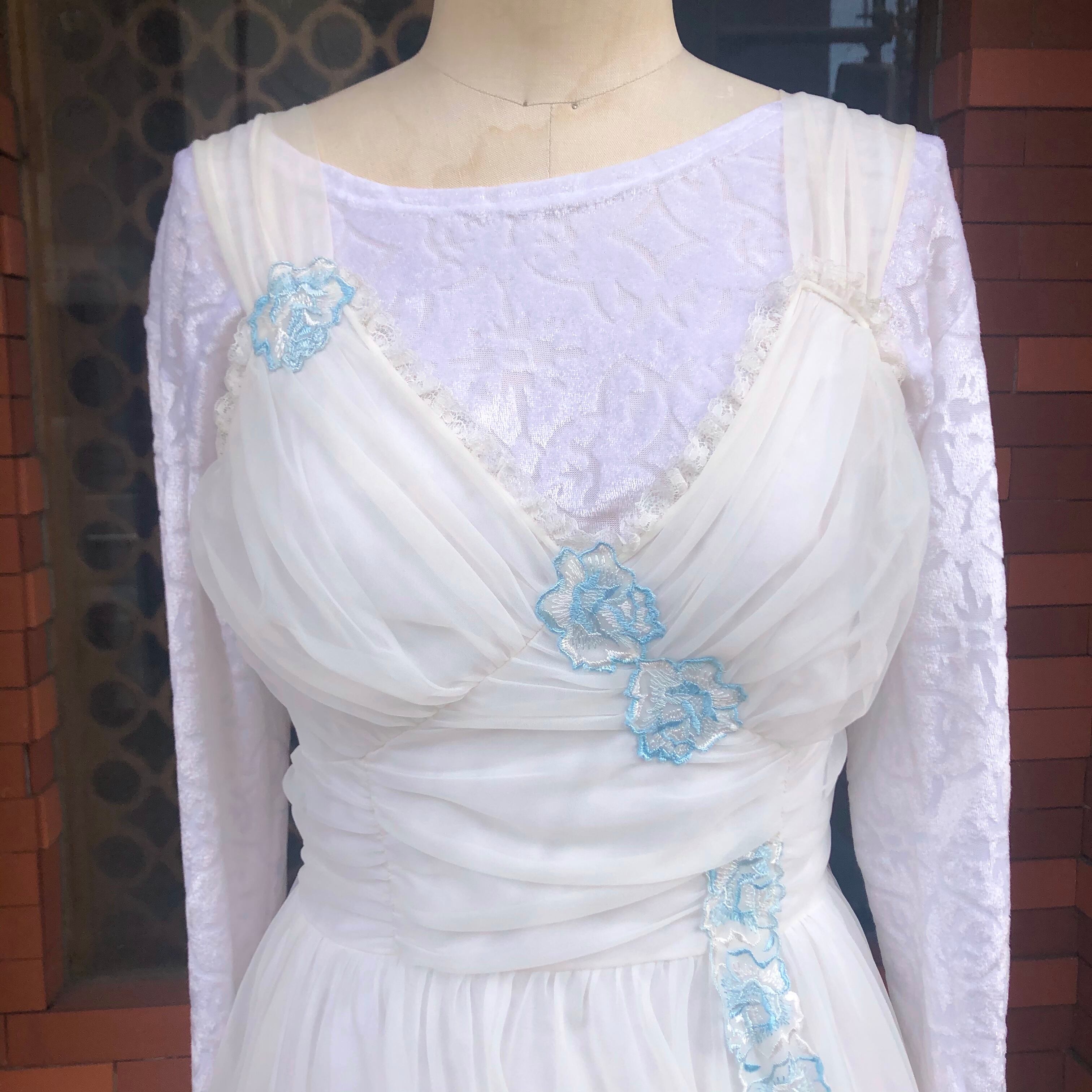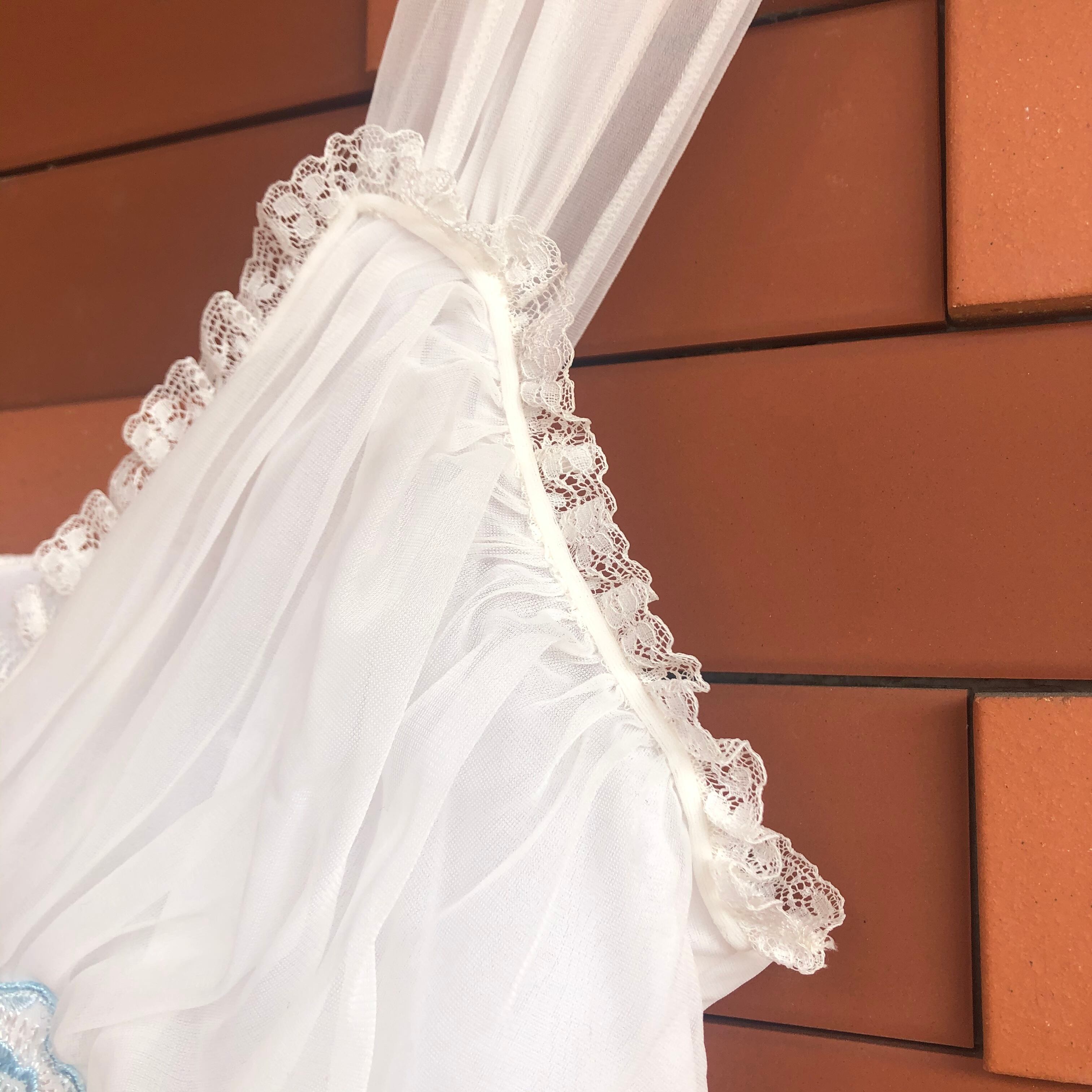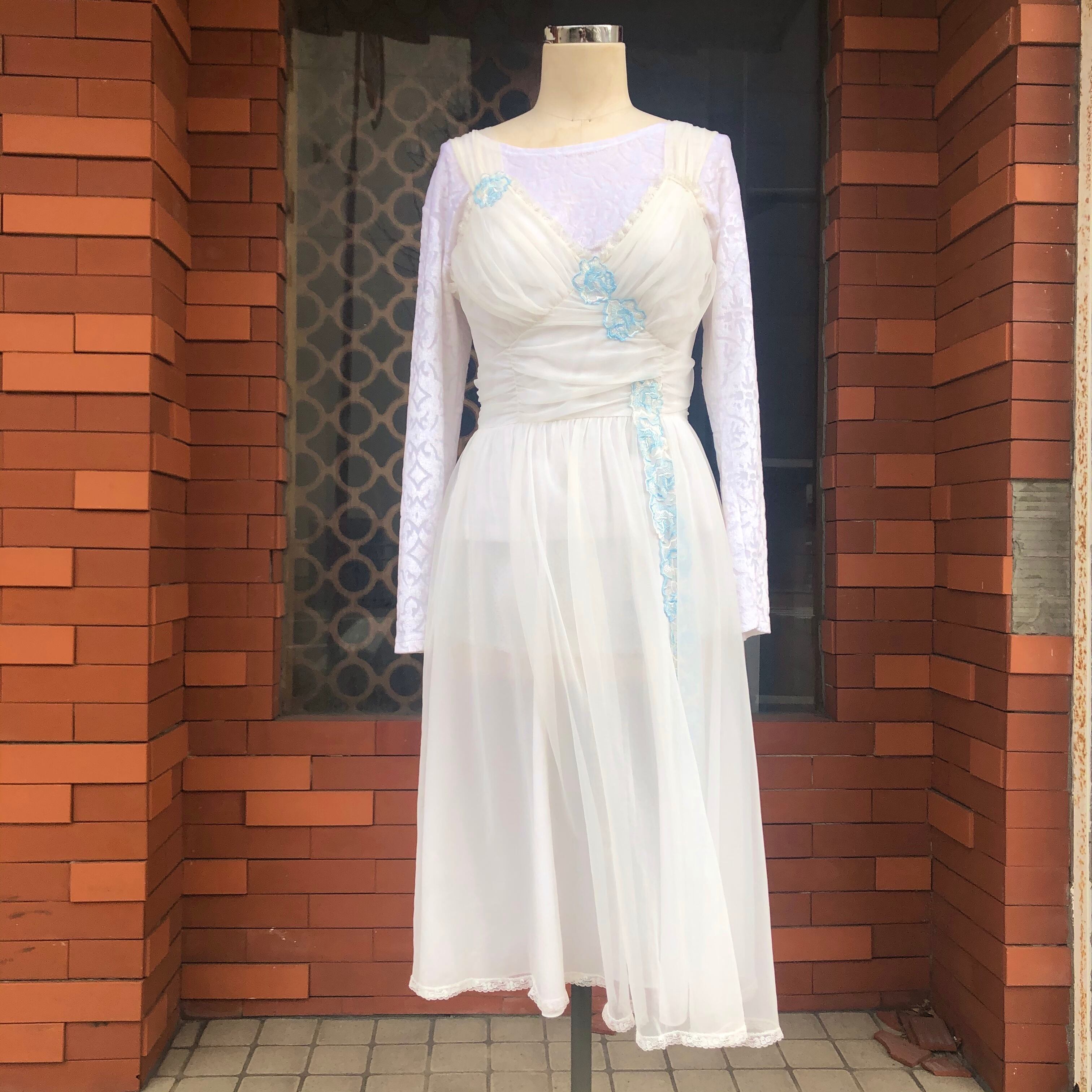白地に水色のお花モチーフが爽やかなランジェリーワンピース。