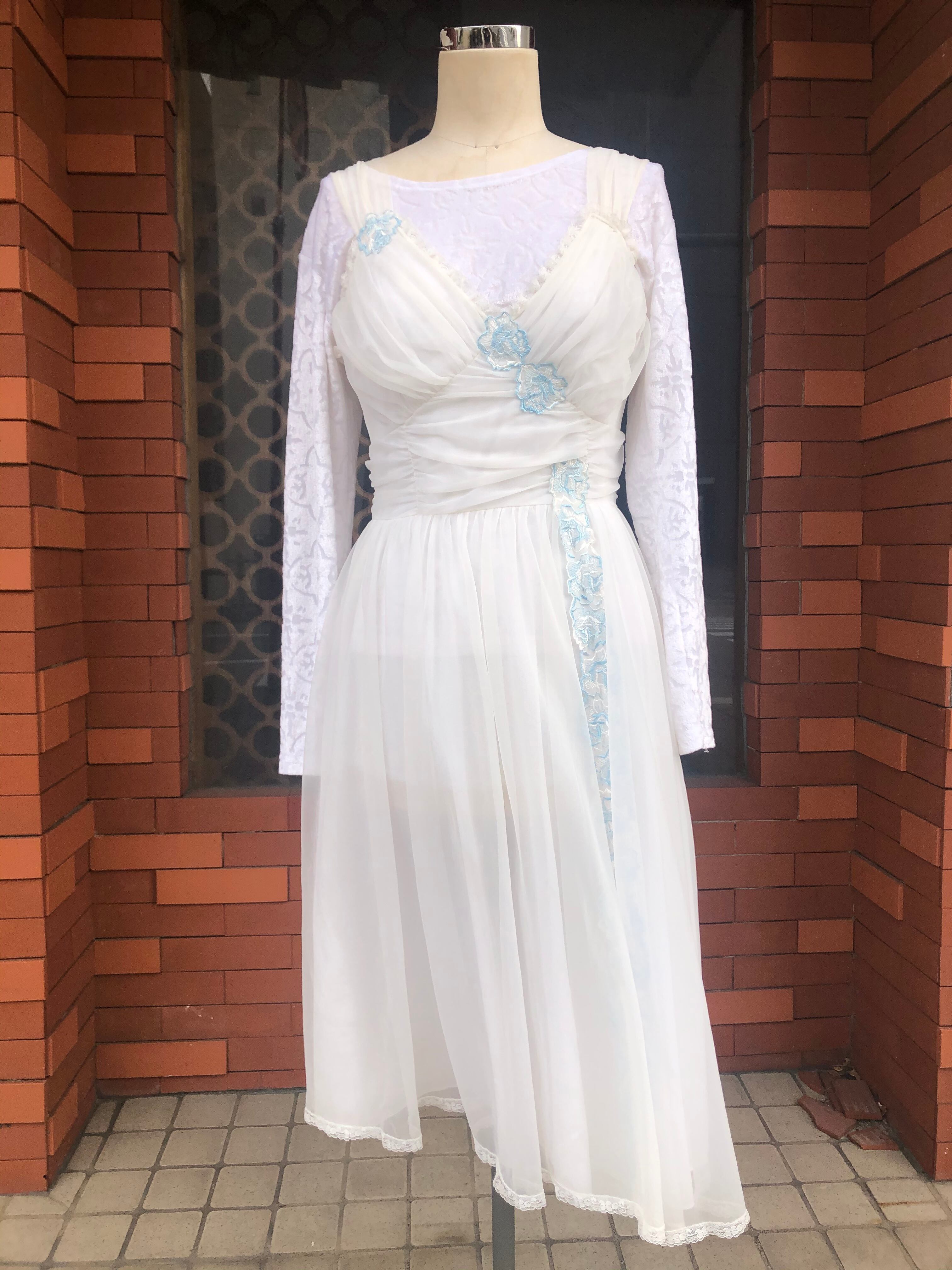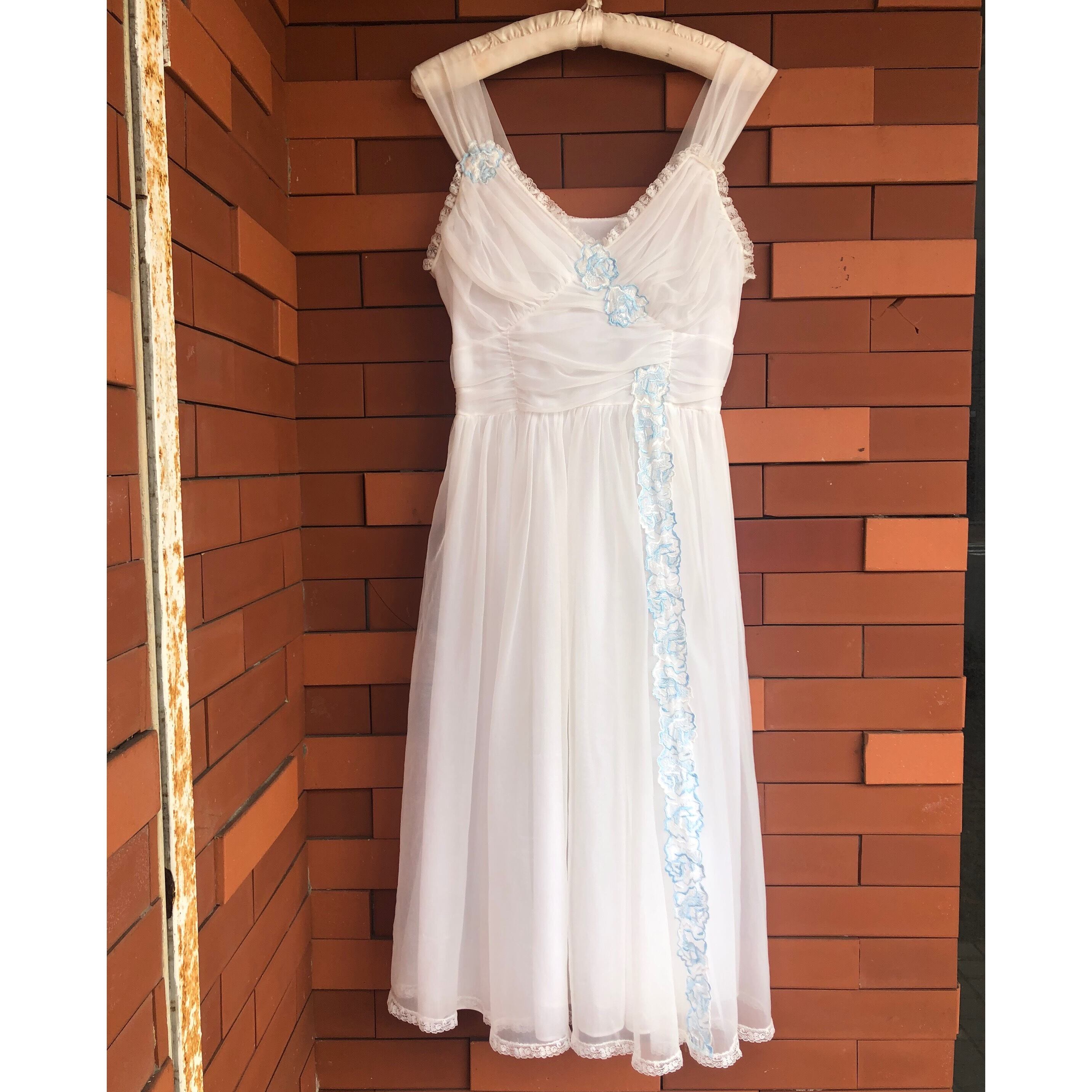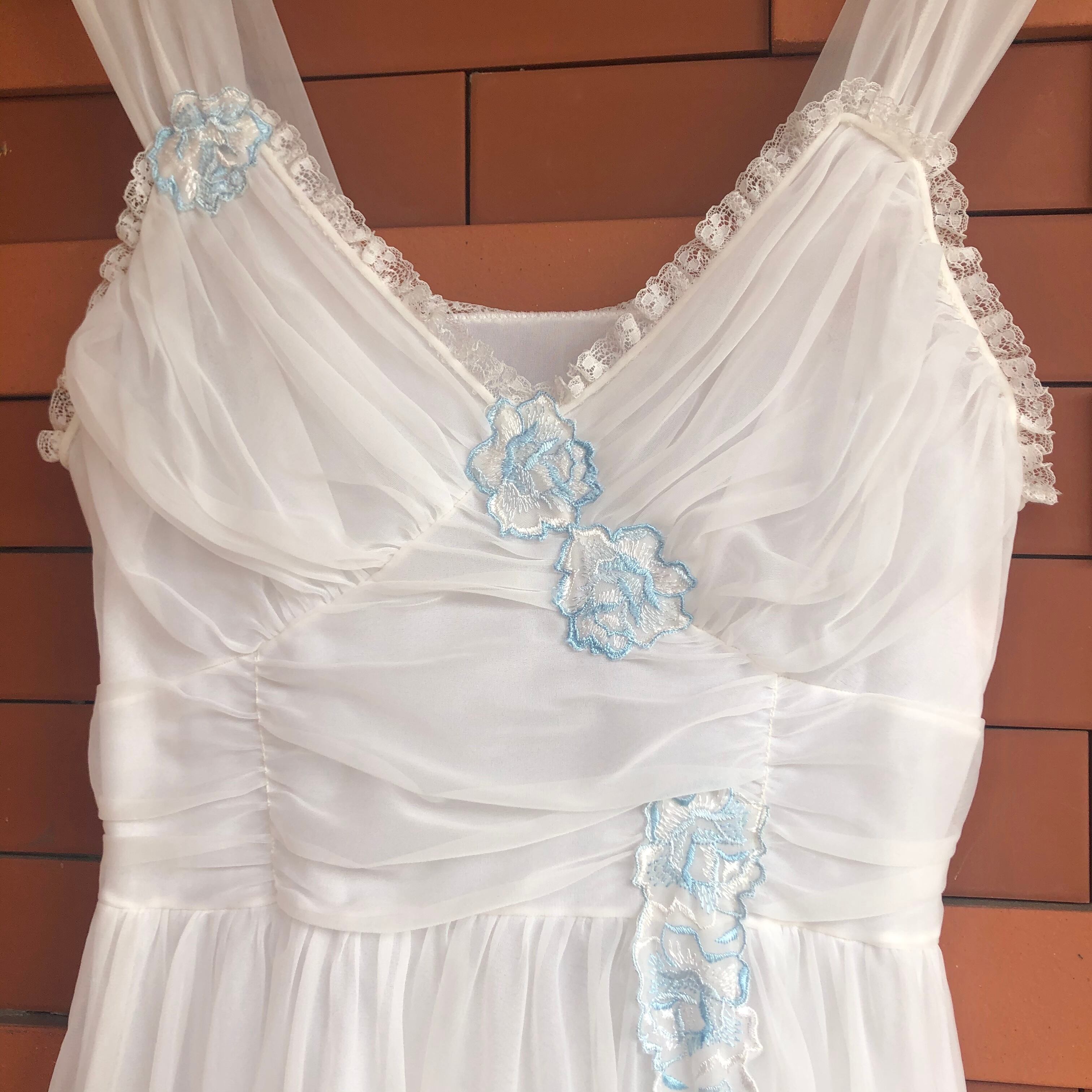 白地に水色のお花モチーフが爽やかなランジェリーワンピース。