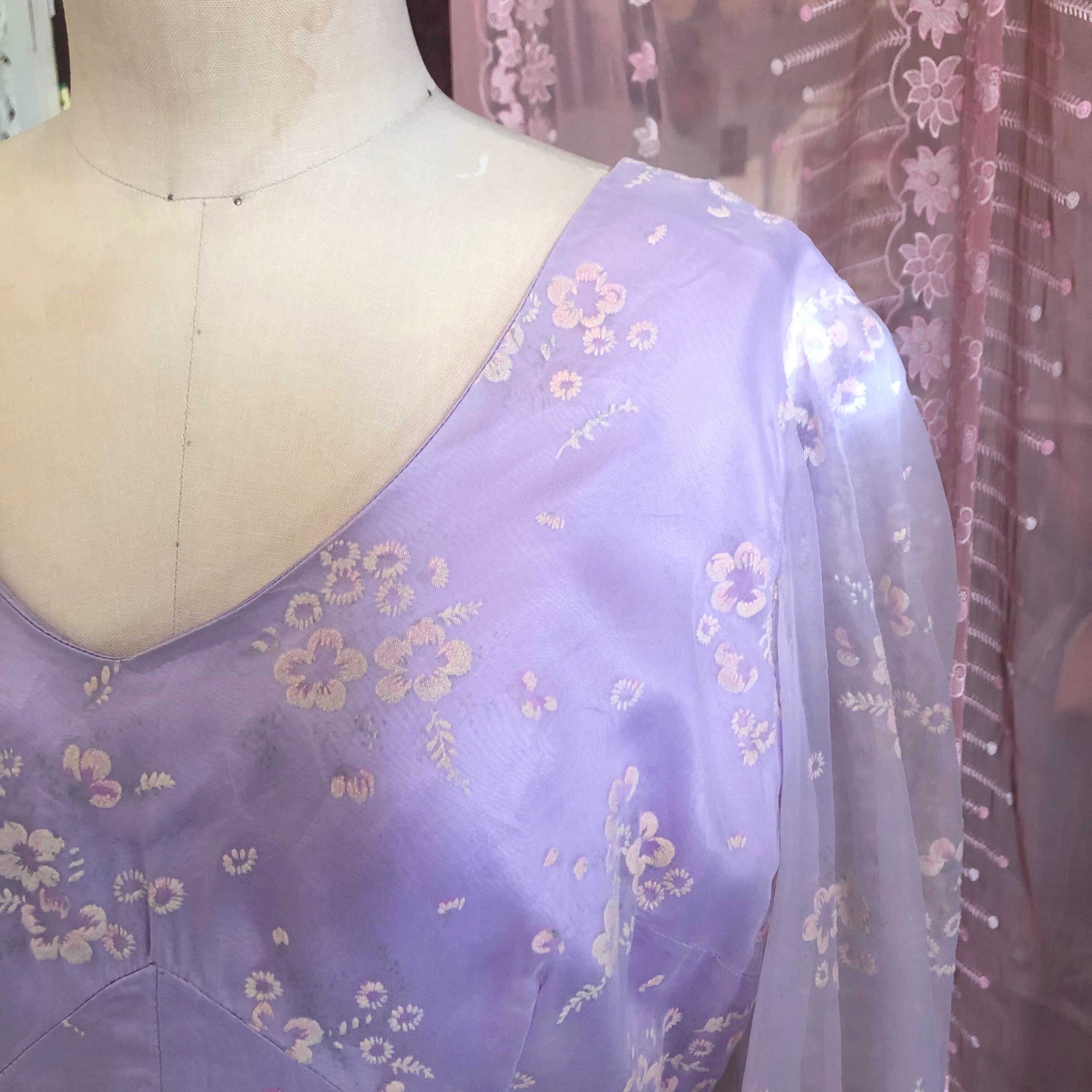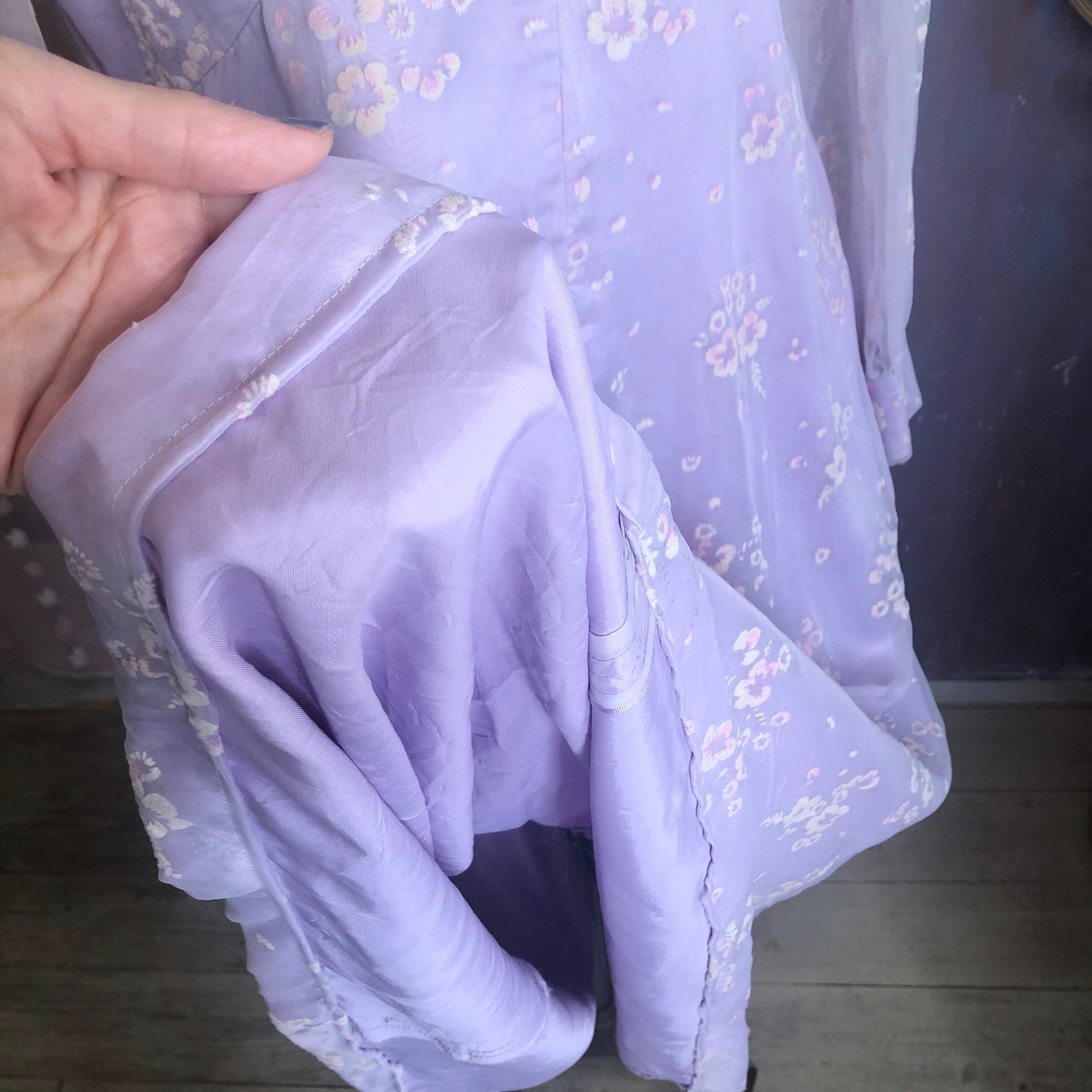 裏地全体がラベンダーで表地にお花のフロッキープリントが咲いています。