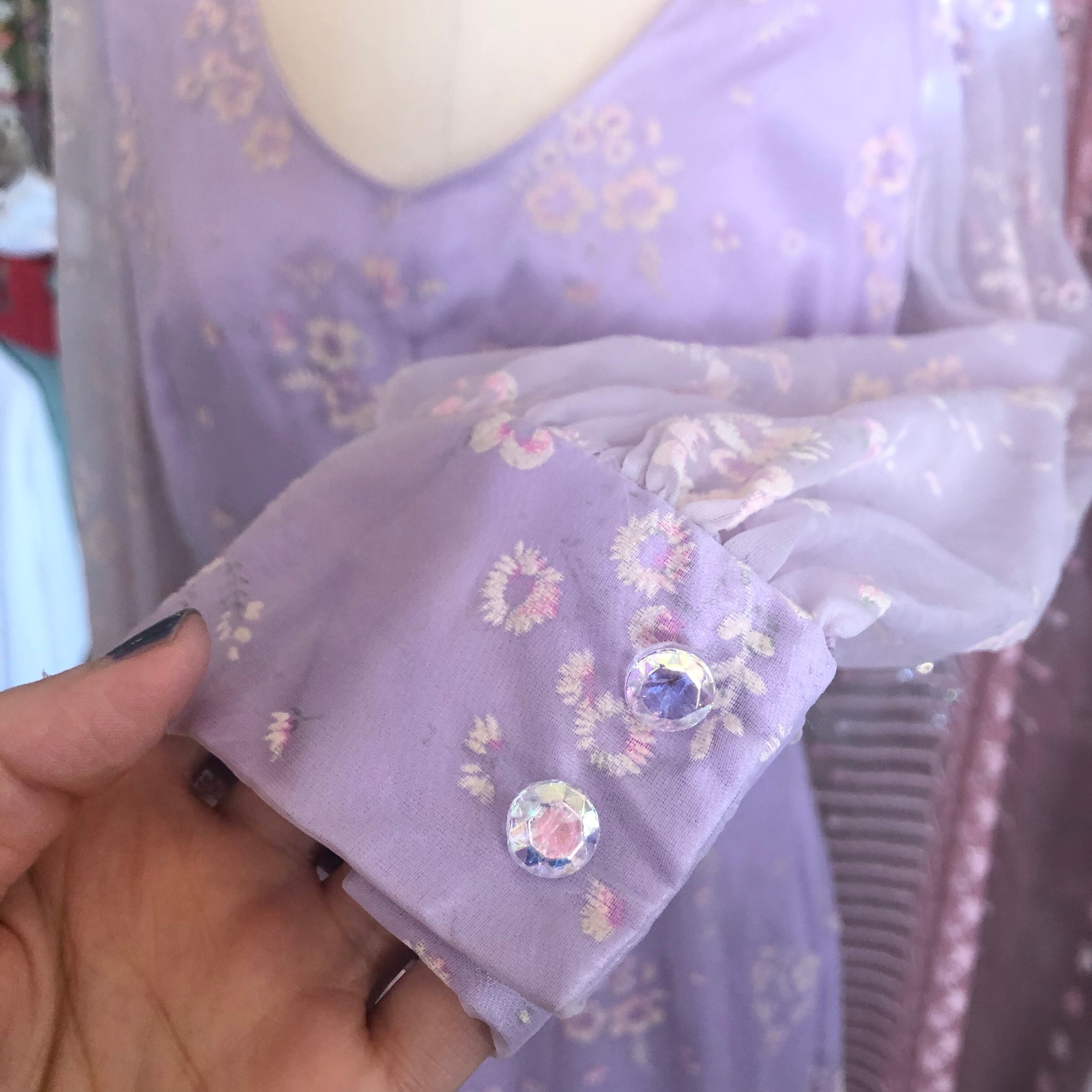 宝石のように角度によって色の見え方が変わるボタンも素敵です 。