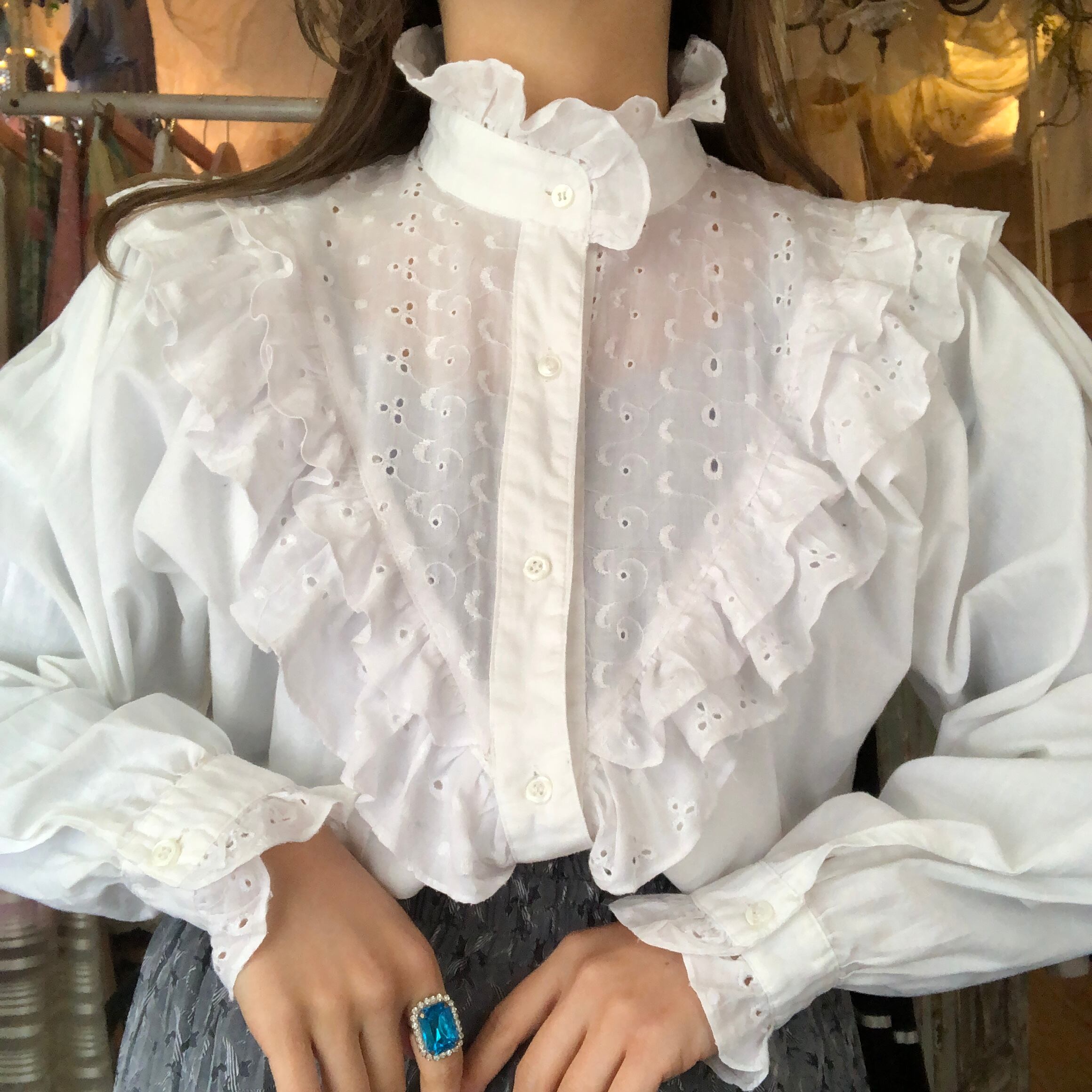 立ち襟や肩フリル、パンチングレースが春への気分を加速させてくれます。