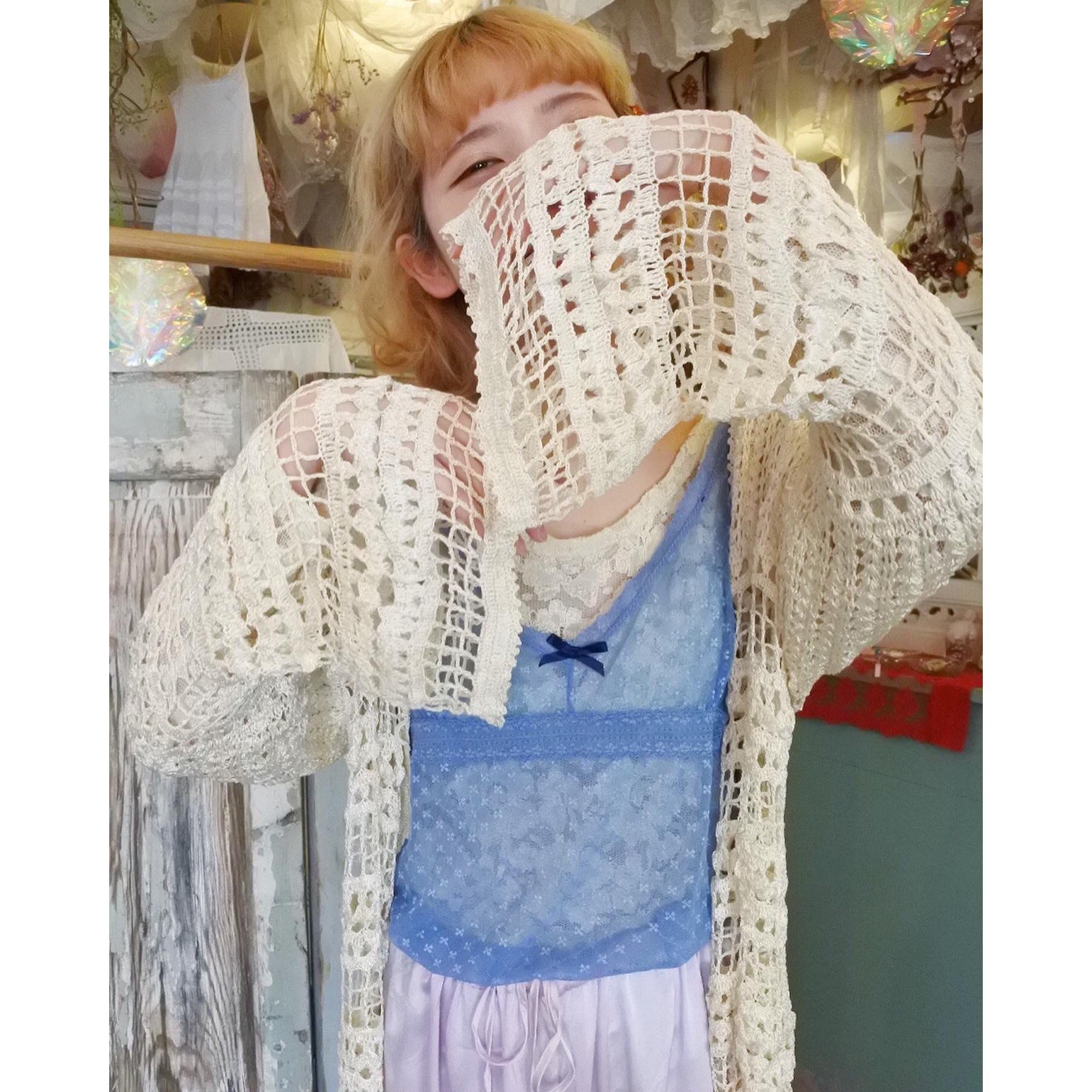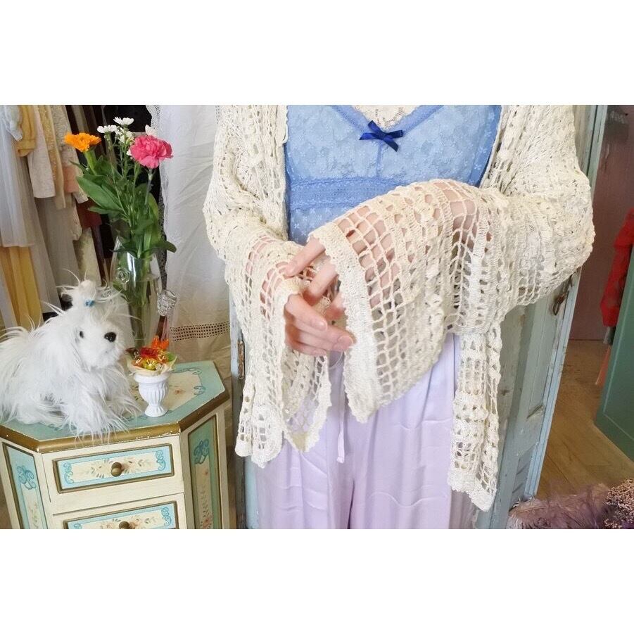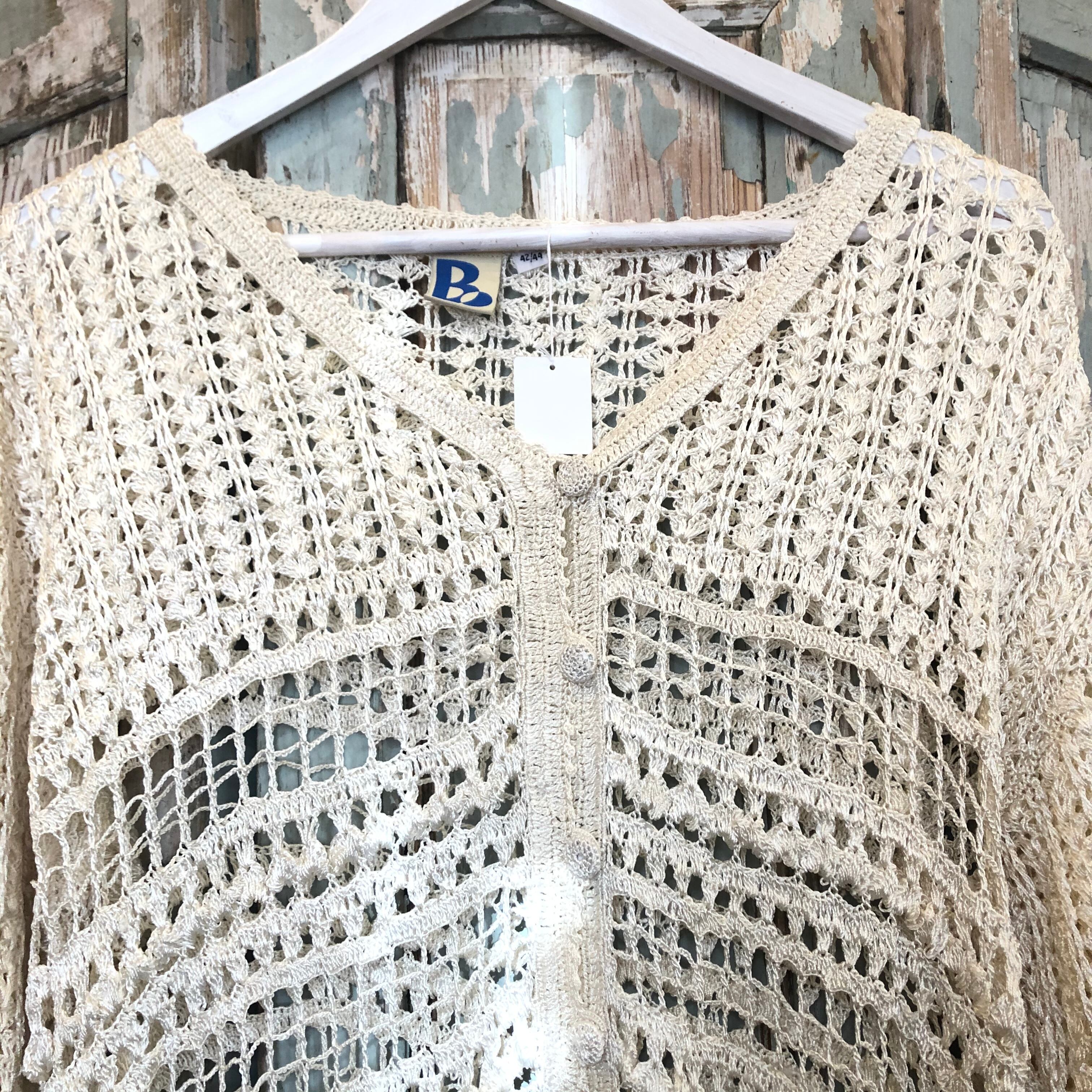 編みデザインが箇所によって異なり、ボタンもニットで覆われていたりとシンプルながら細部まで魅力が詰まったお品。