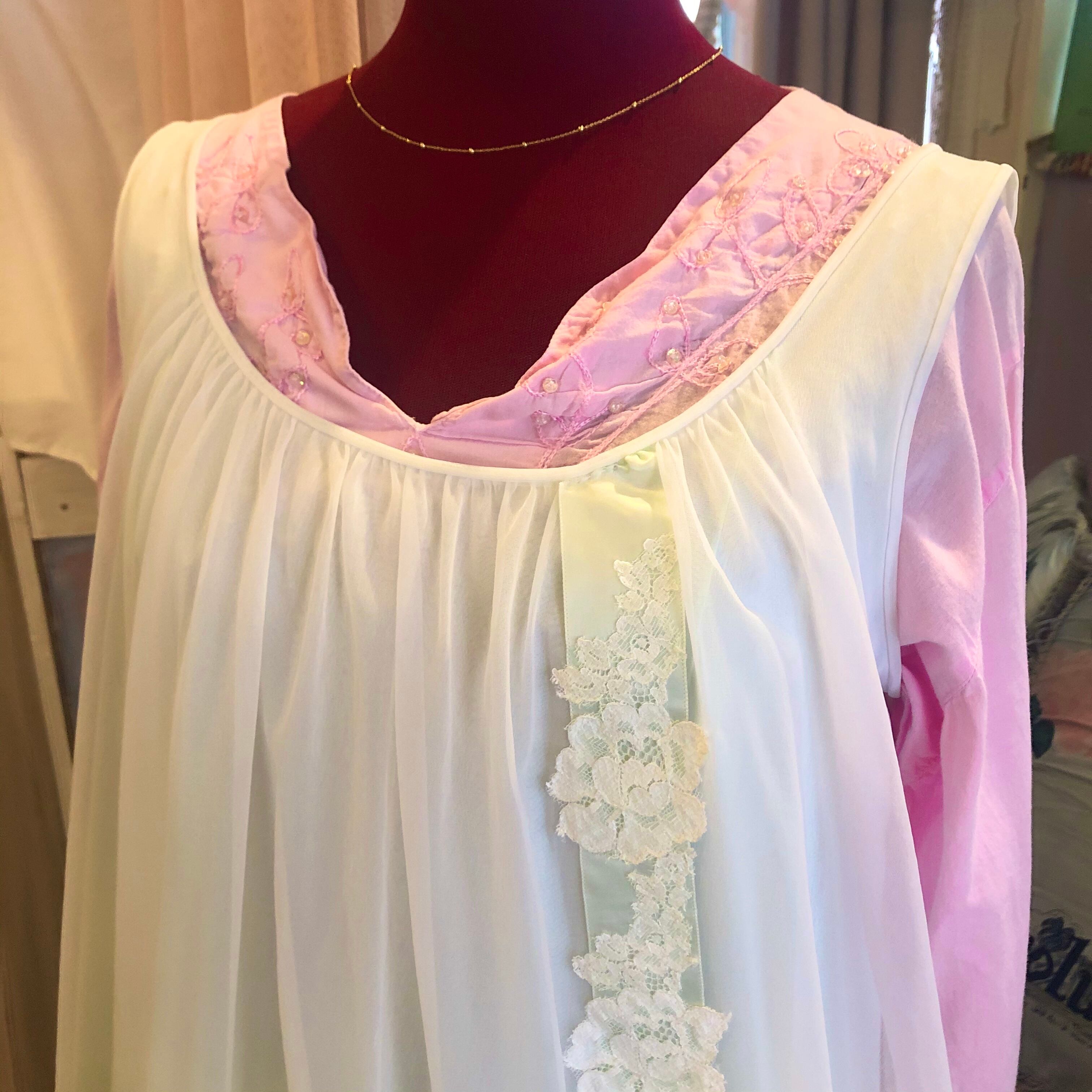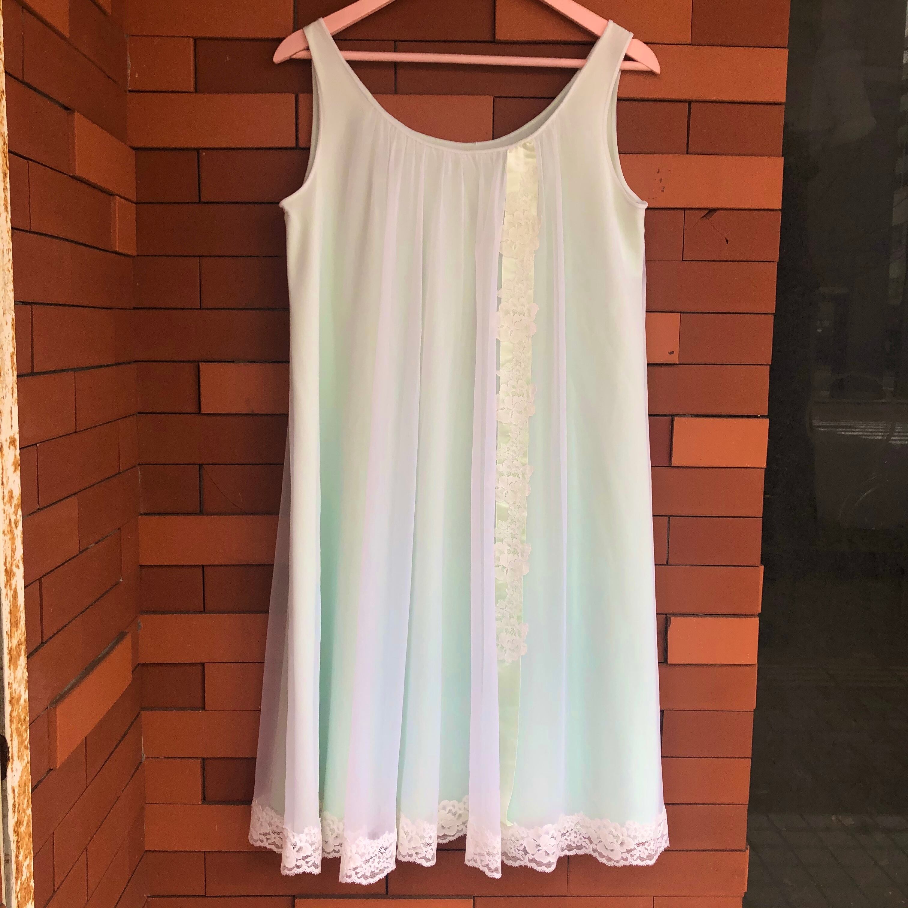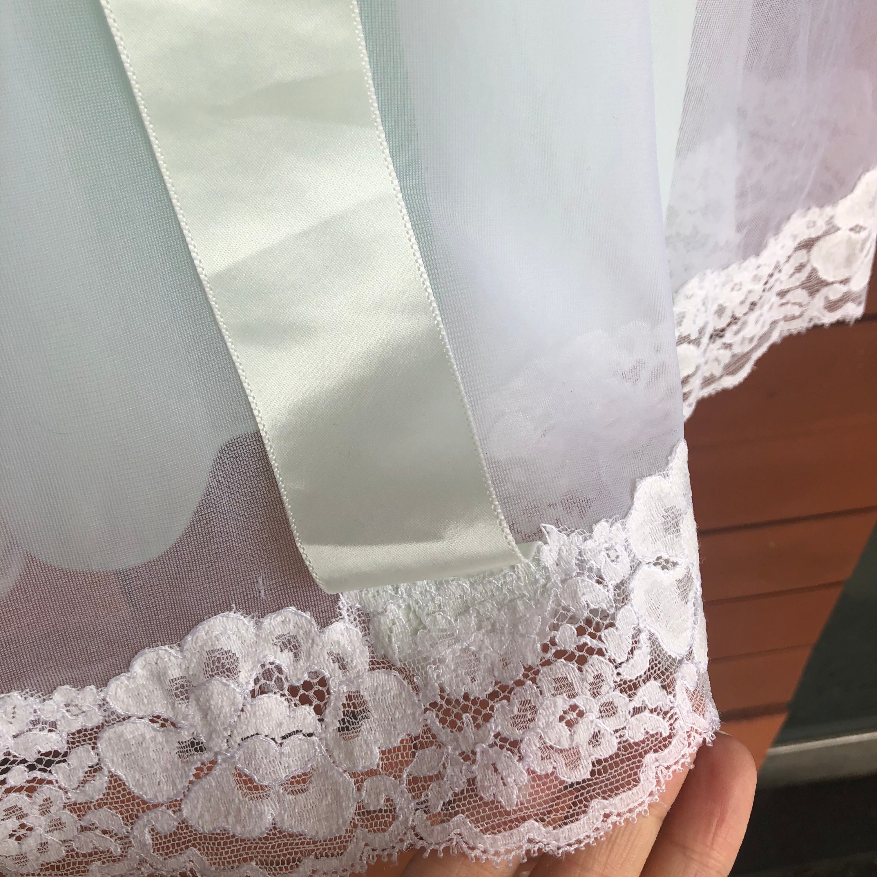 左胸元から縦にお花レースが入っていて、裾のレースと垂直に交わる素敵なデザインです。