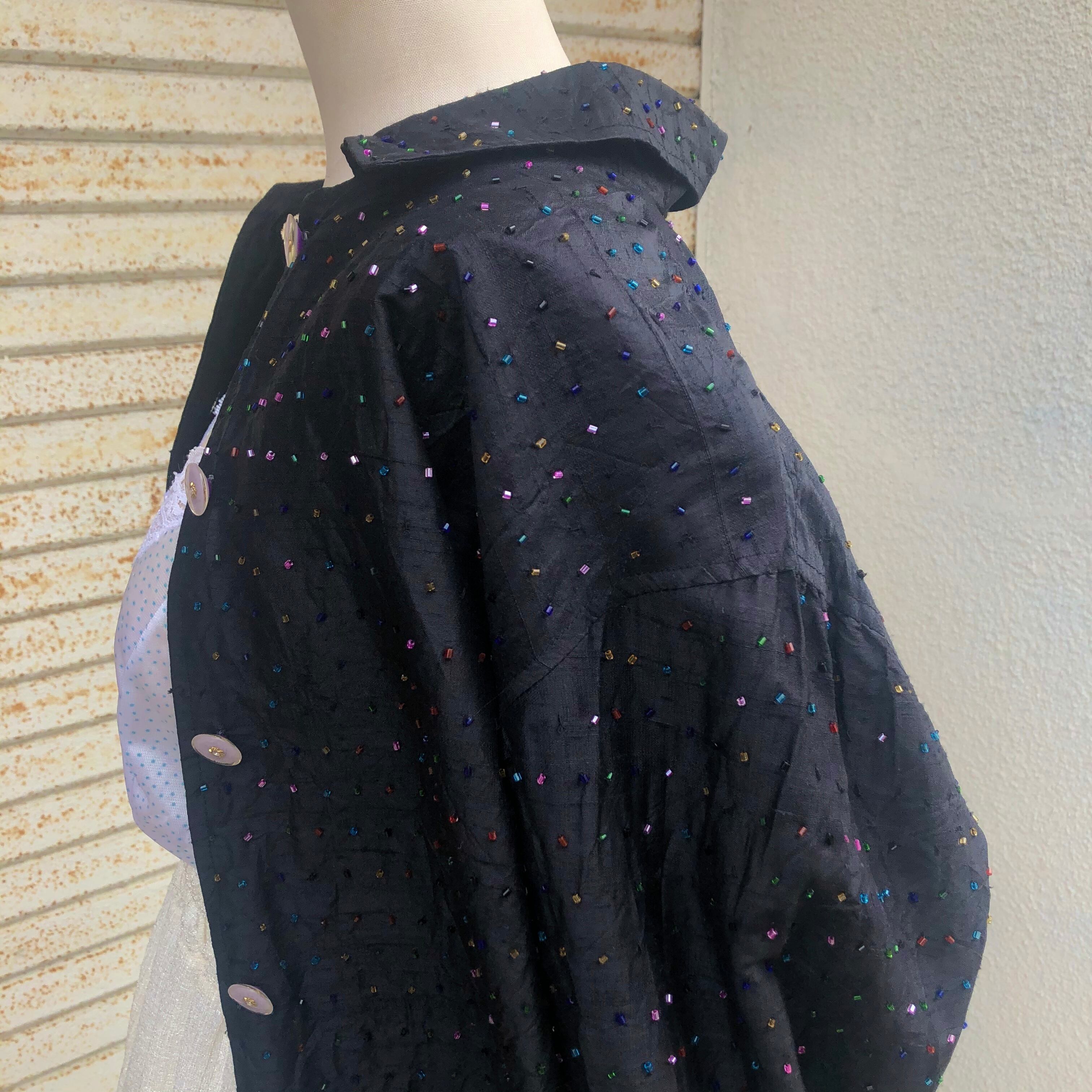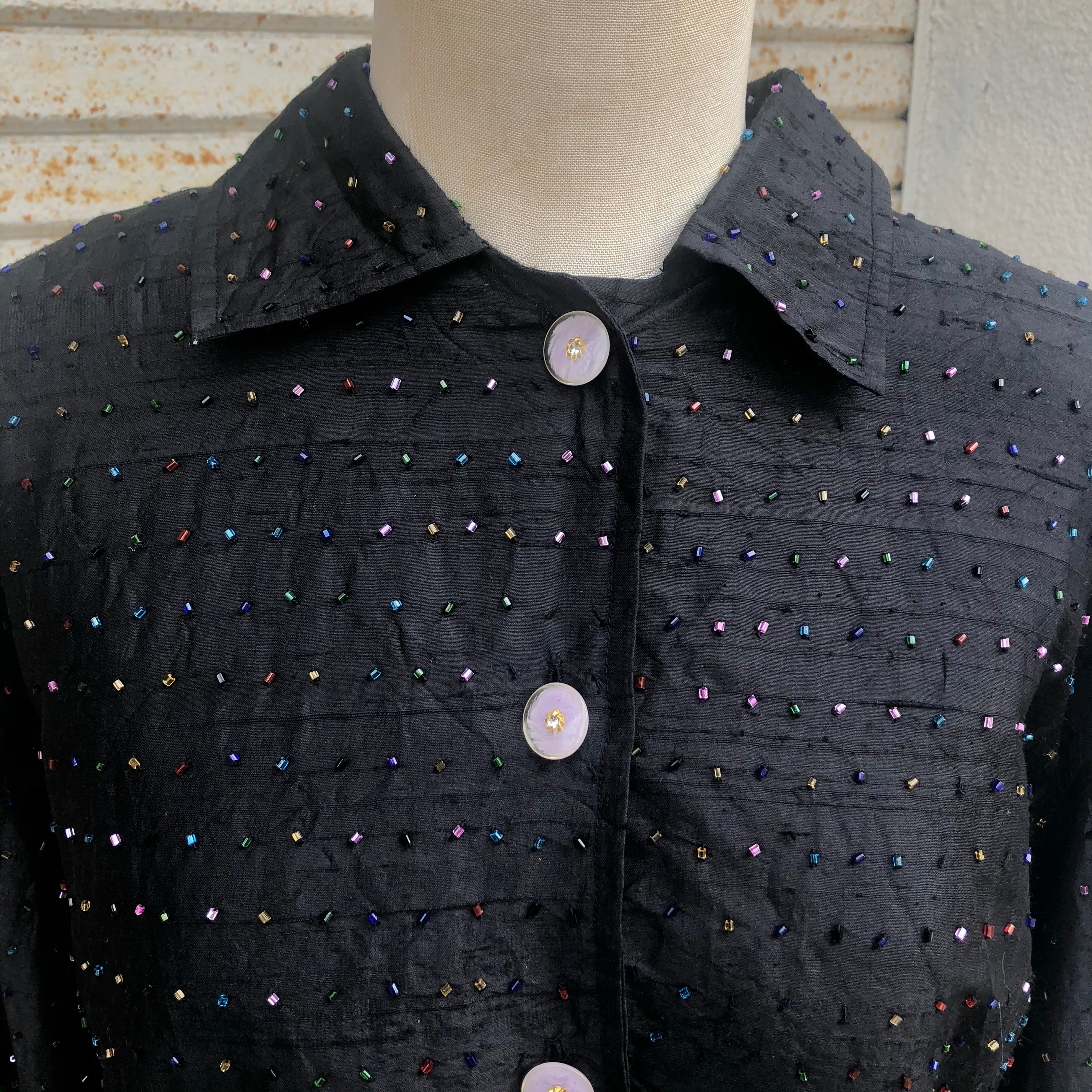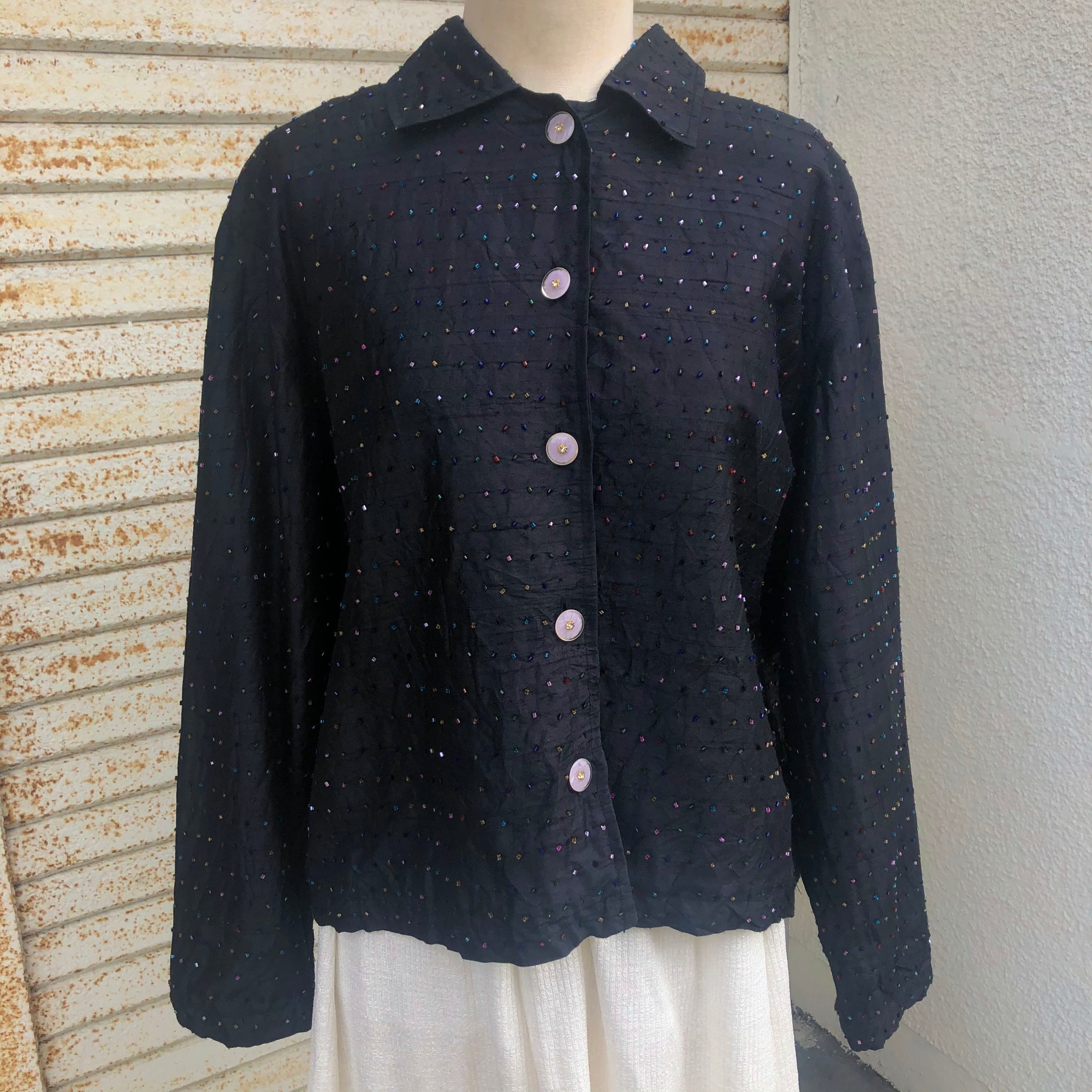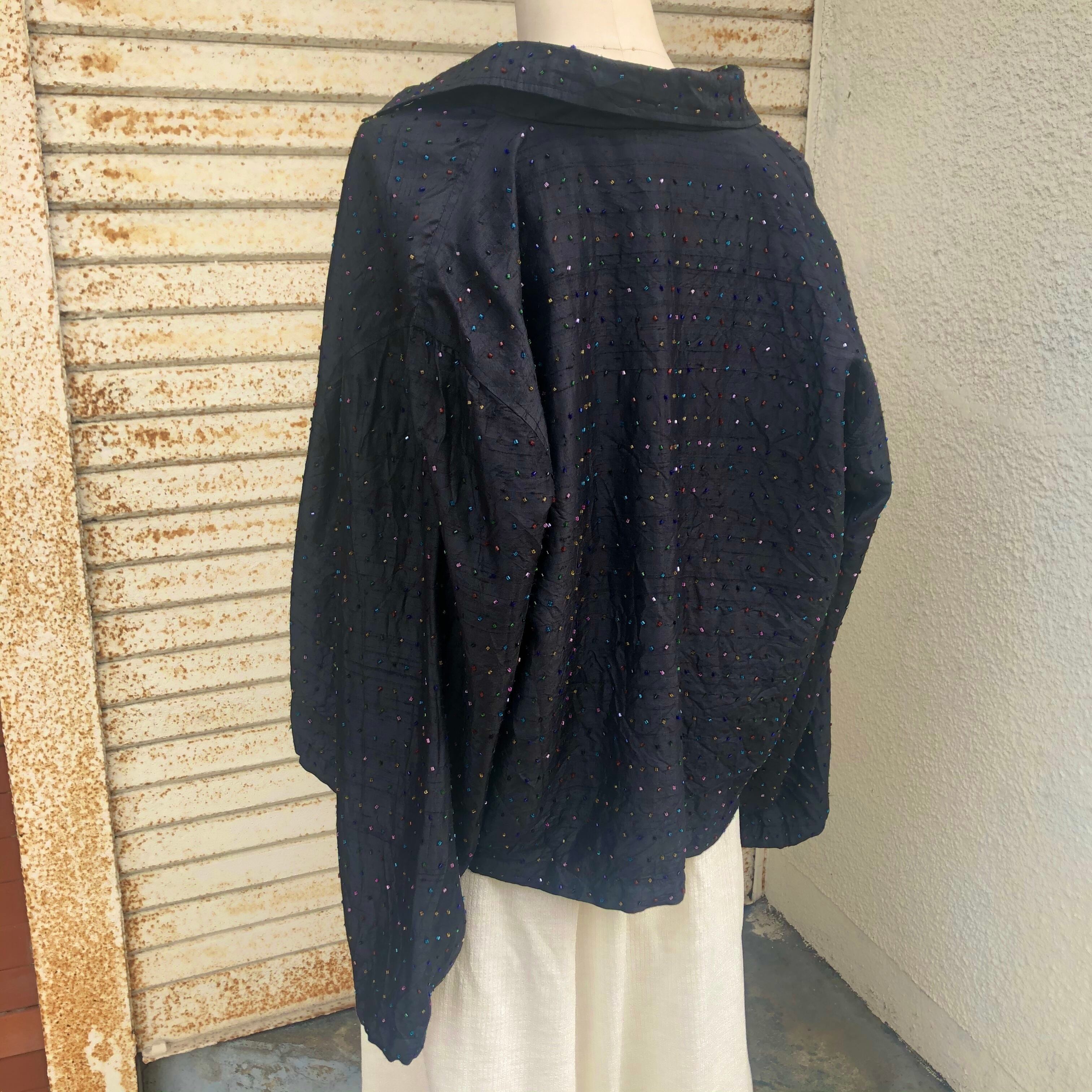 カラフルなビーズがたくさん縫い付けられたシルクのジャケットです。