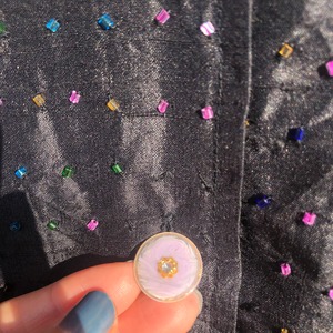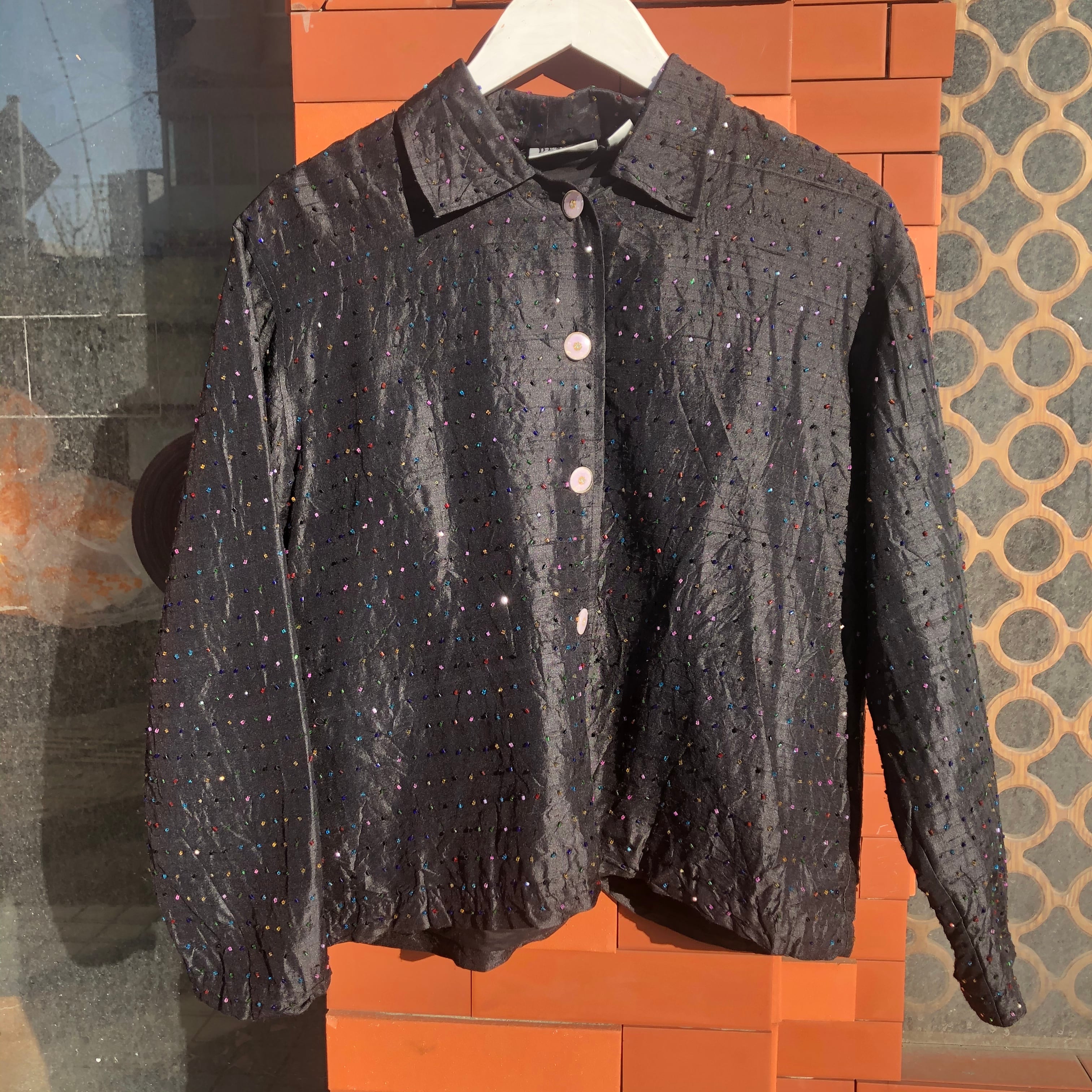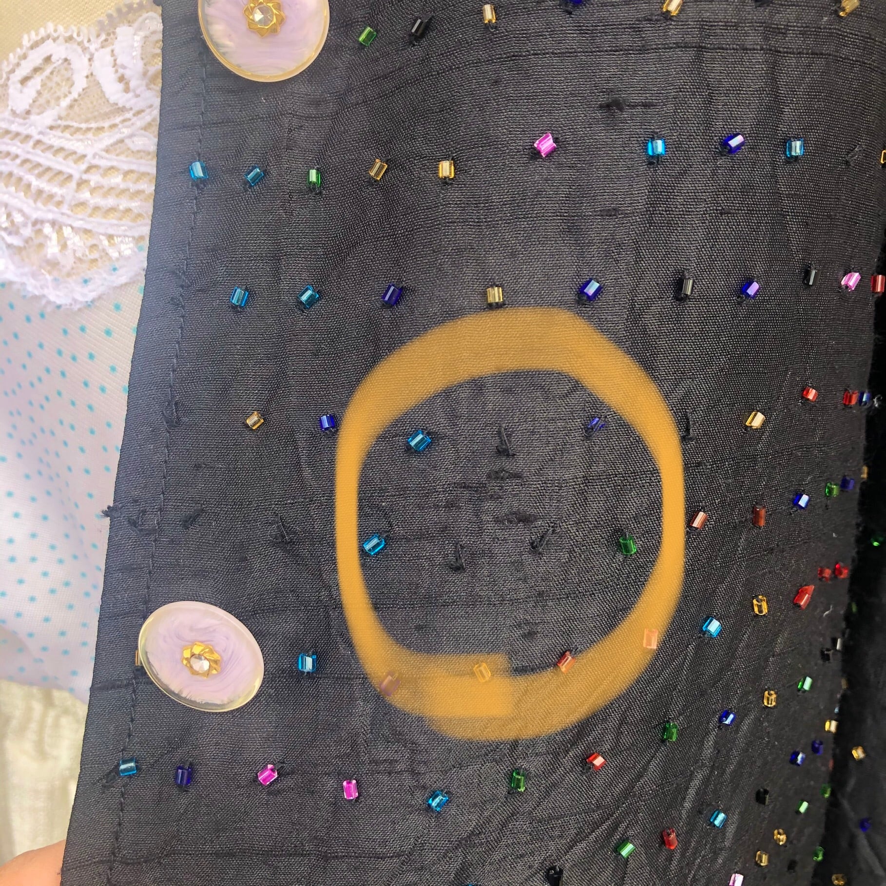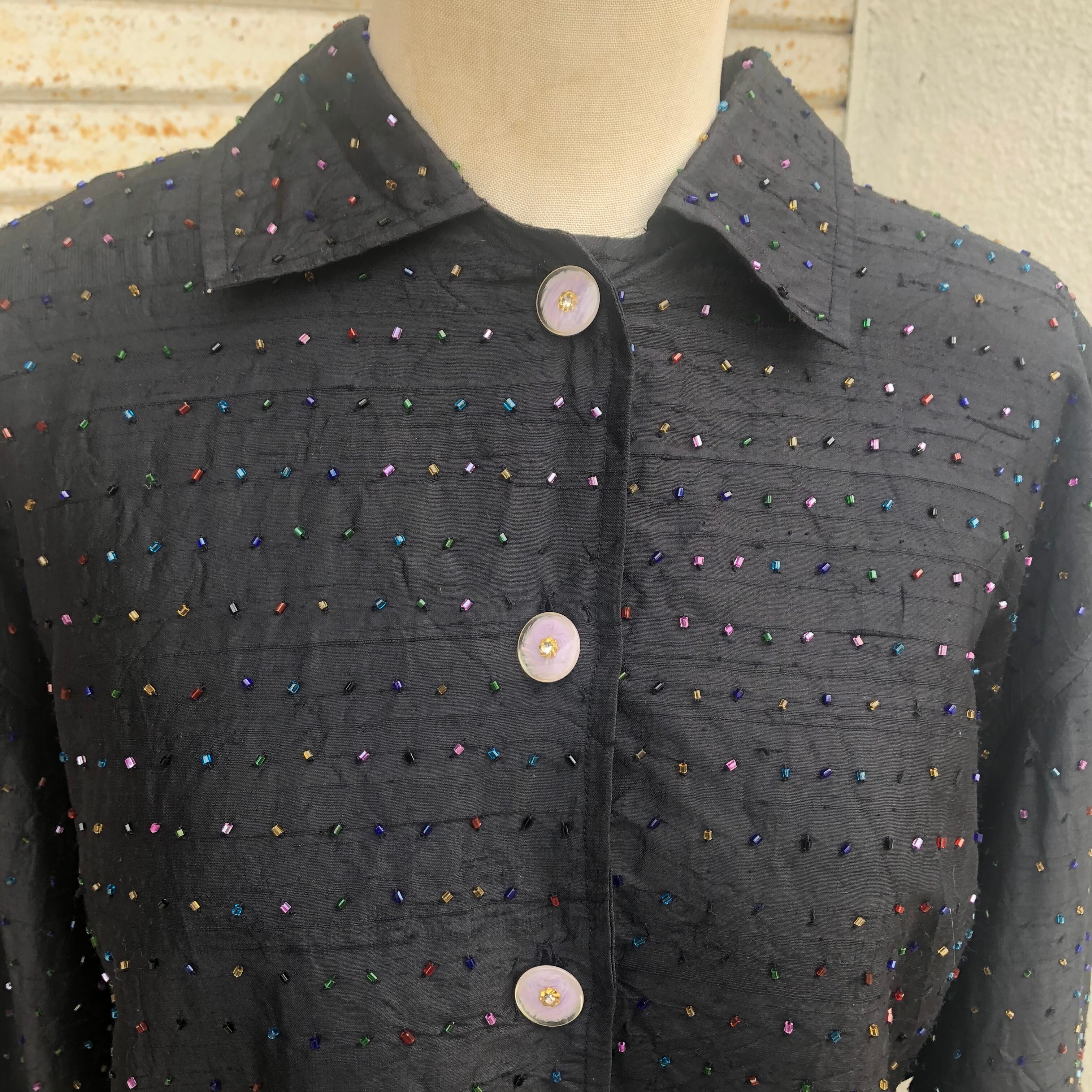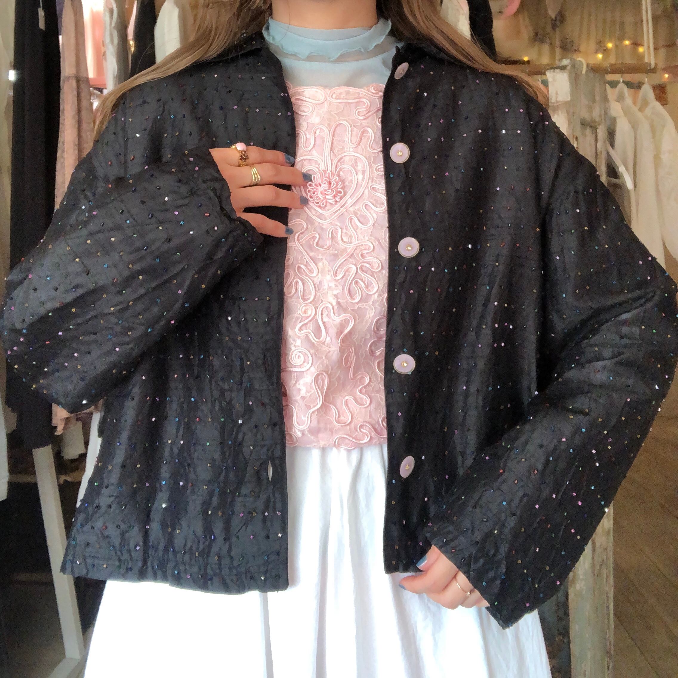 カラフルなビーズがたくさん縫い付けられたシルクのジャケットです。