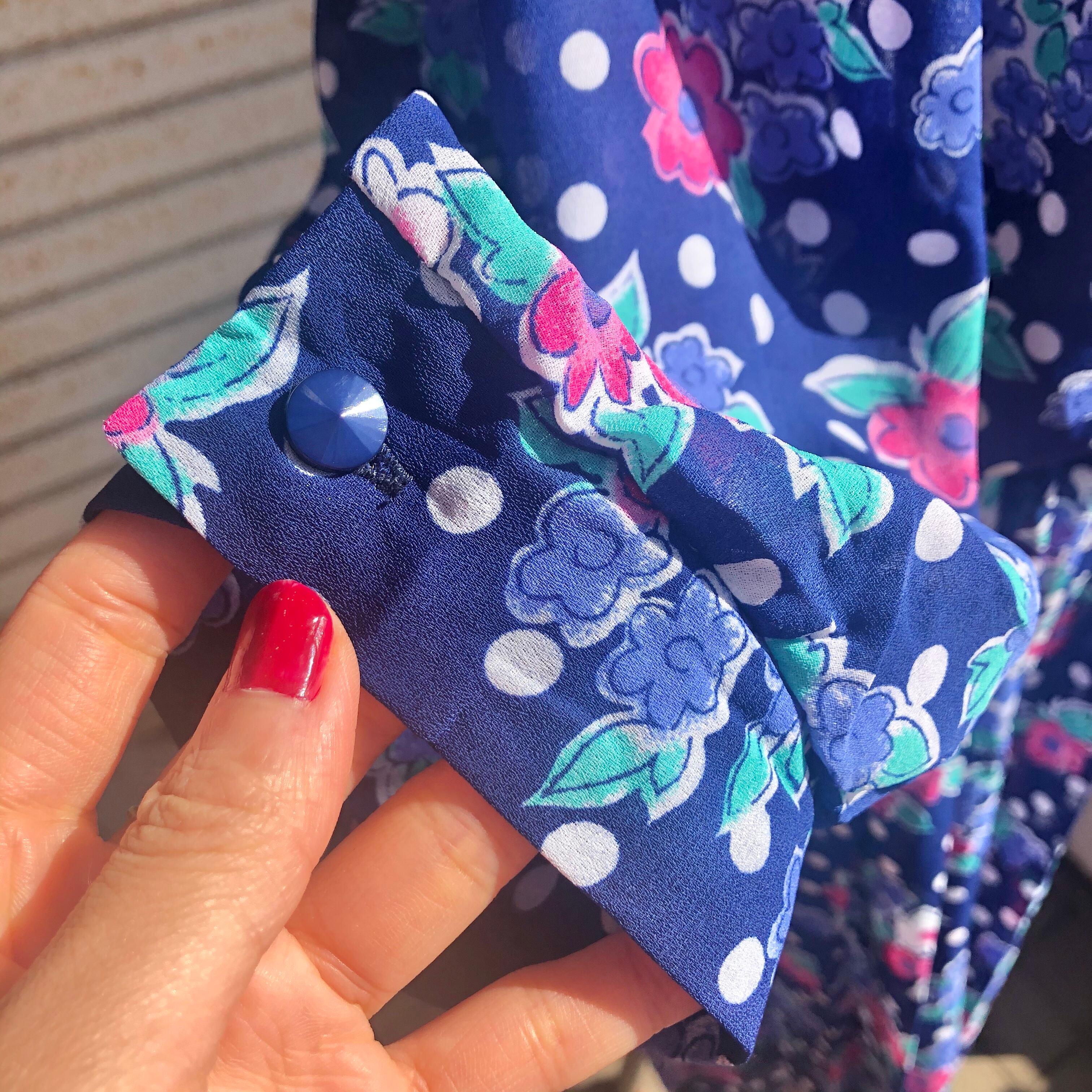 今時季からはもちろん、梅雨時季やアジサイが咲く頃に着ておでかけすると気分があがりそうなワンピースです。