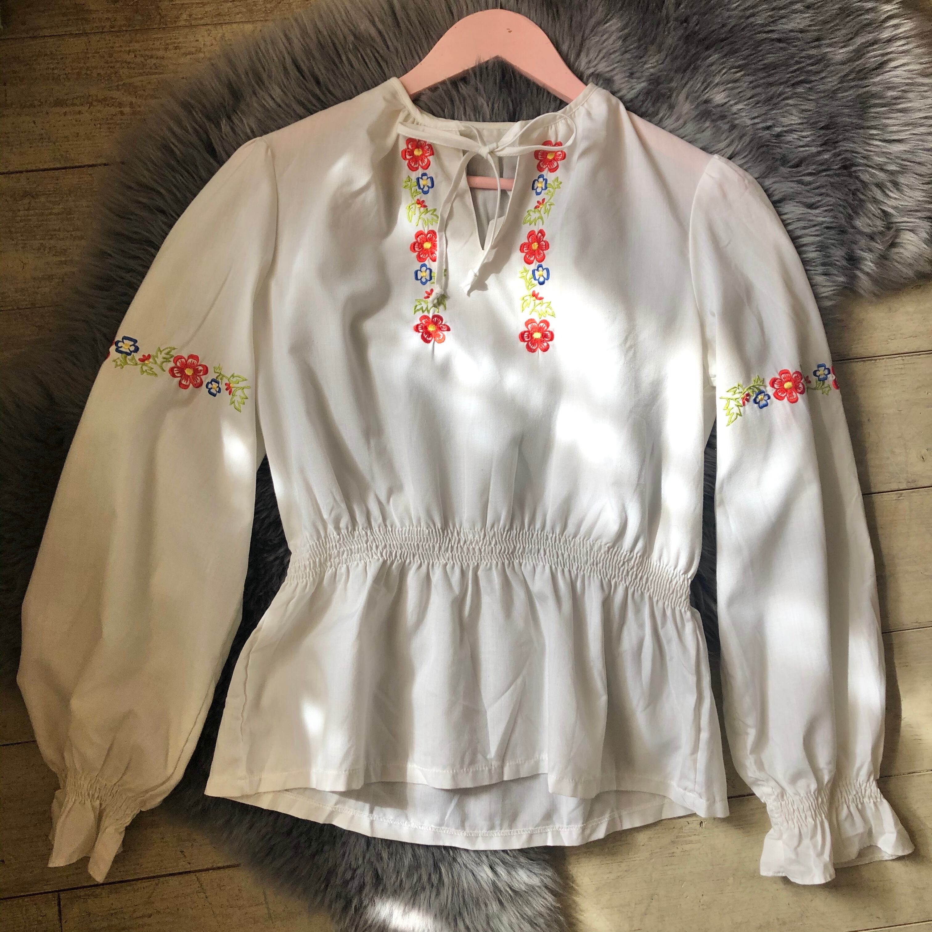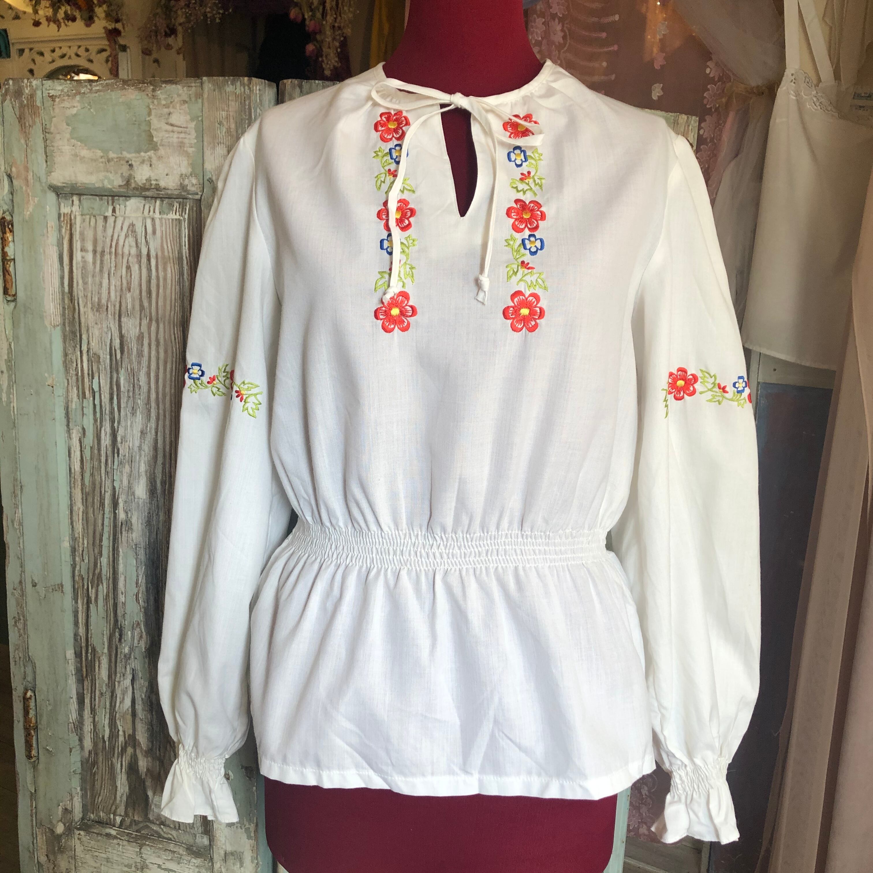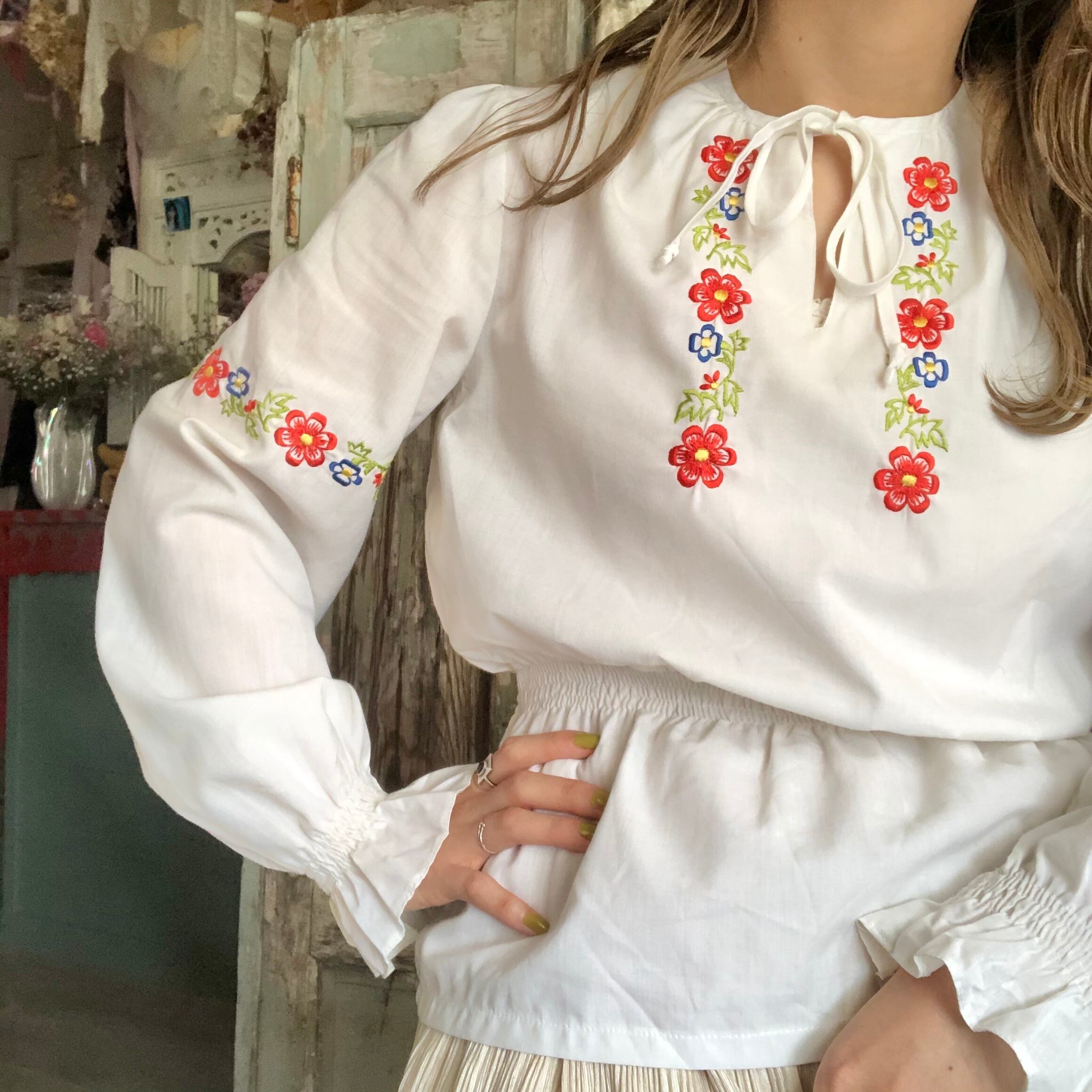 刺繍が二の腕と胸元に施されたチュニックです。