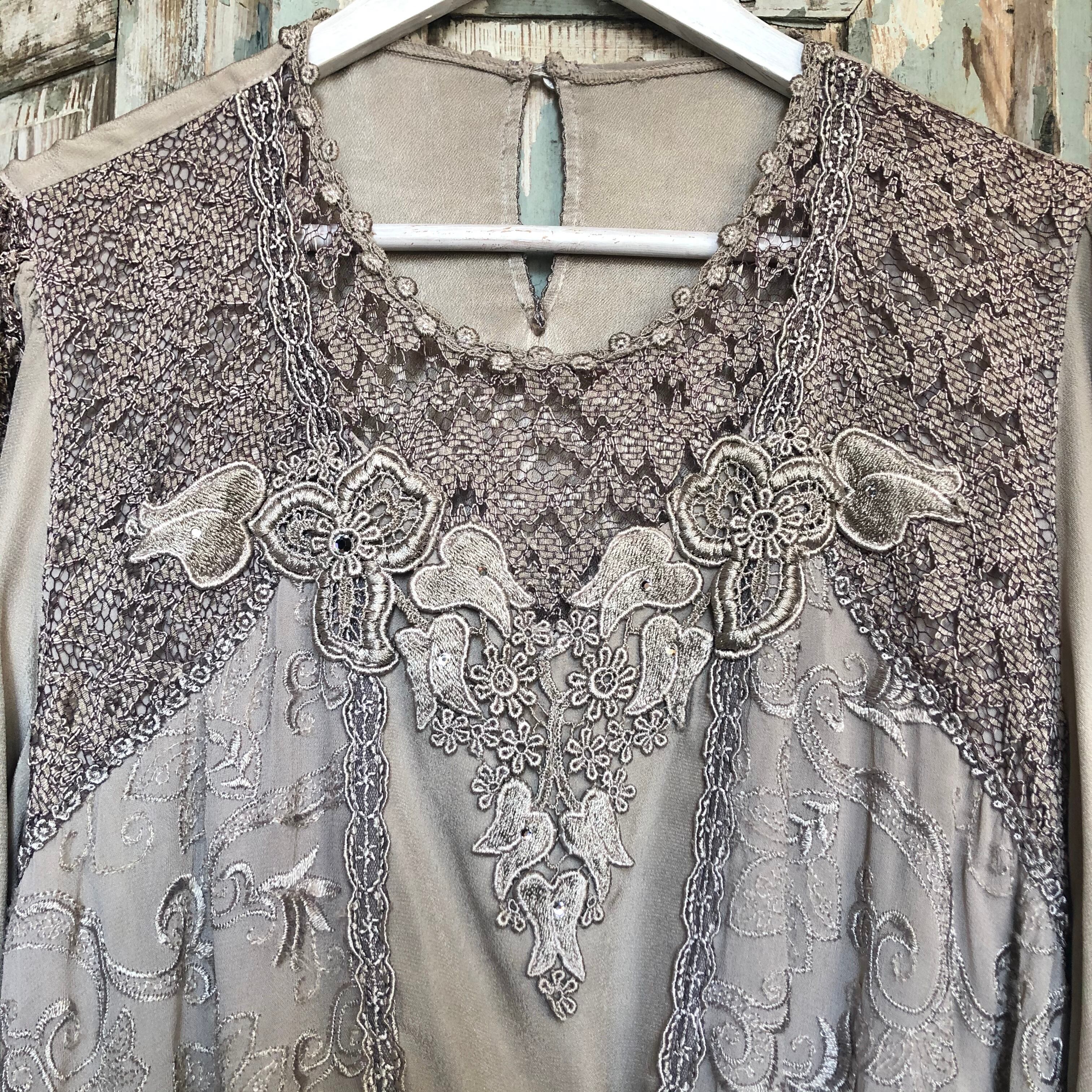 袖の一部分がレースになっていて透けるので軽やかさがあります。