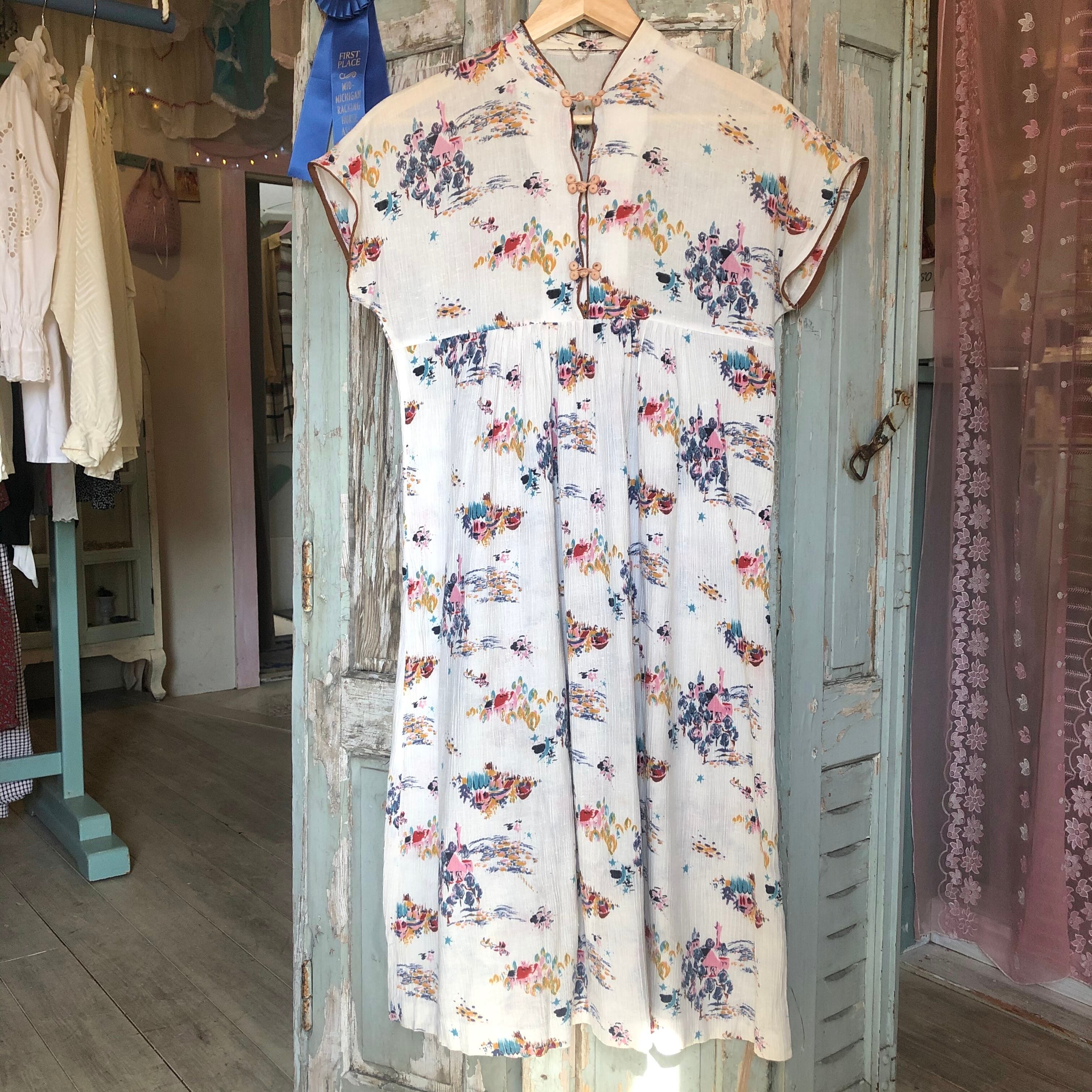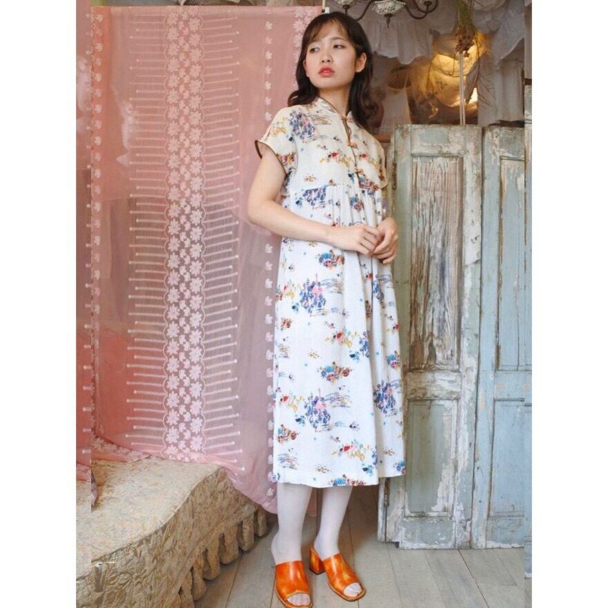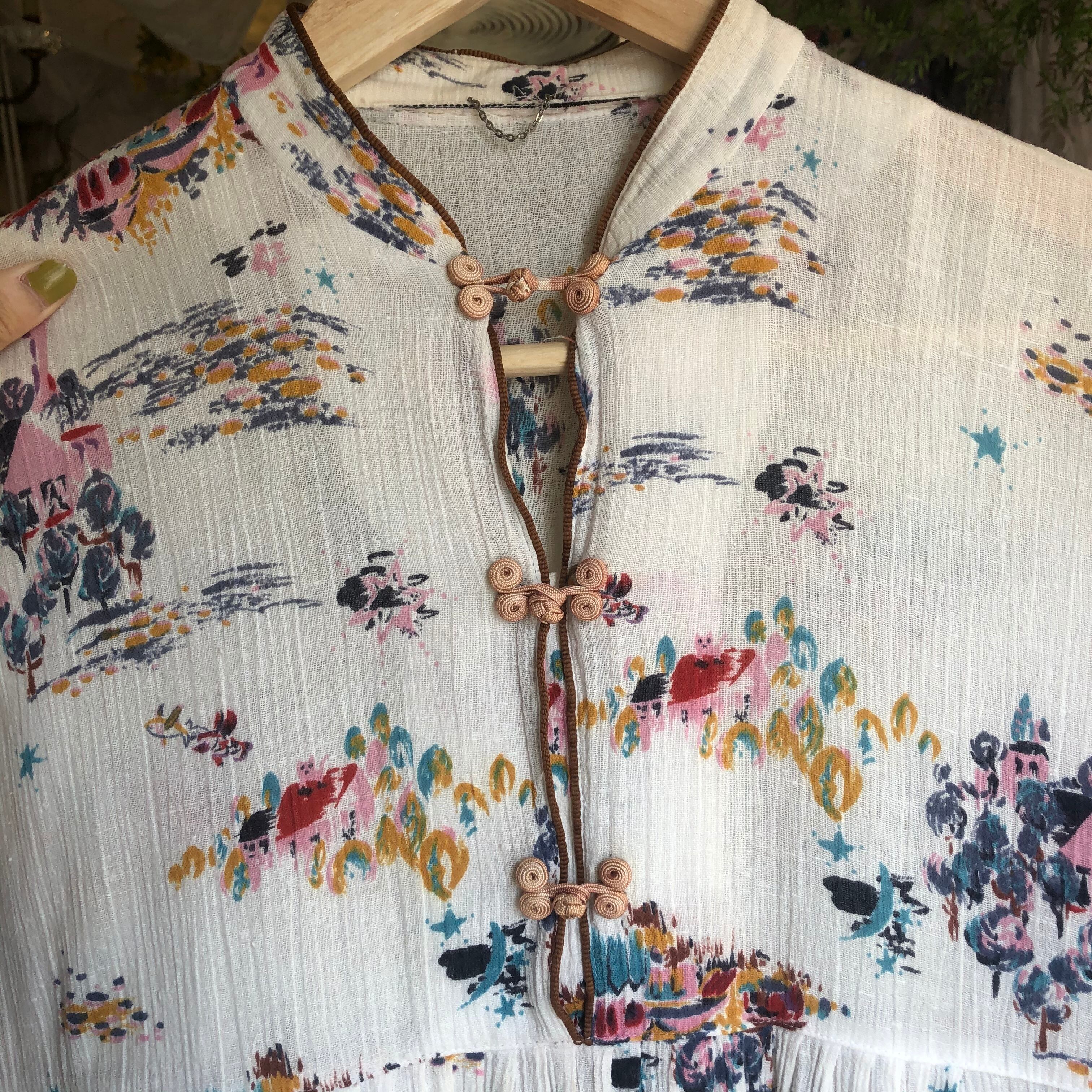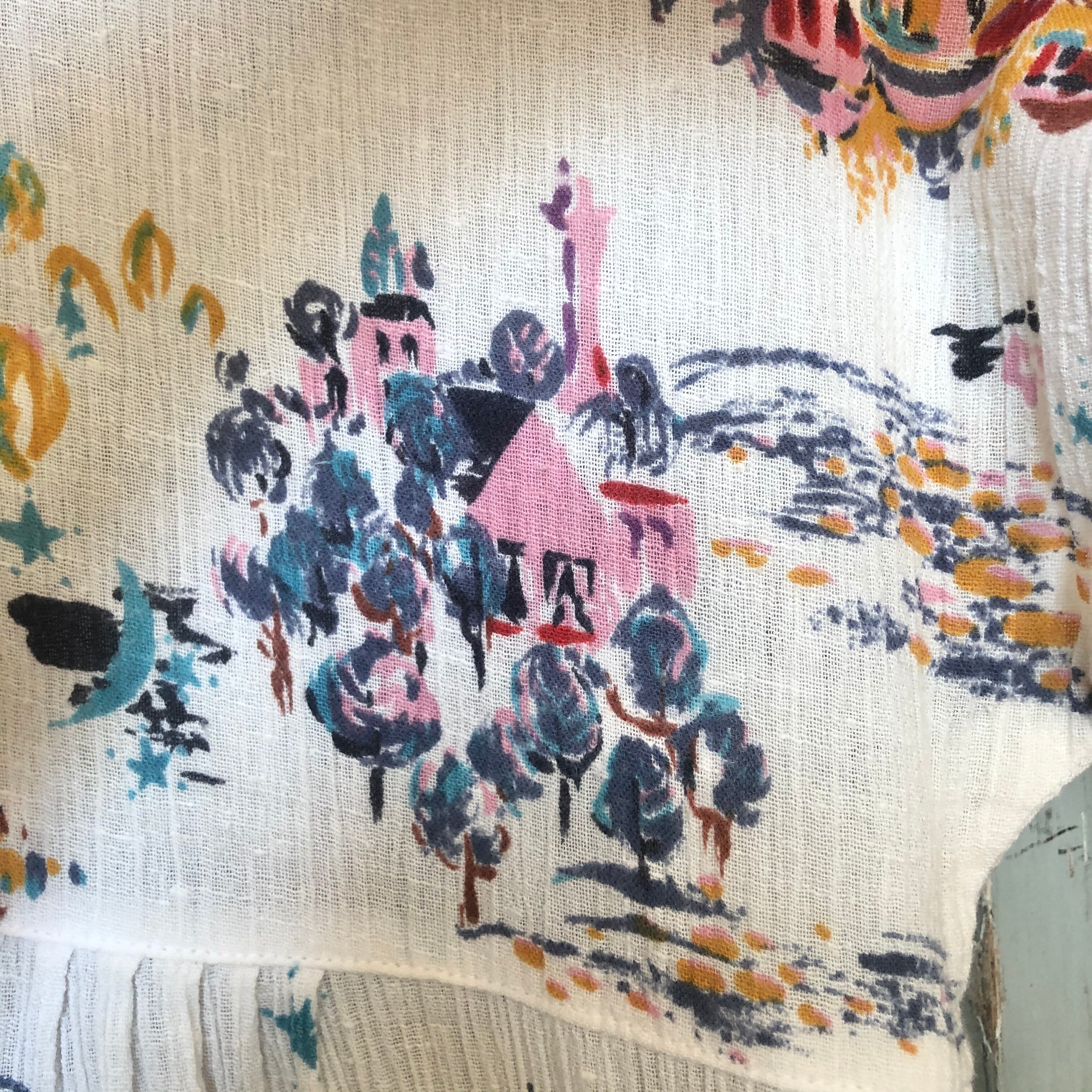 木々やお家の柄がぼんやりとしたタッチで描かれています。