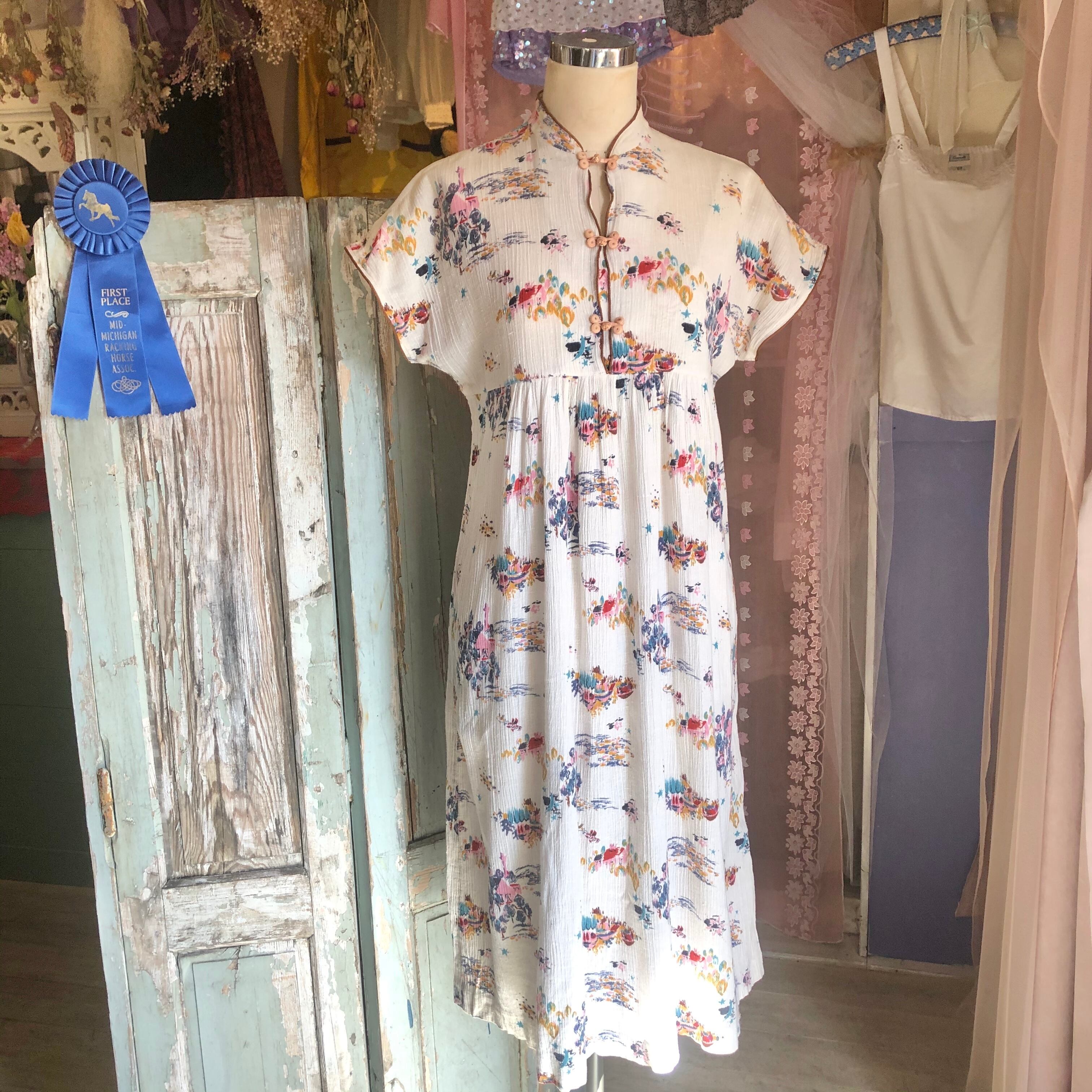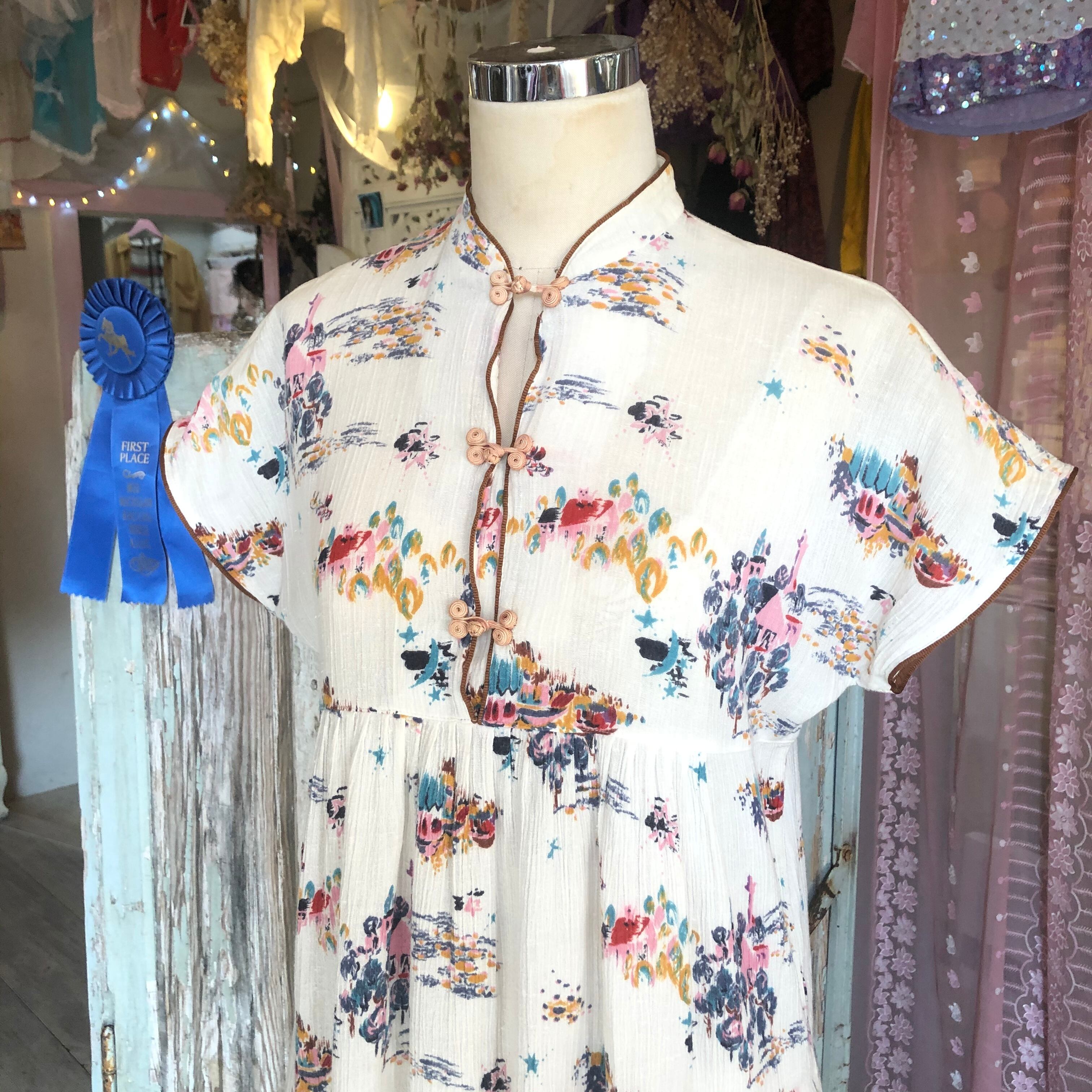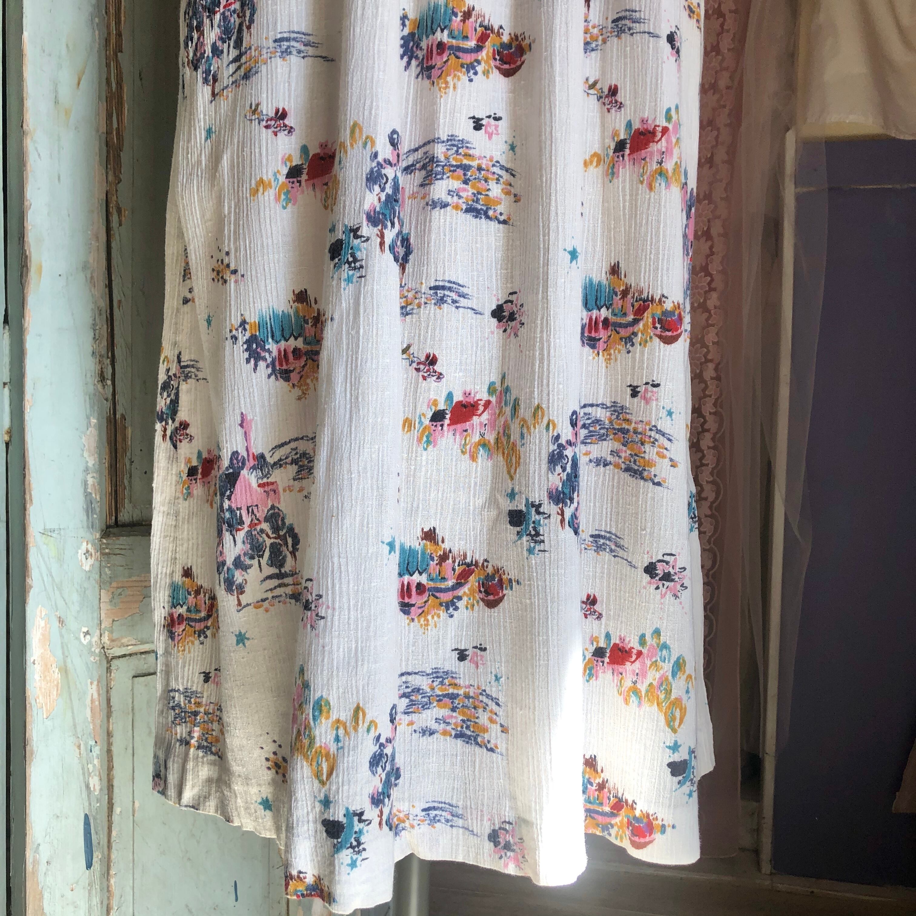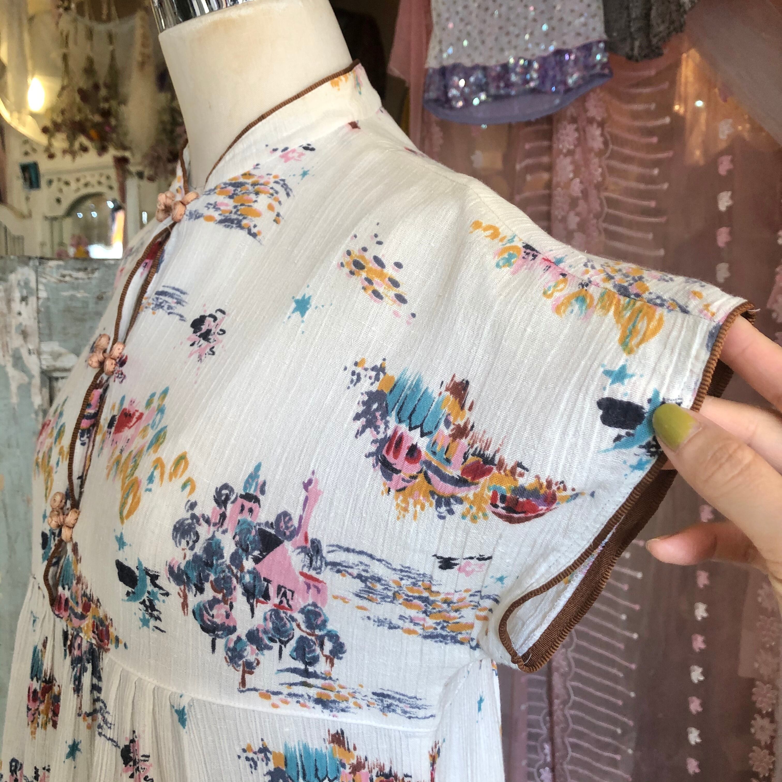 木々やお家の柄がぼんやりとしたタッチで描かれています。
