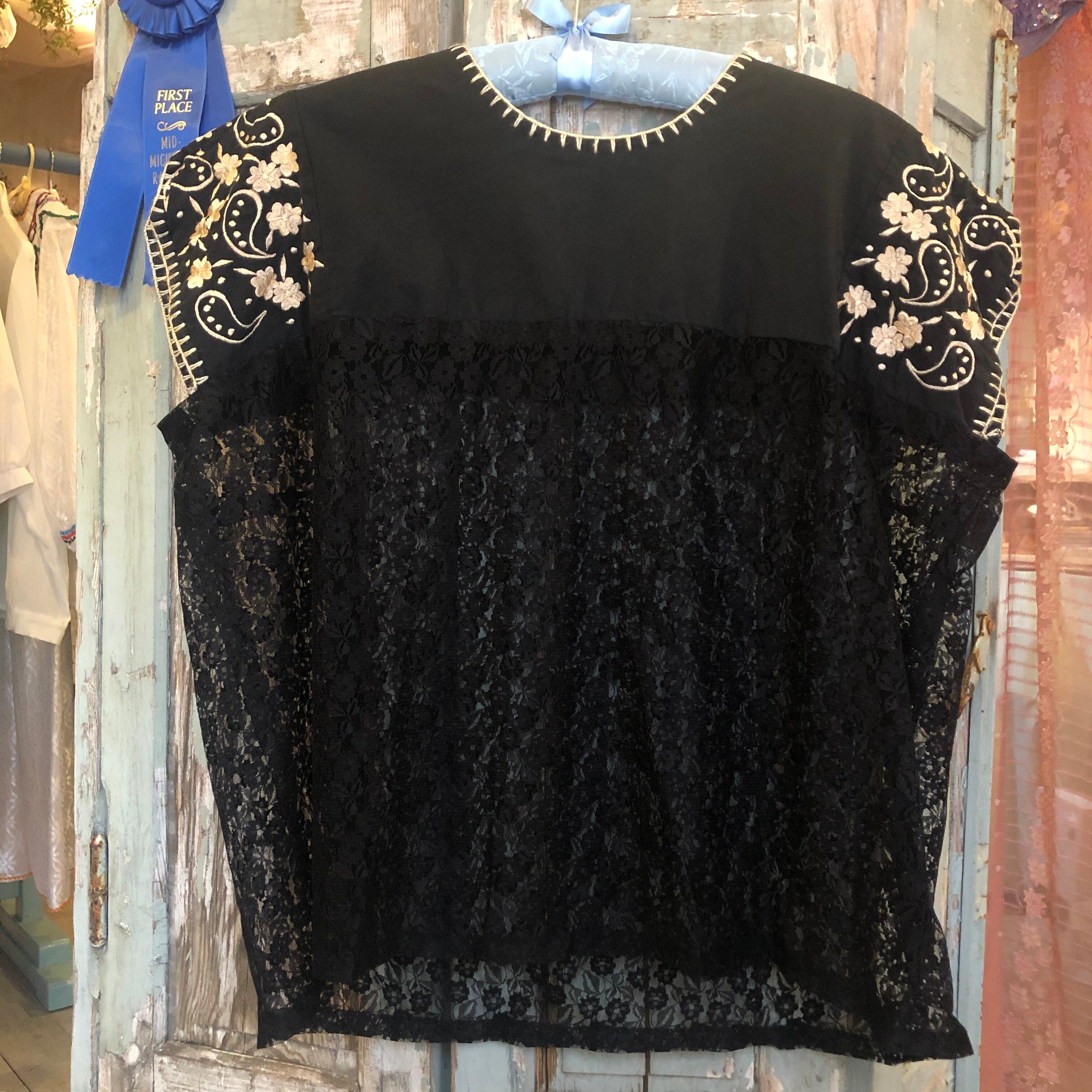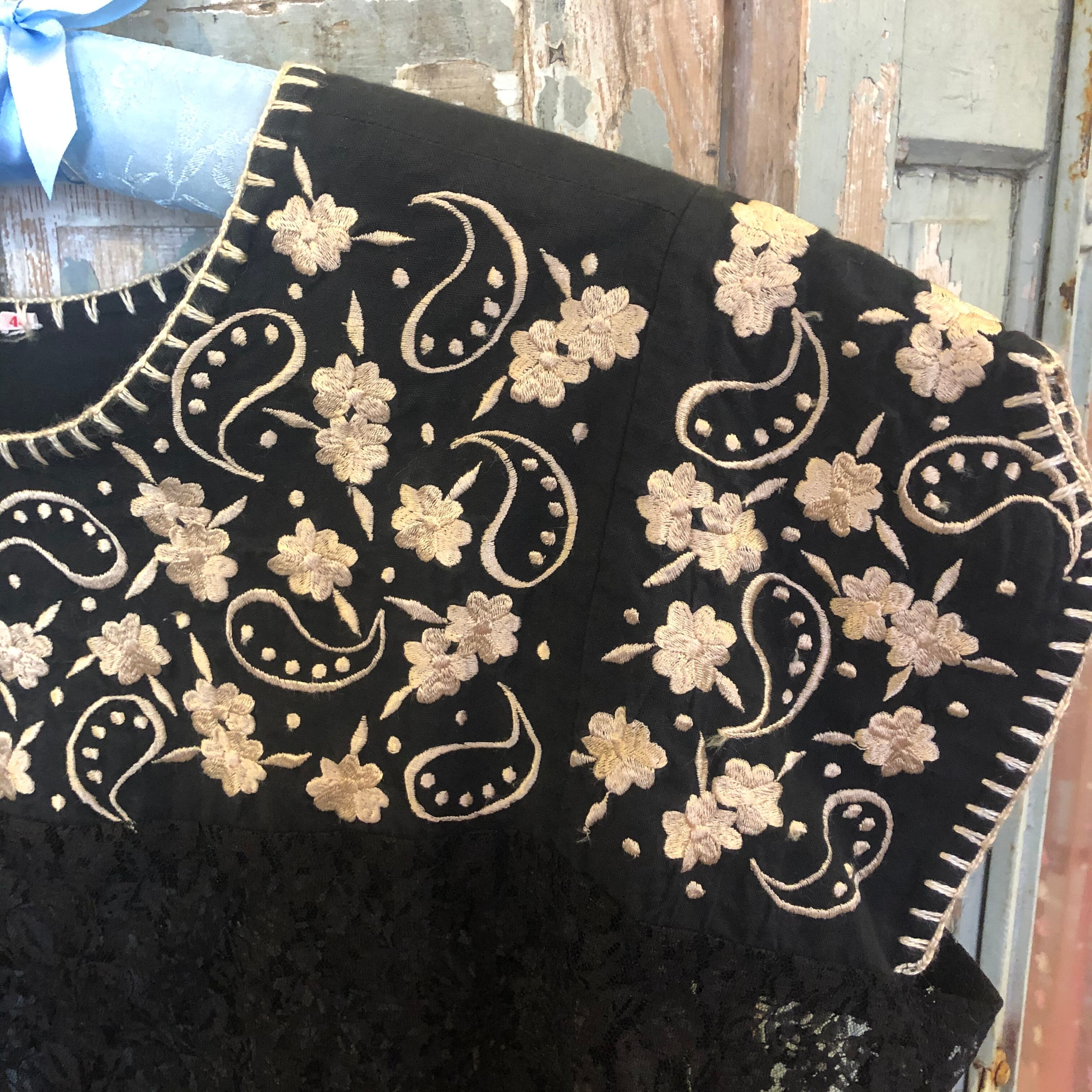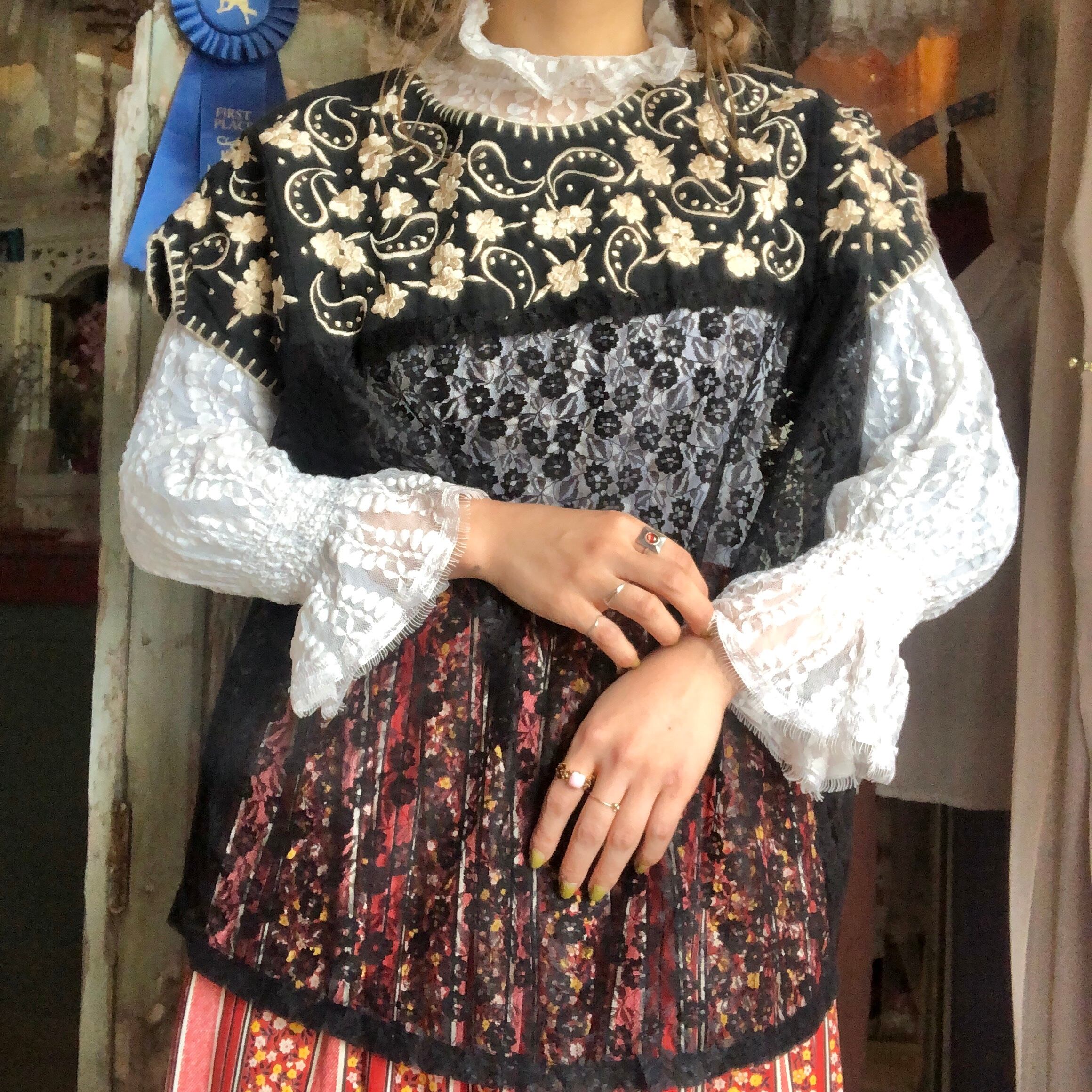 刺繍チュニックにブラックのレースがドッキングされた珍しいチュニック 。