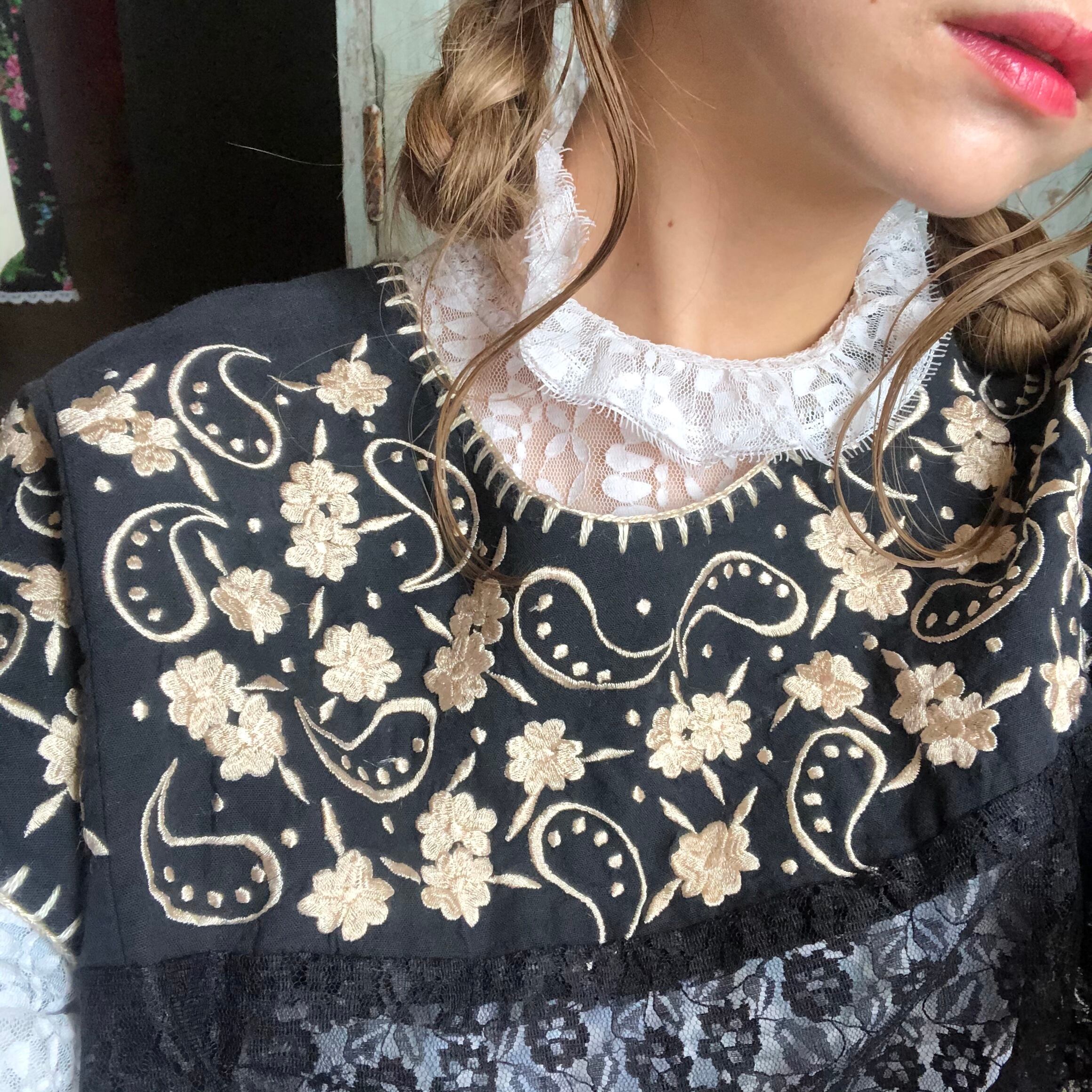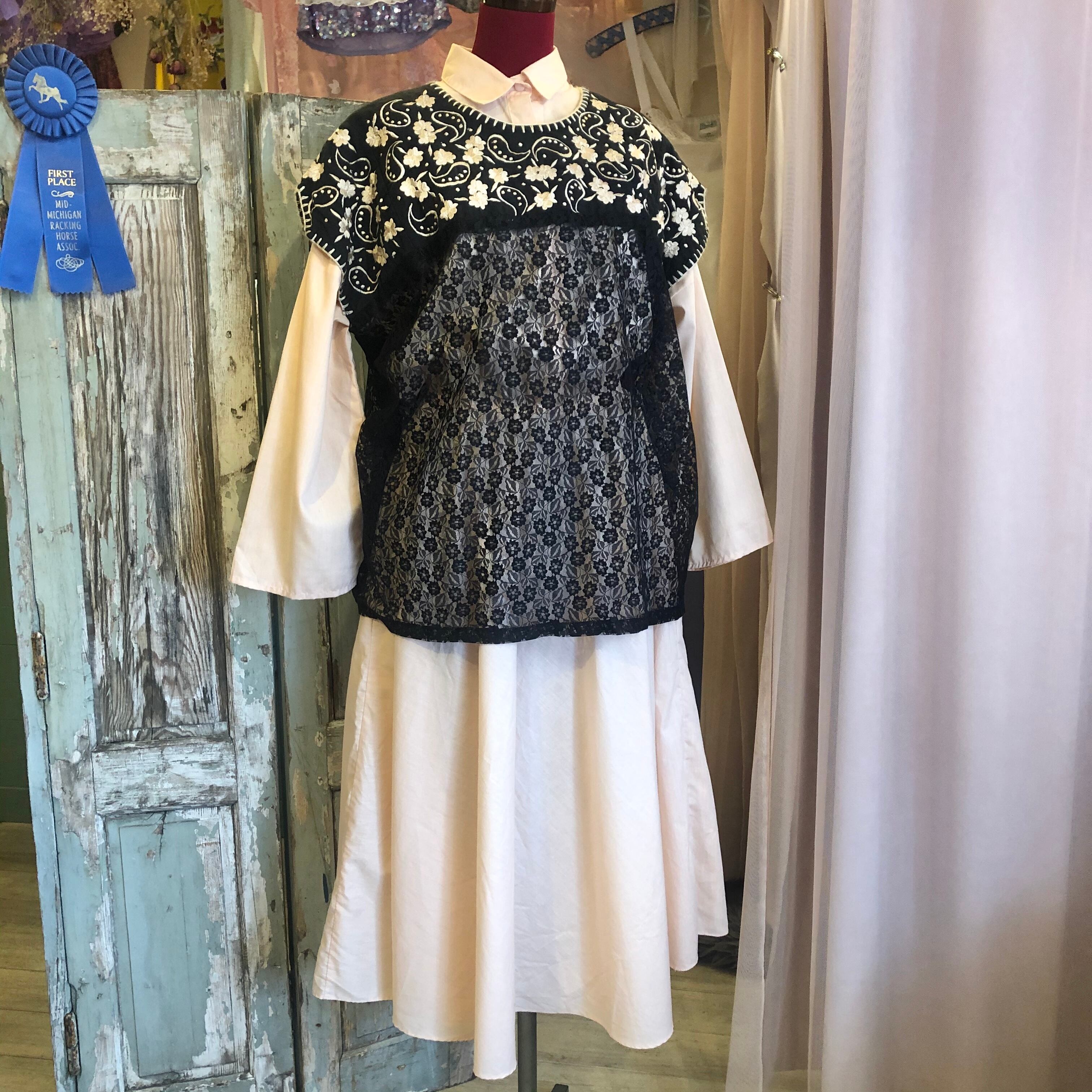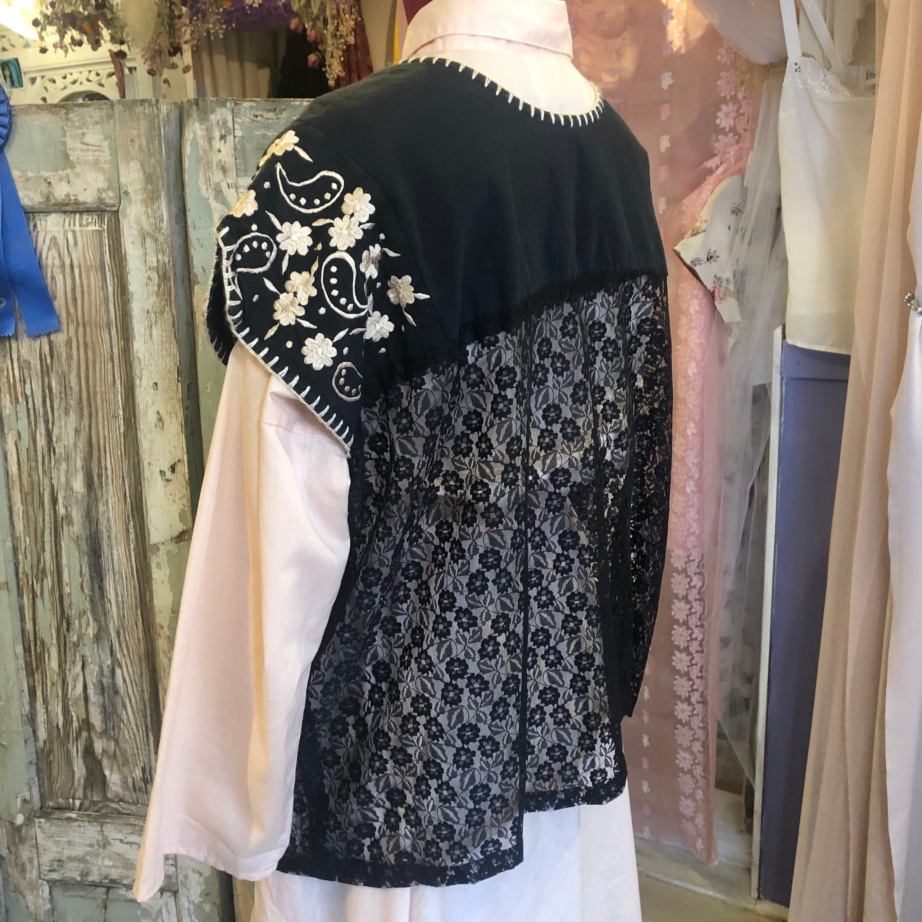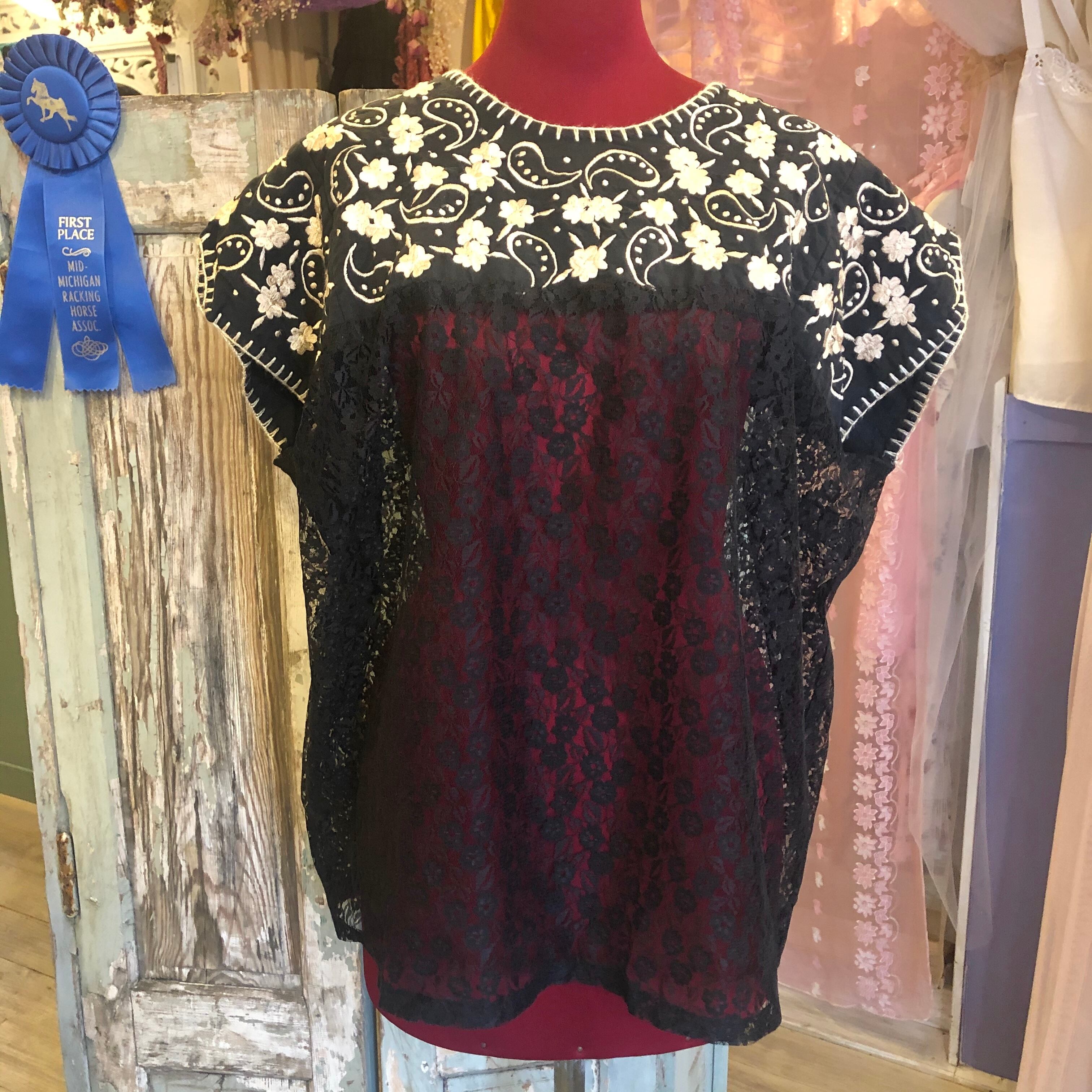 刺繍チュニックにブラックのレースがドッキングされた珍しいチュニック 。