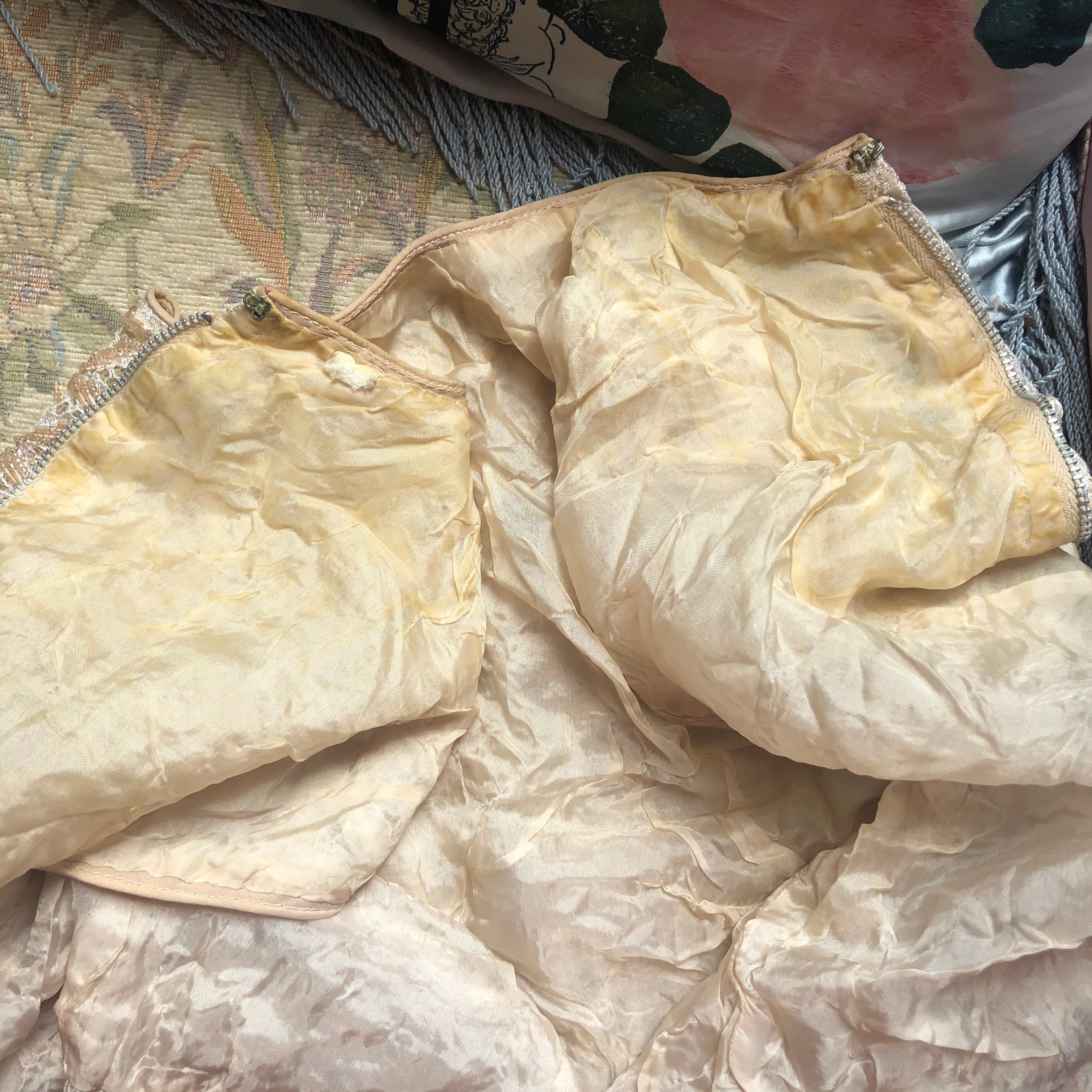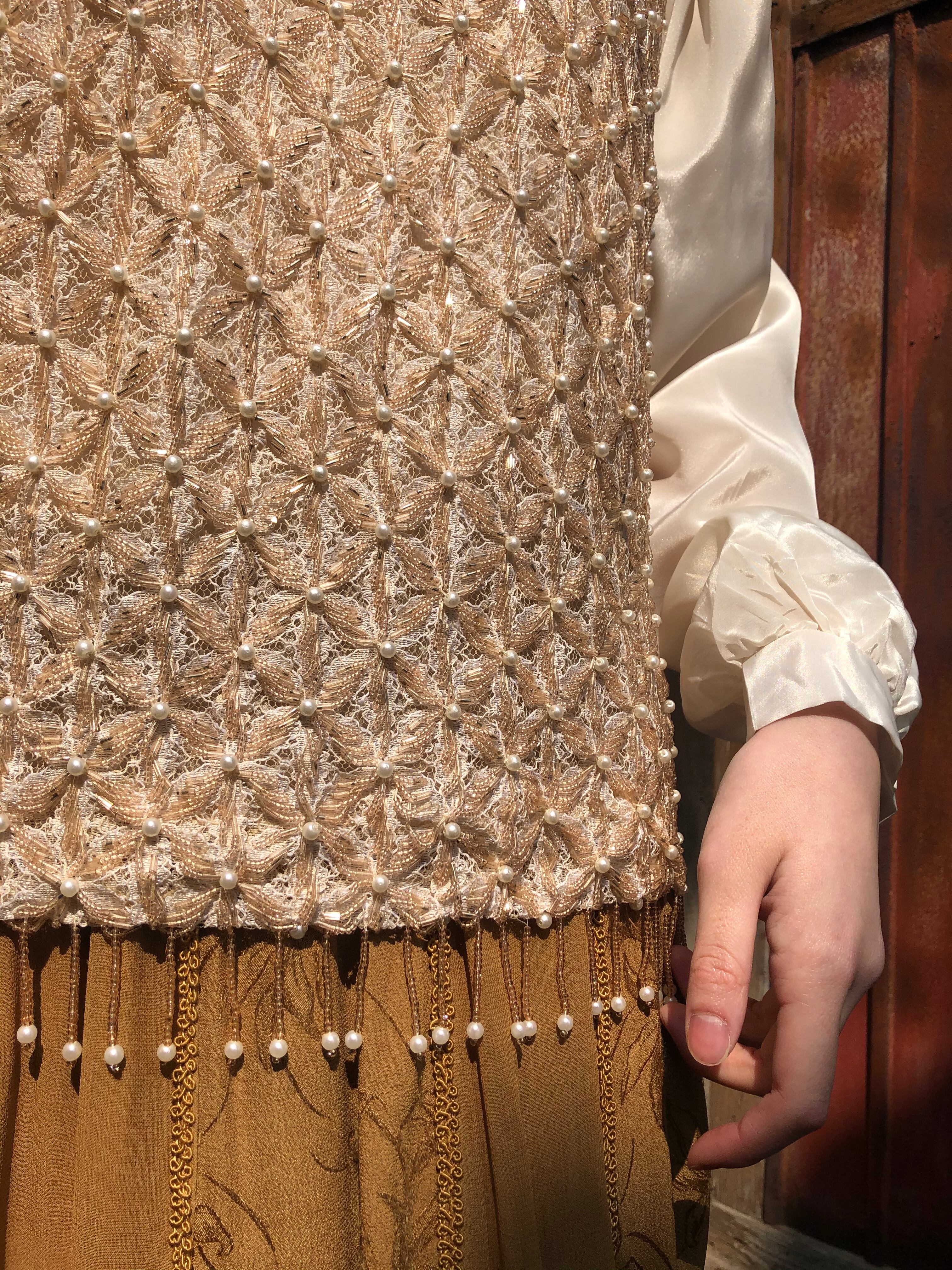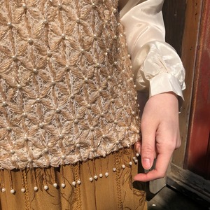 裾についたビーズたちが、糸が不揃いになってしまっています。