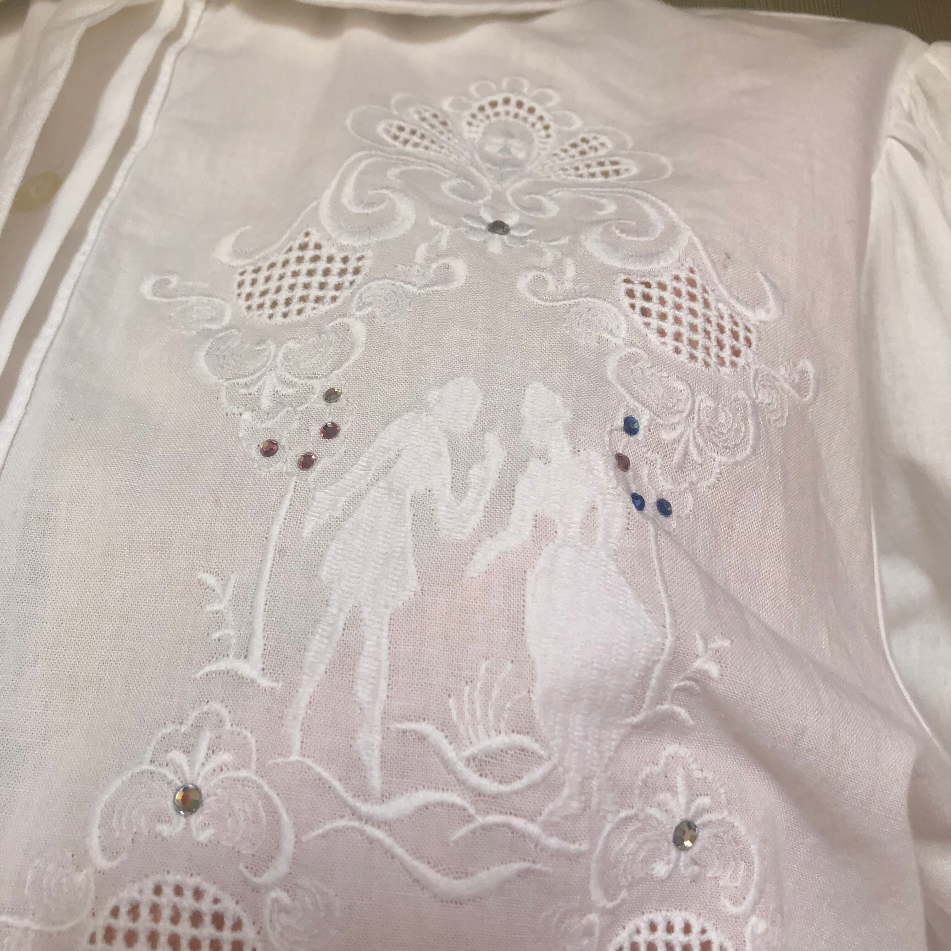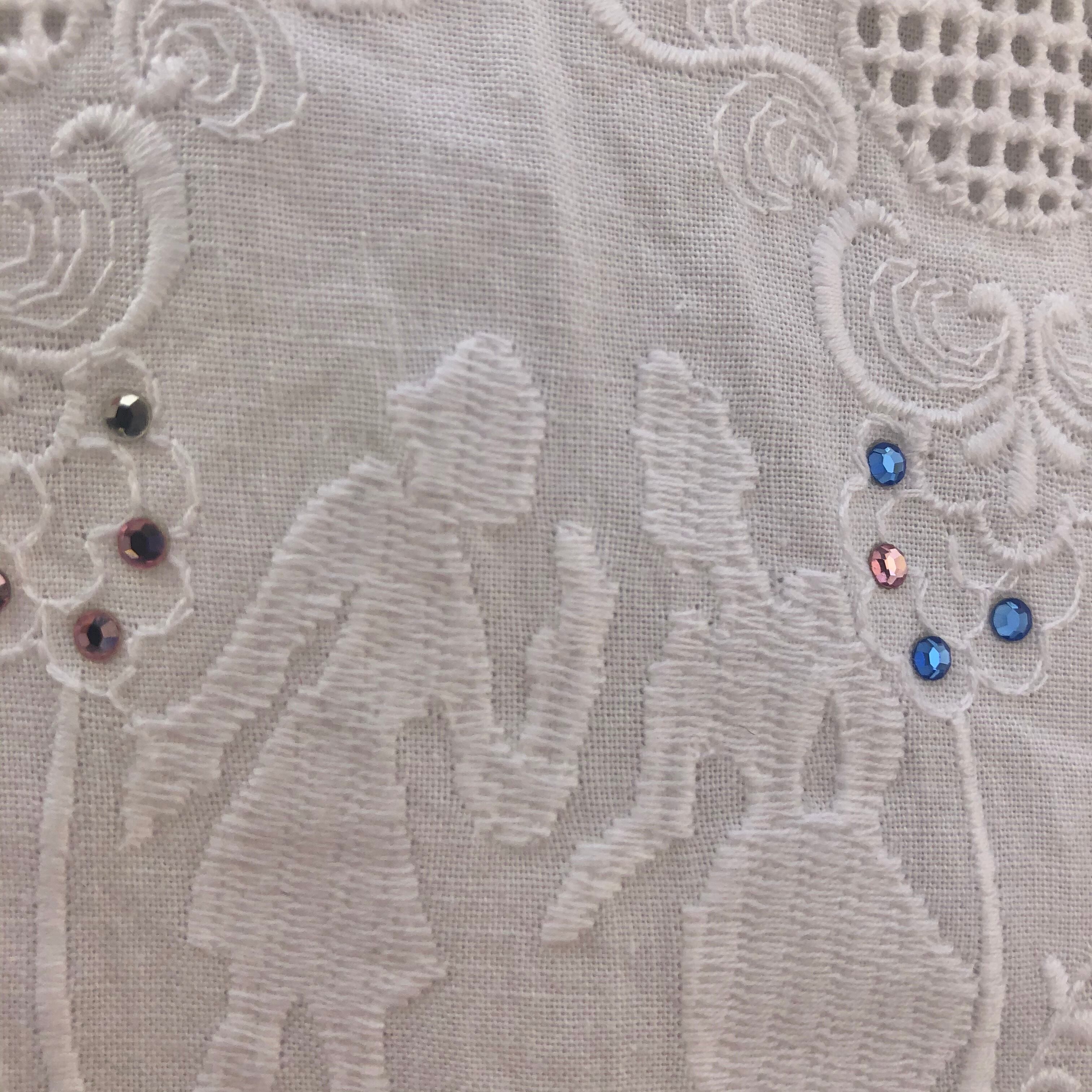 一見わかりづらいですが、よく見るとシンデレラと王子が馬車に乗っているような刺繍が…