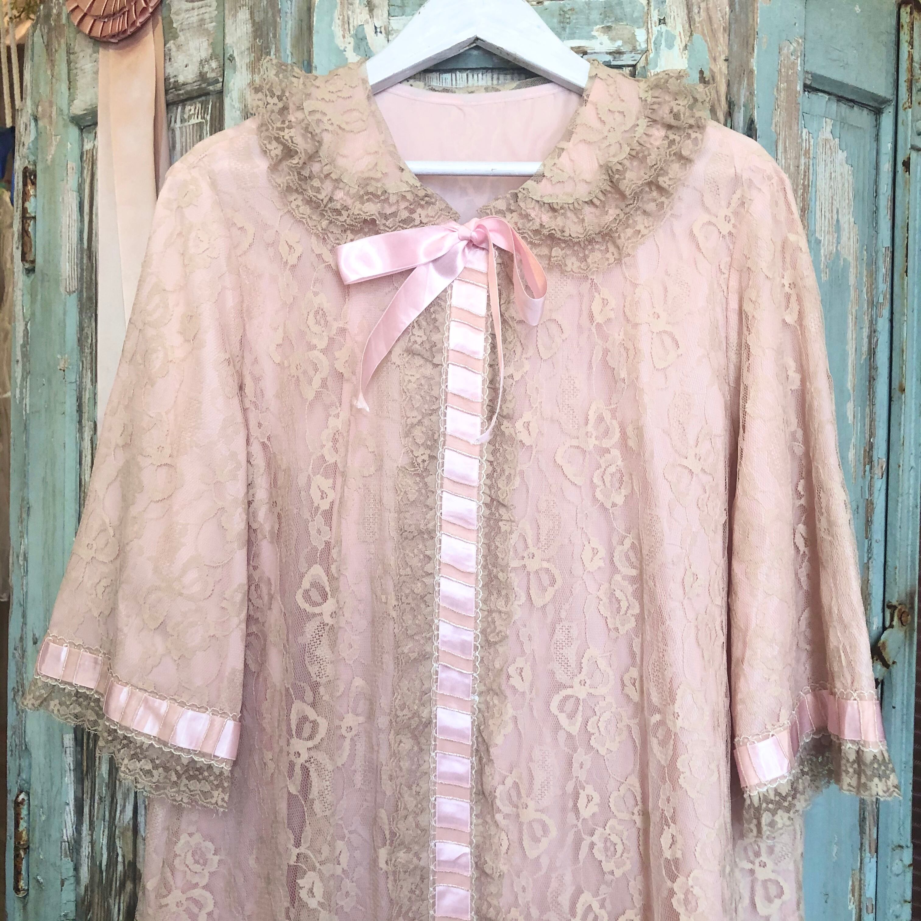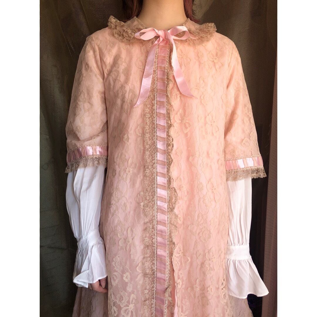ピンクのボディーにベージュのレースがかわいらしい総レースガウンです。