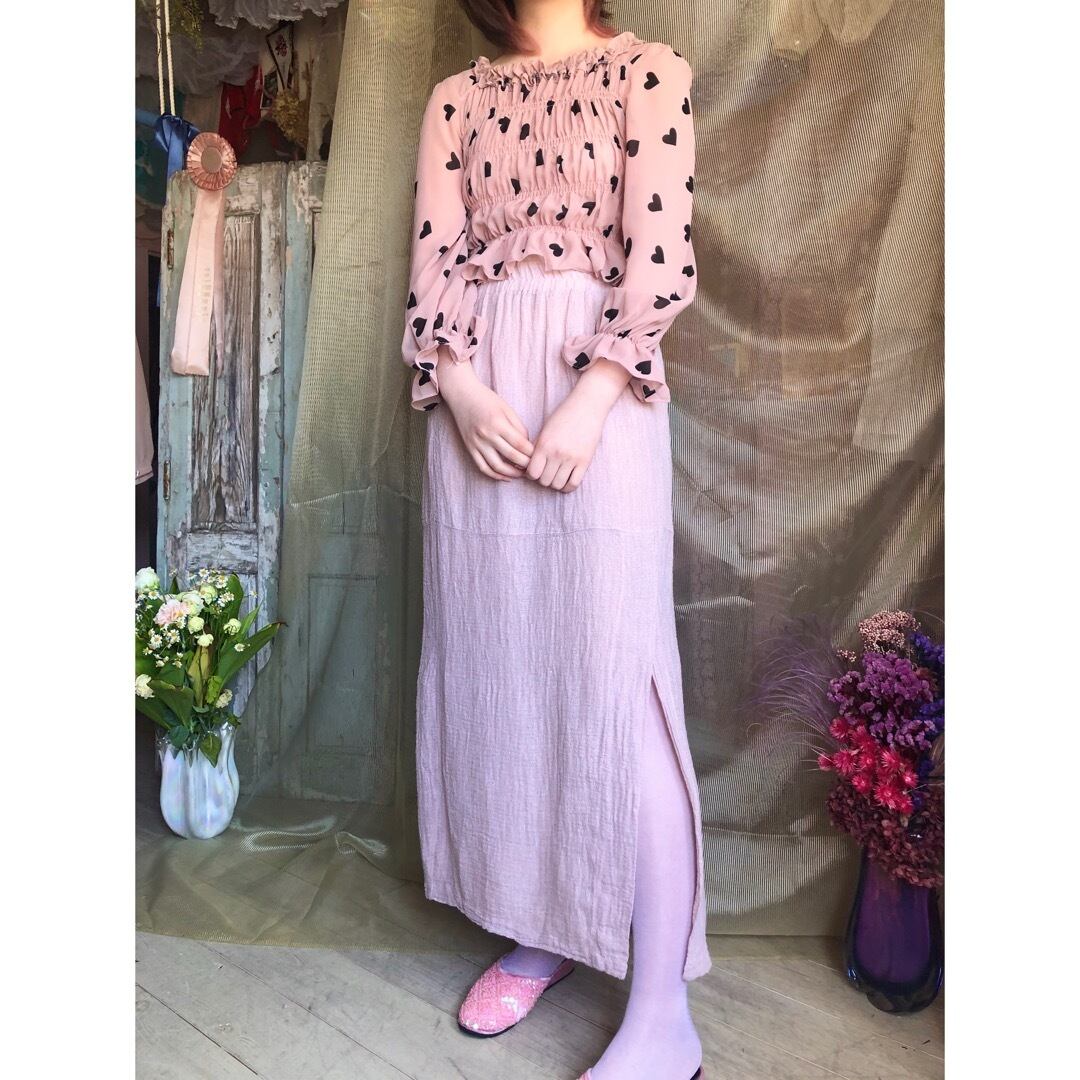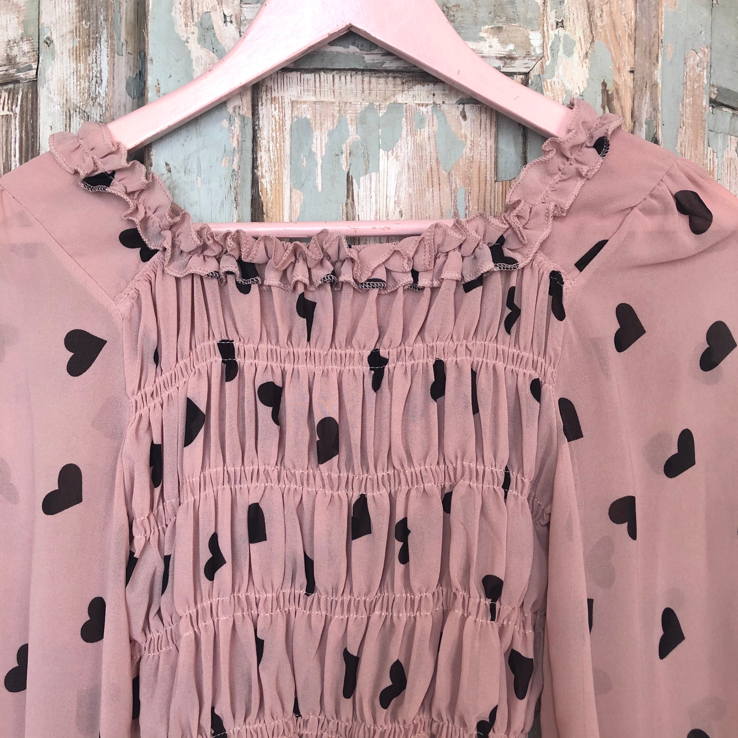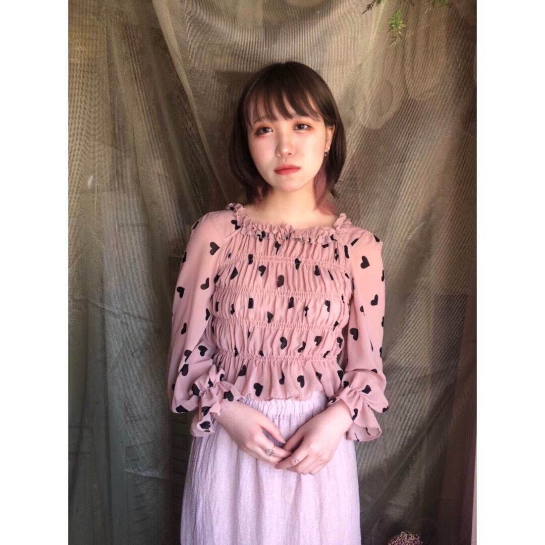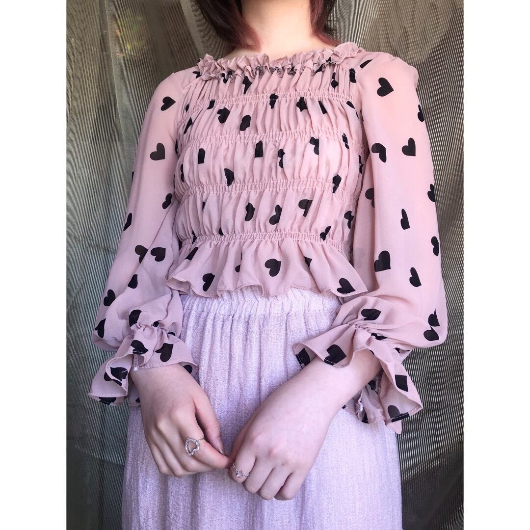 シフォンのような若干透け感のある素材のシャーリングトップスです。