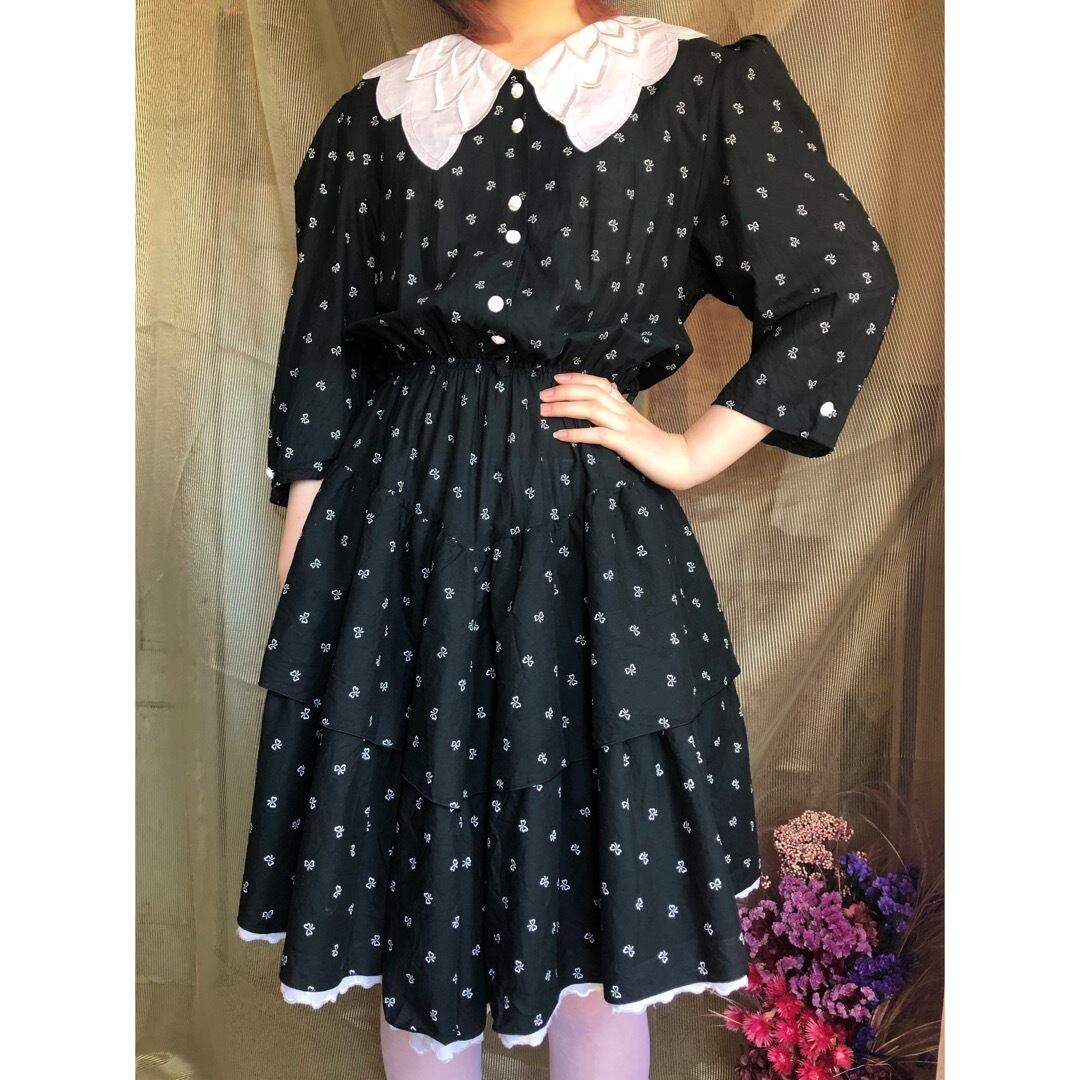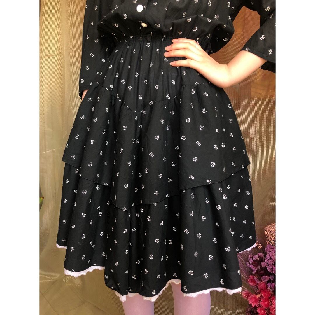 リボン柄のブラックワンピース ♫