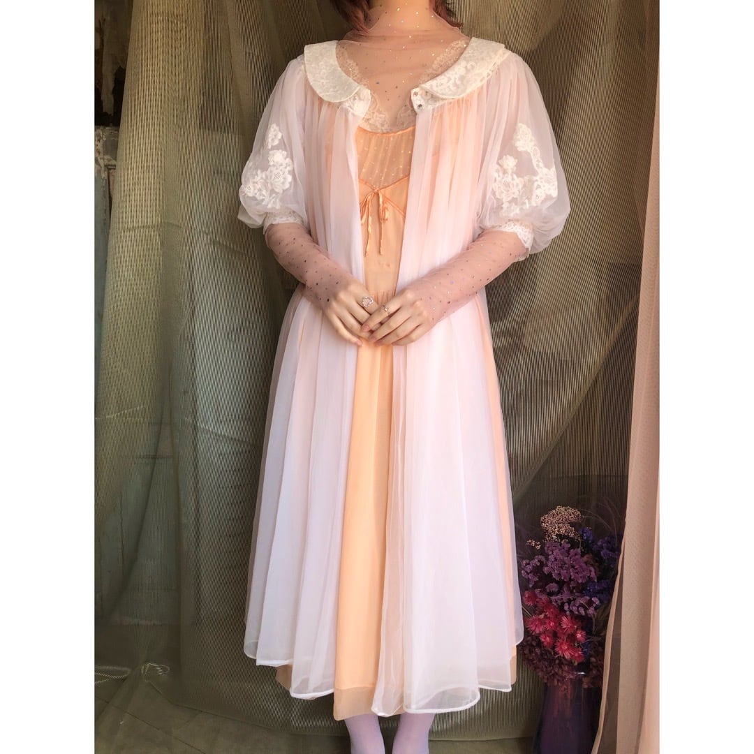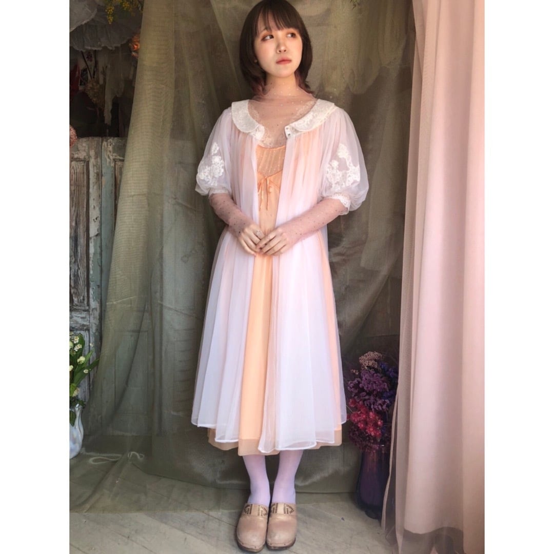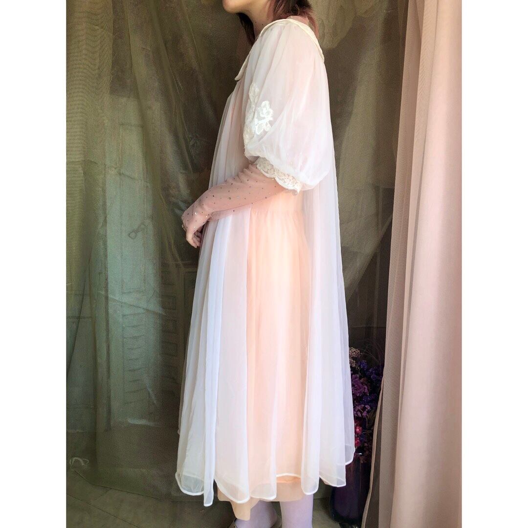 ぽわんとしたお袖にレースがあしらわれたシアーガウン。