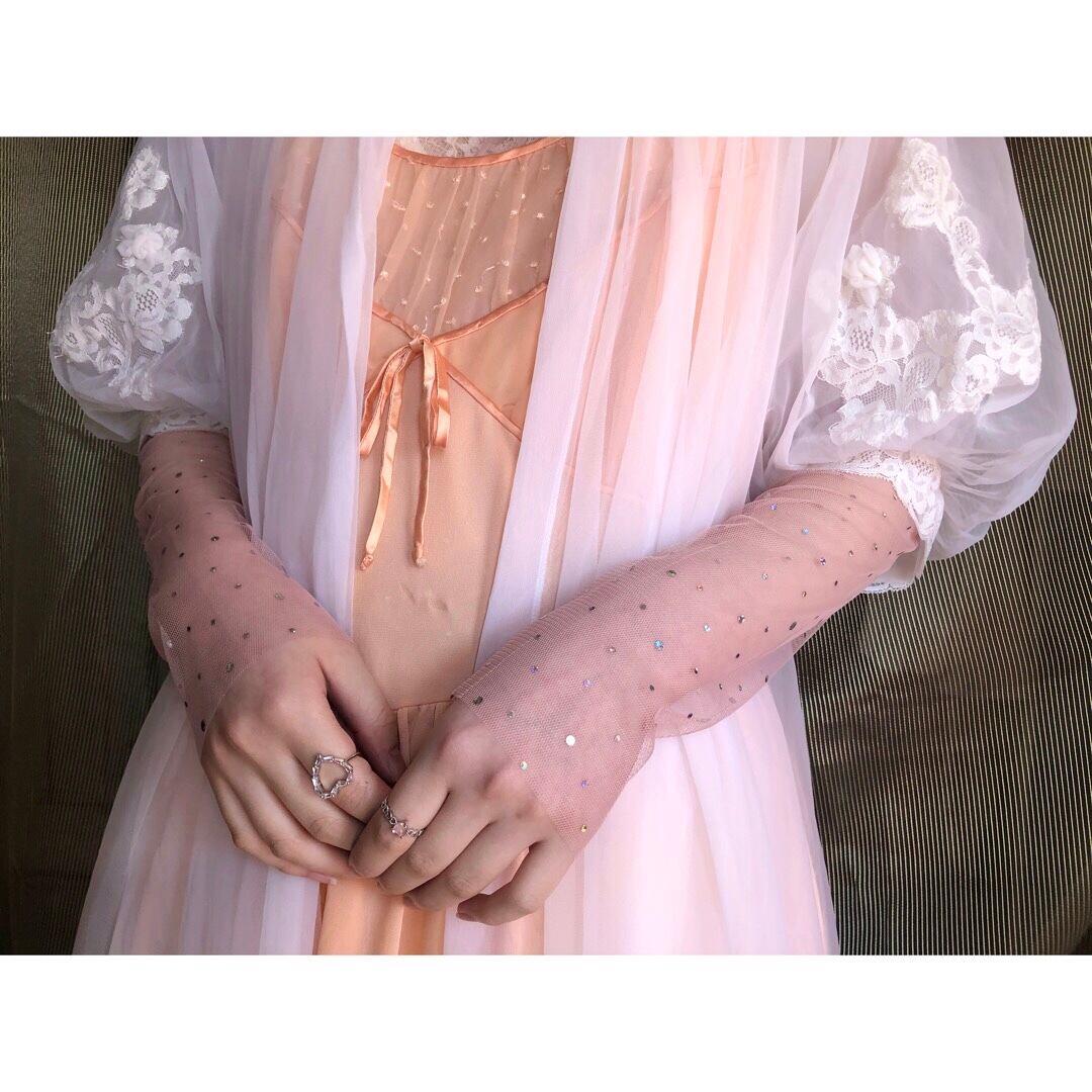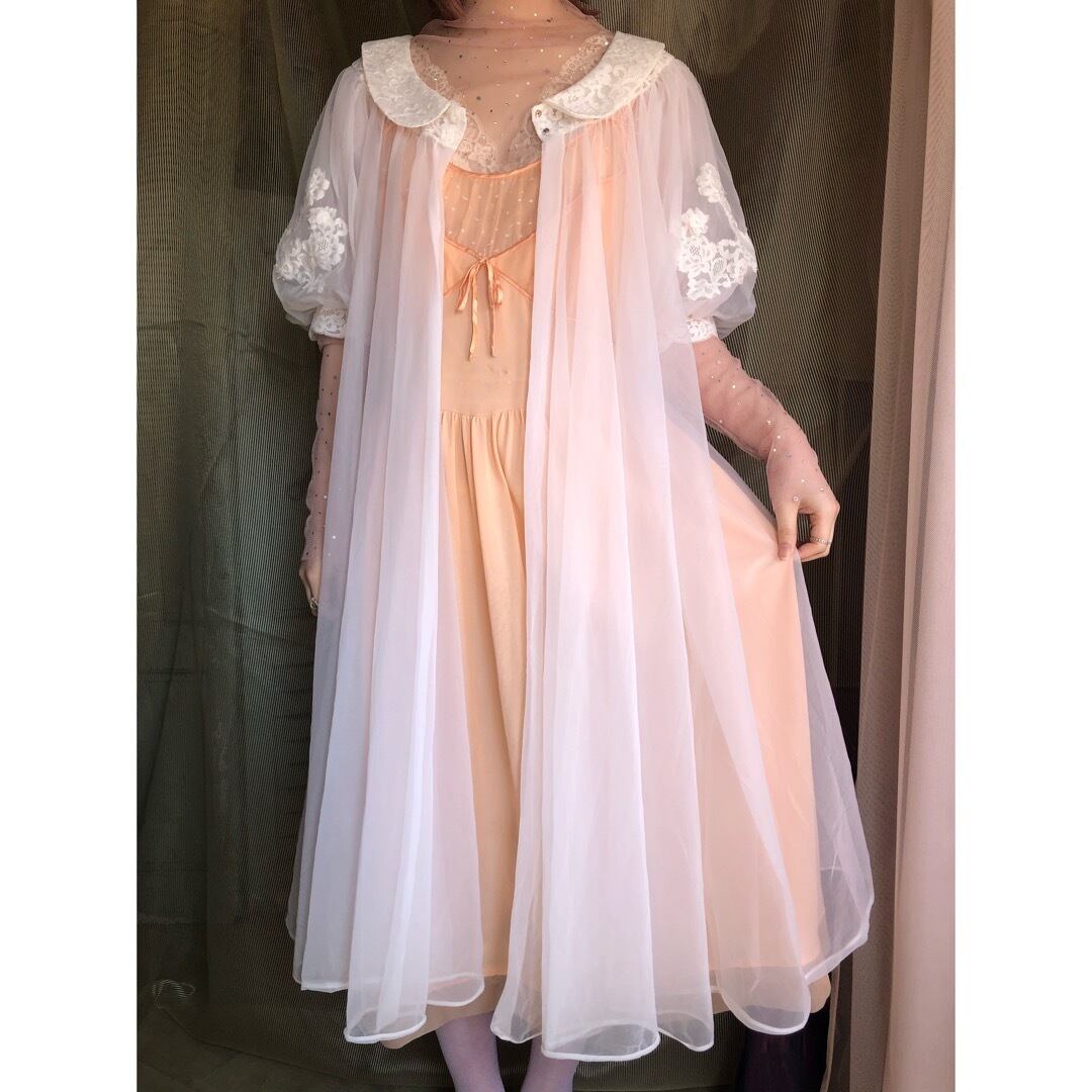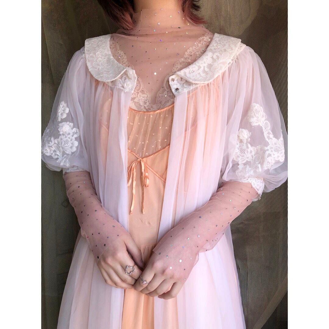 ぽわんとしたお袖にレースがあしらわれたシアーガウン。