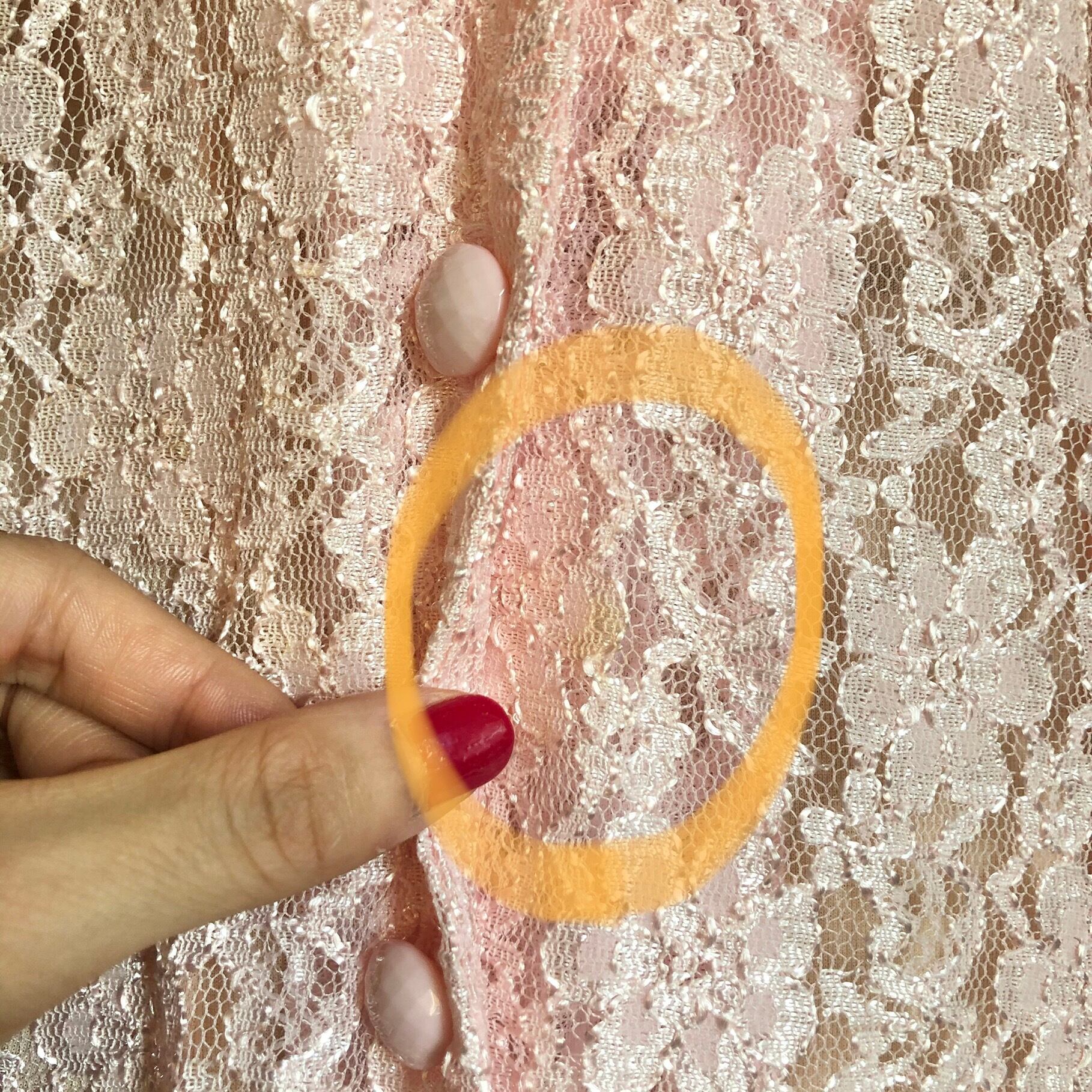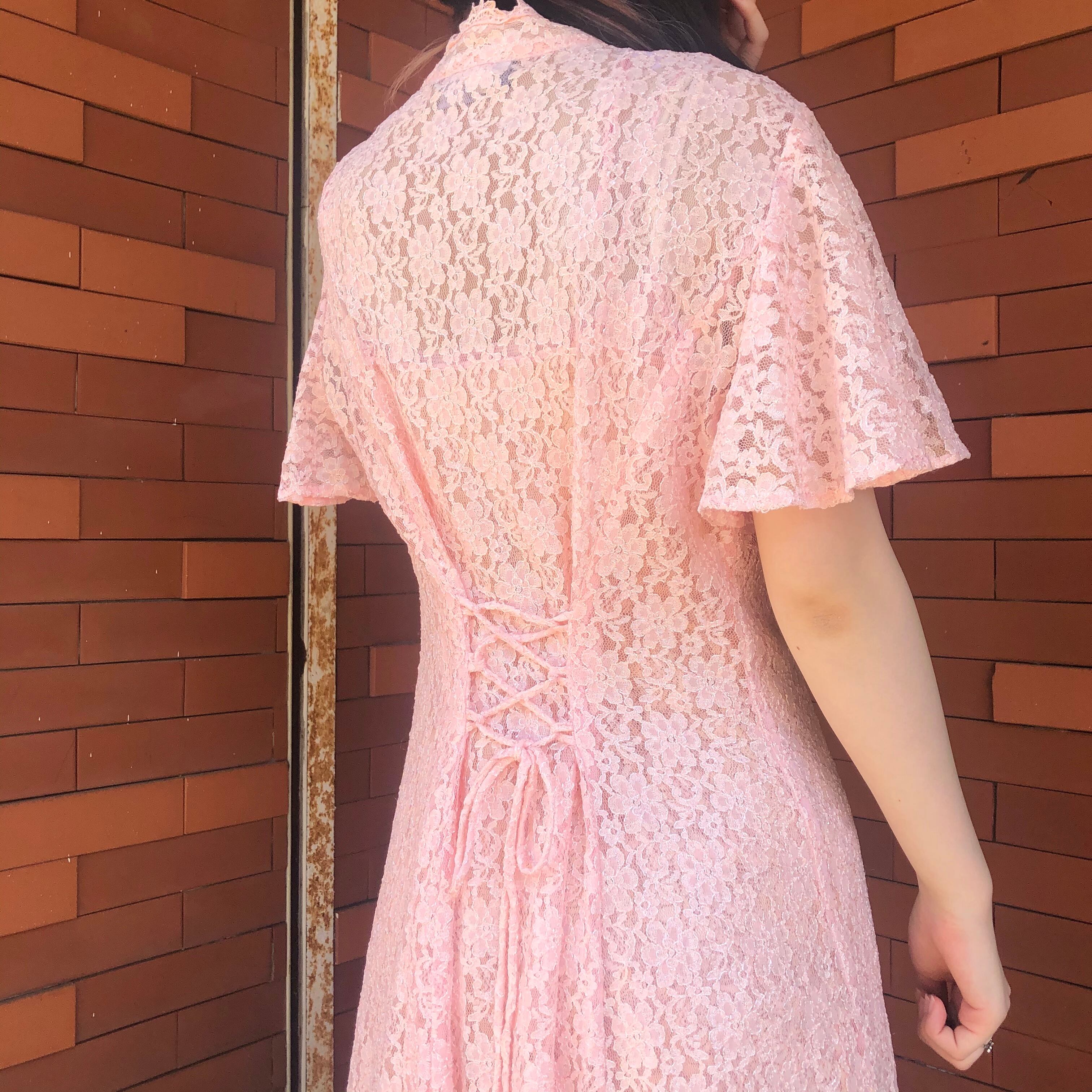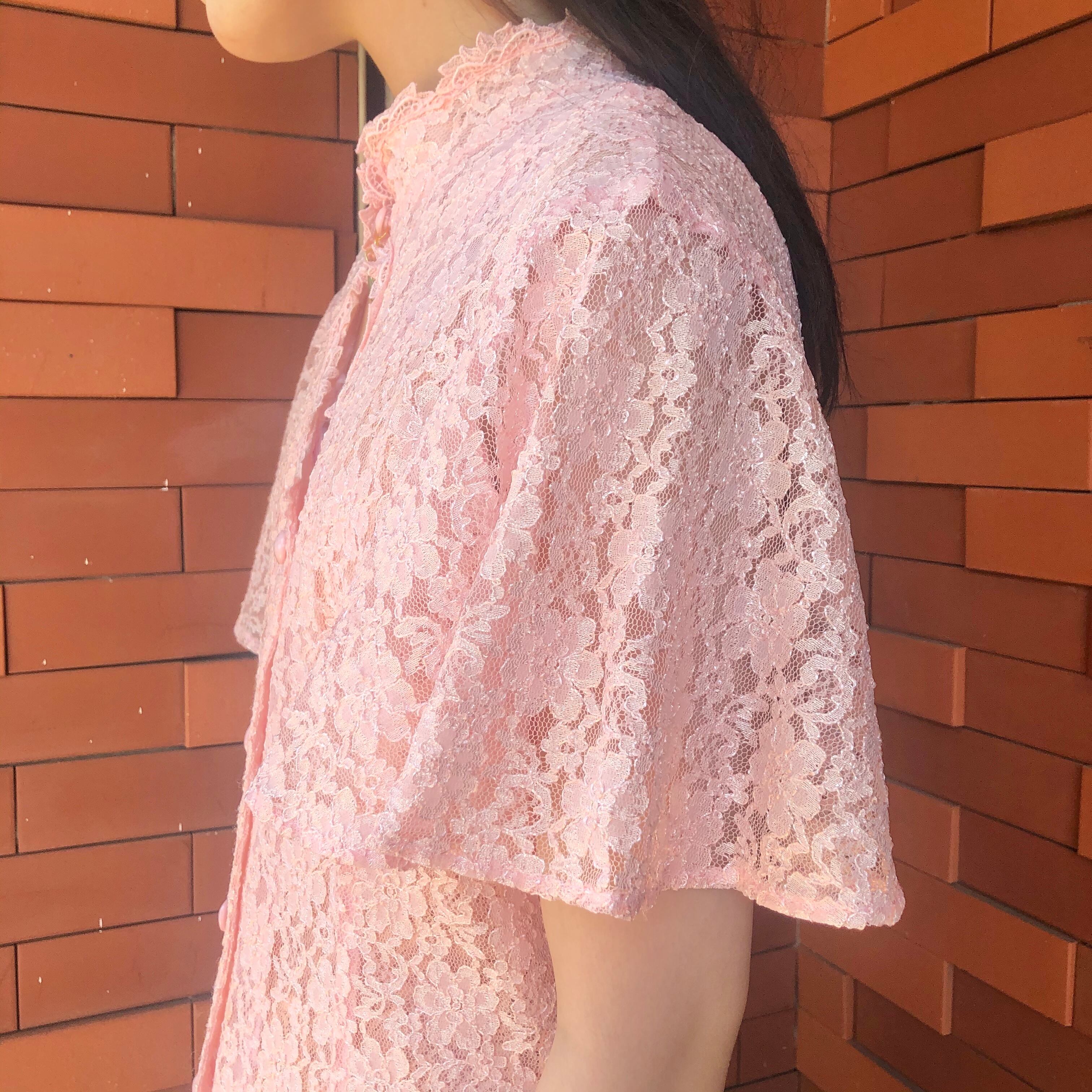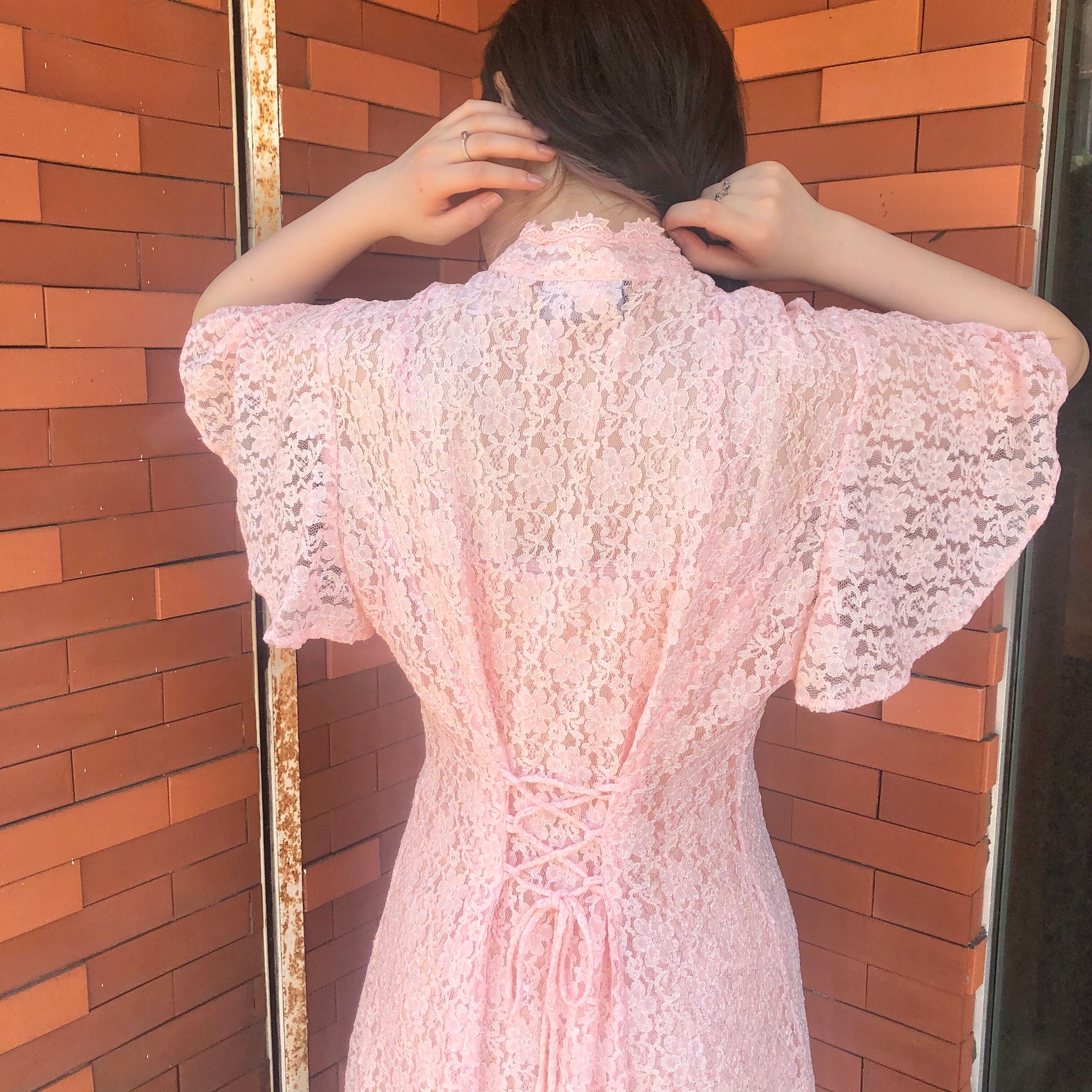 裏地がついていないので撮影ではなかにピンクのキャミソールワンピースを合わせています。