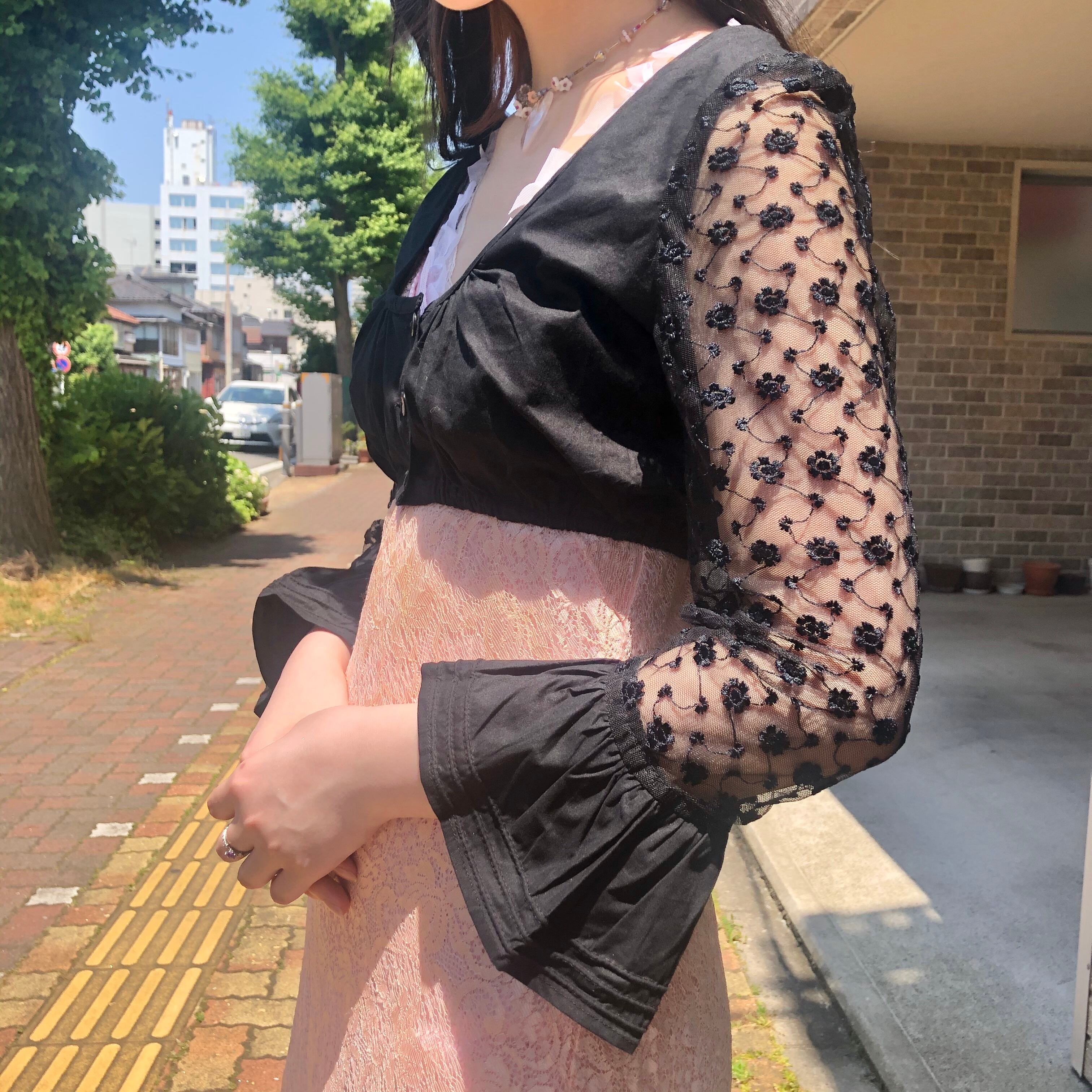 ブラックでお袖が長袖レースなところが珍しいお品です。