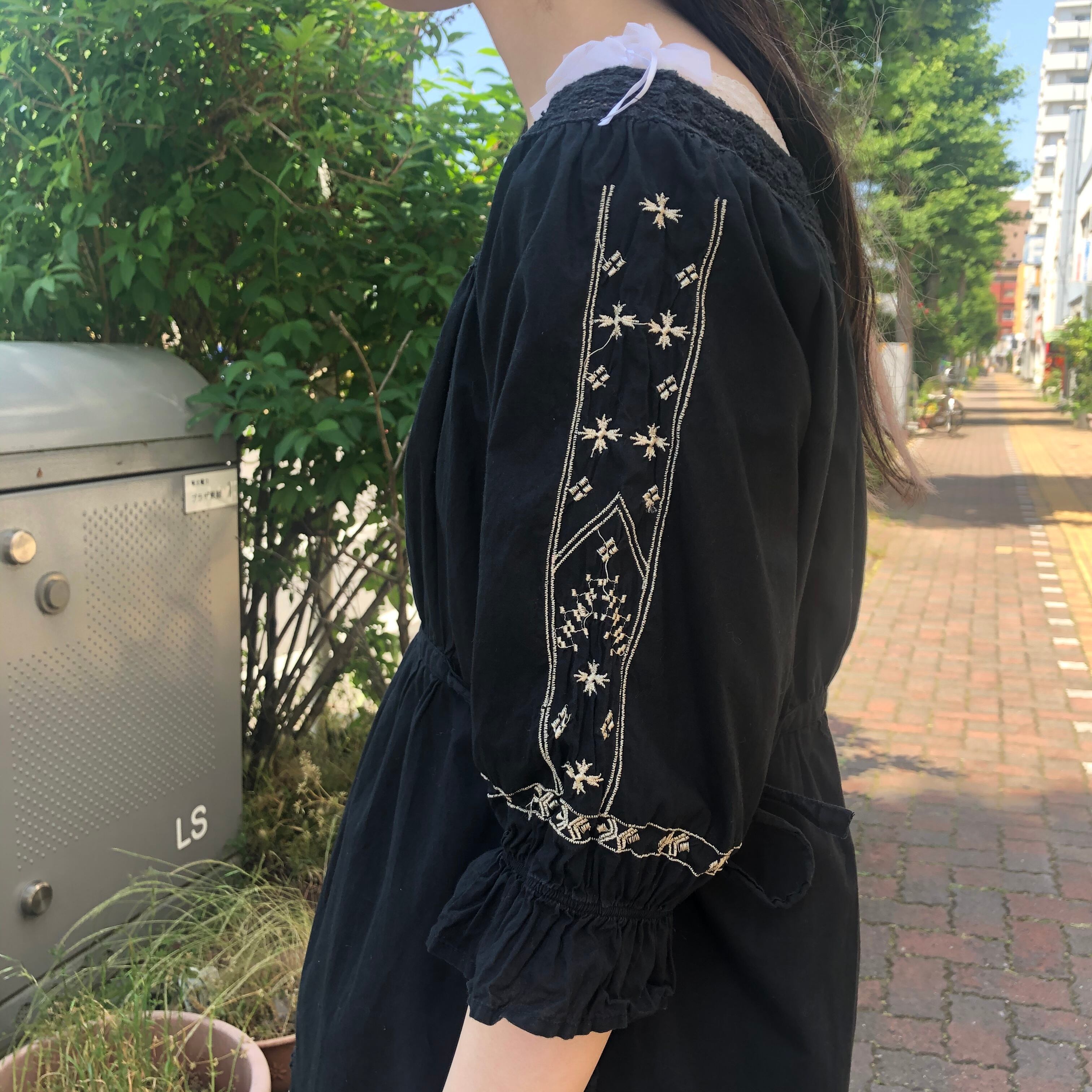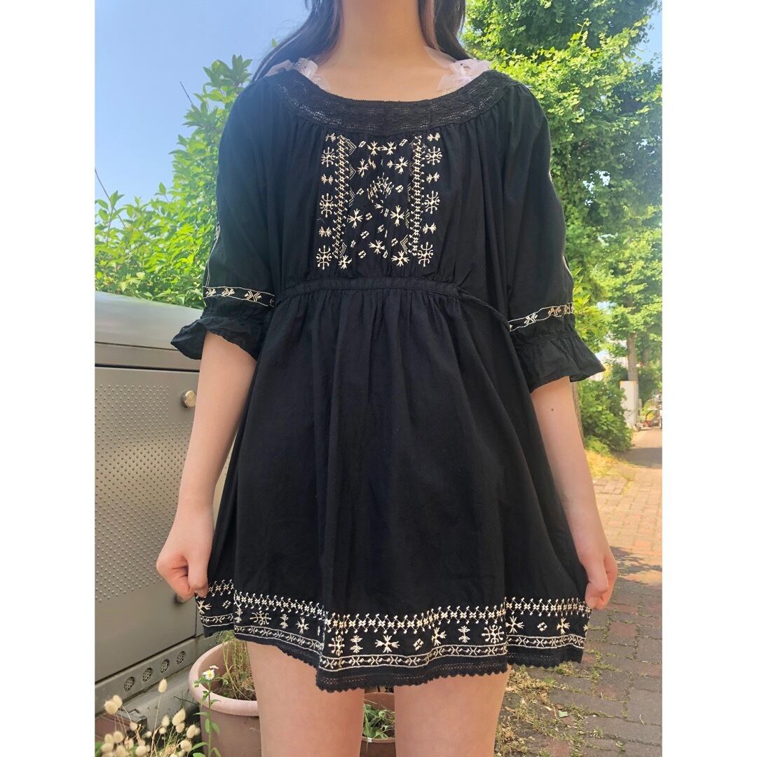 黒の刺繍チュニック。
