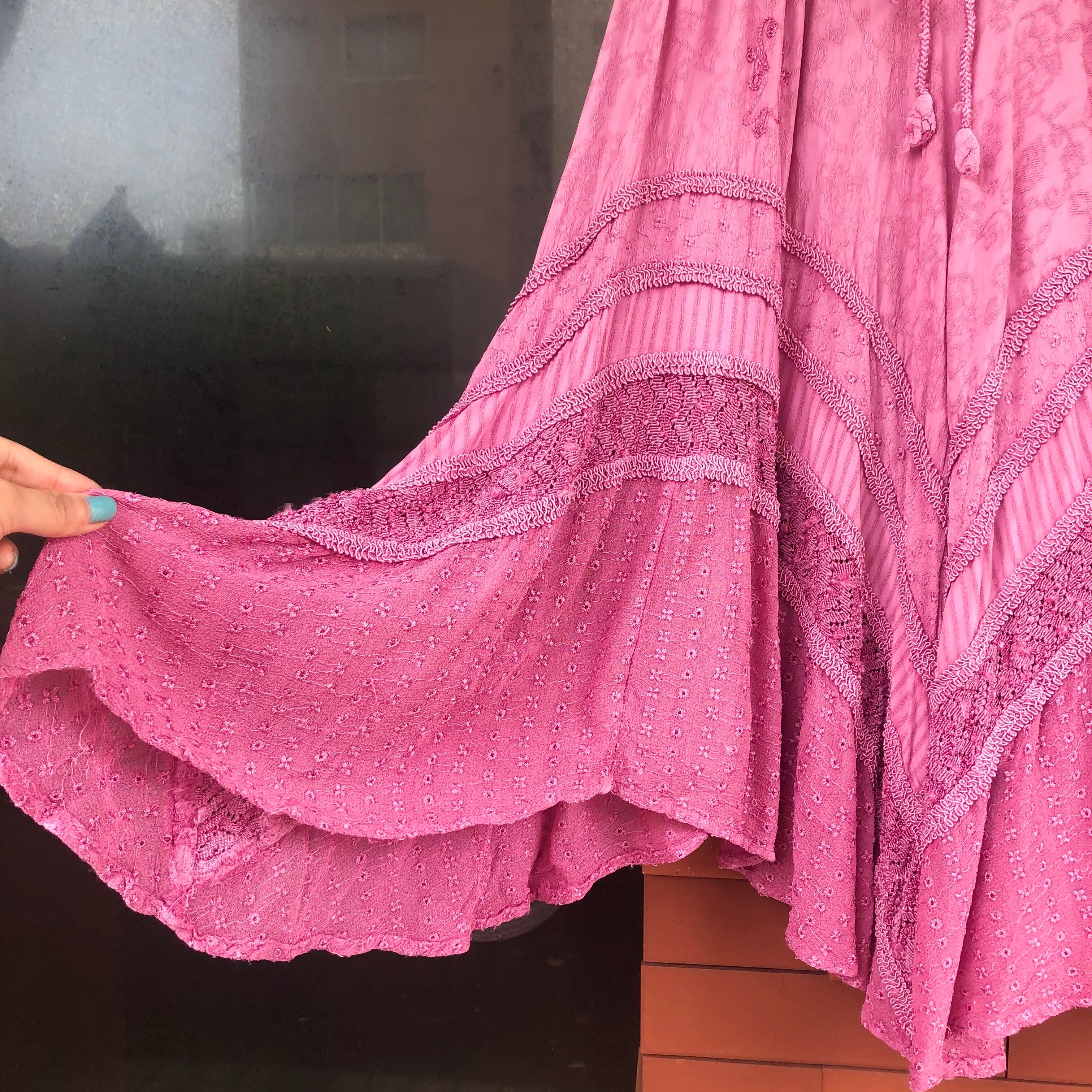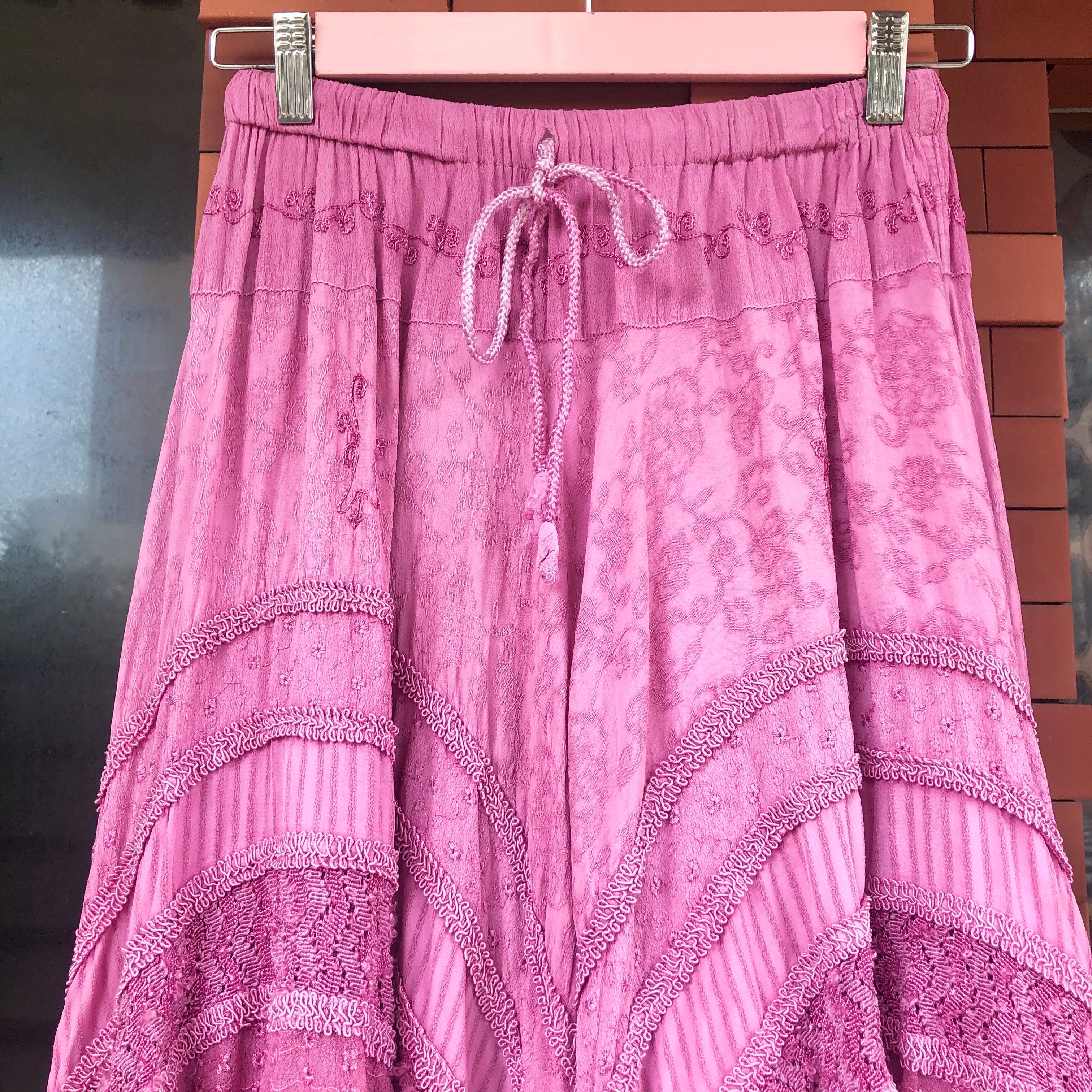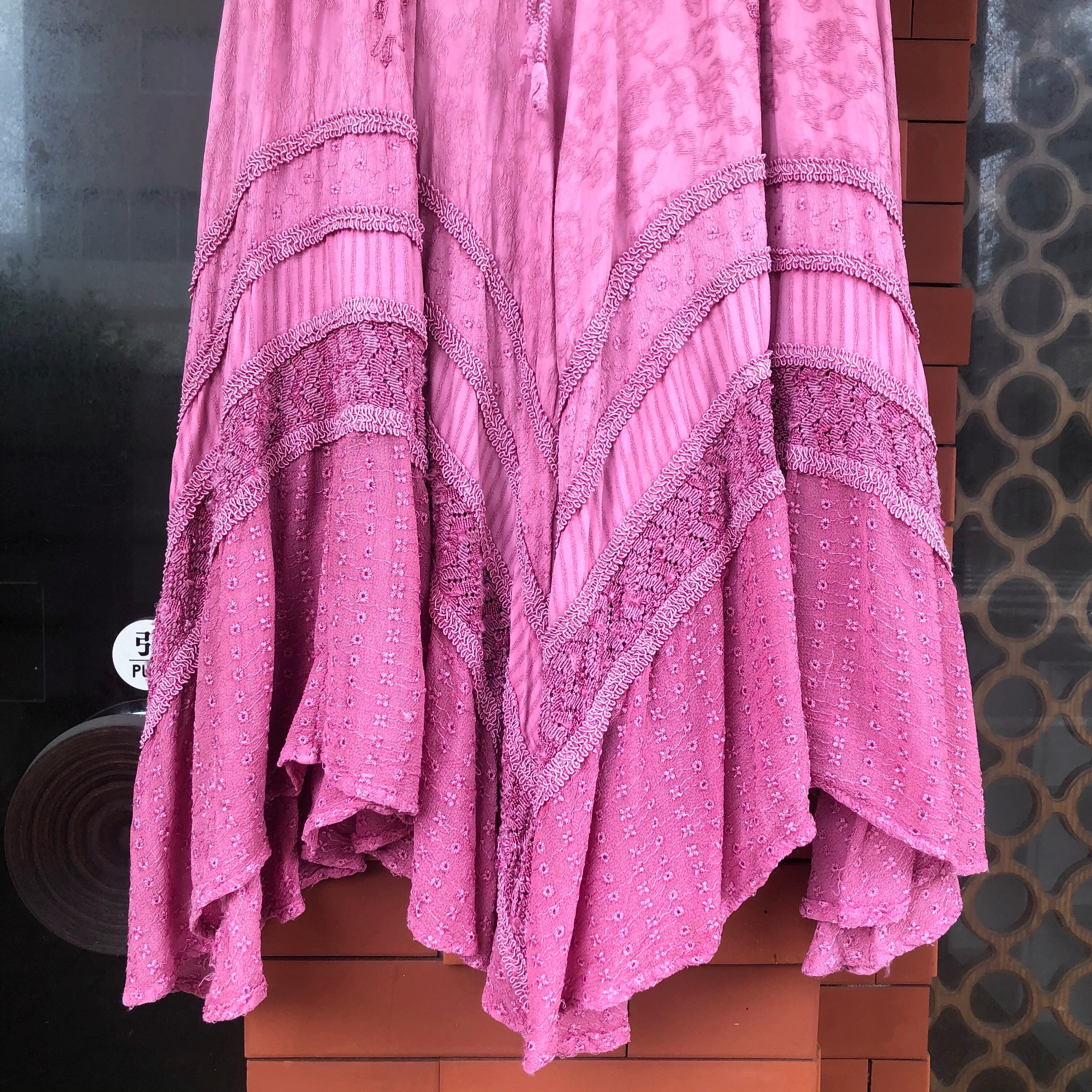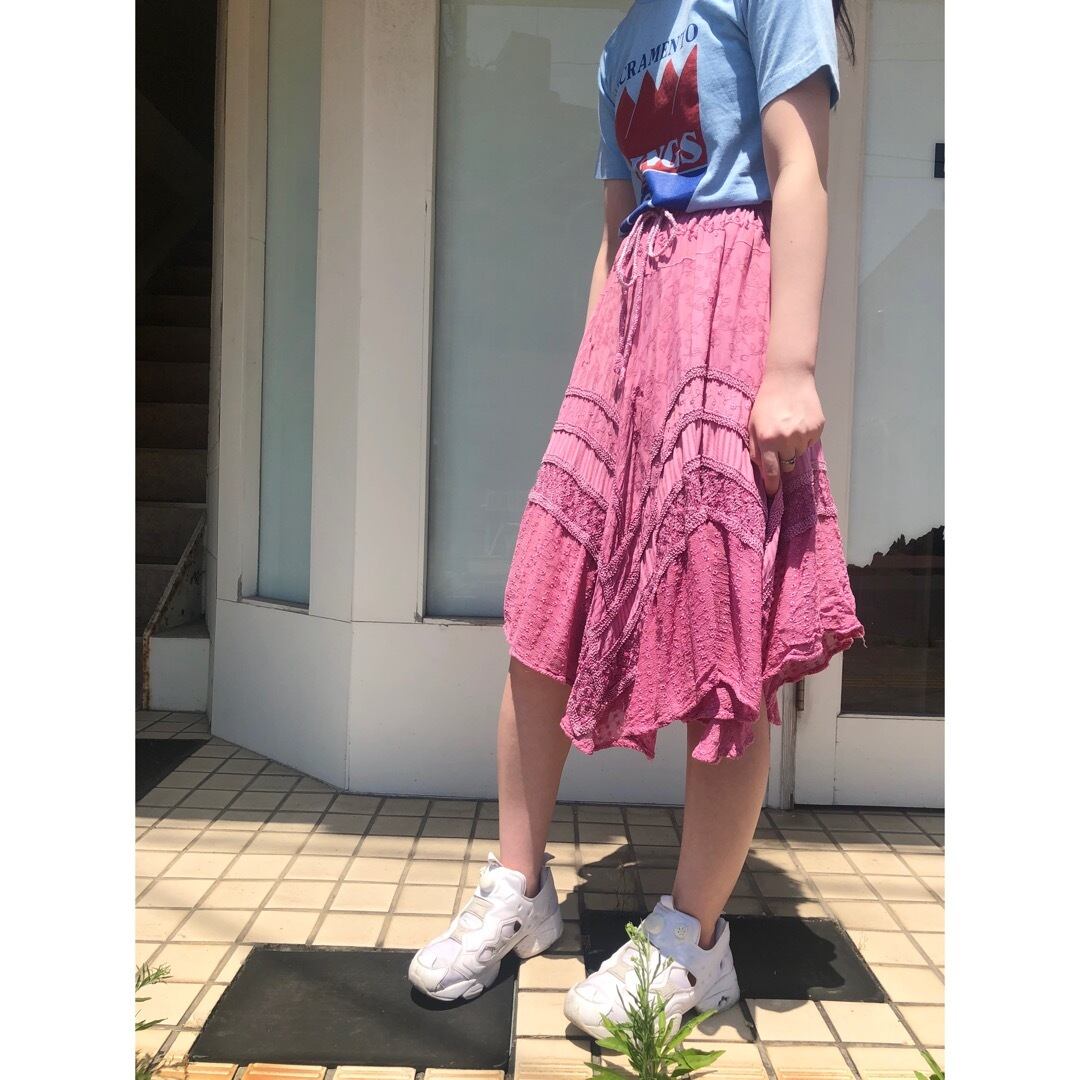 丈の感じや濃いめピンクだったりが珍しいインディアンレーヨンスカートです。