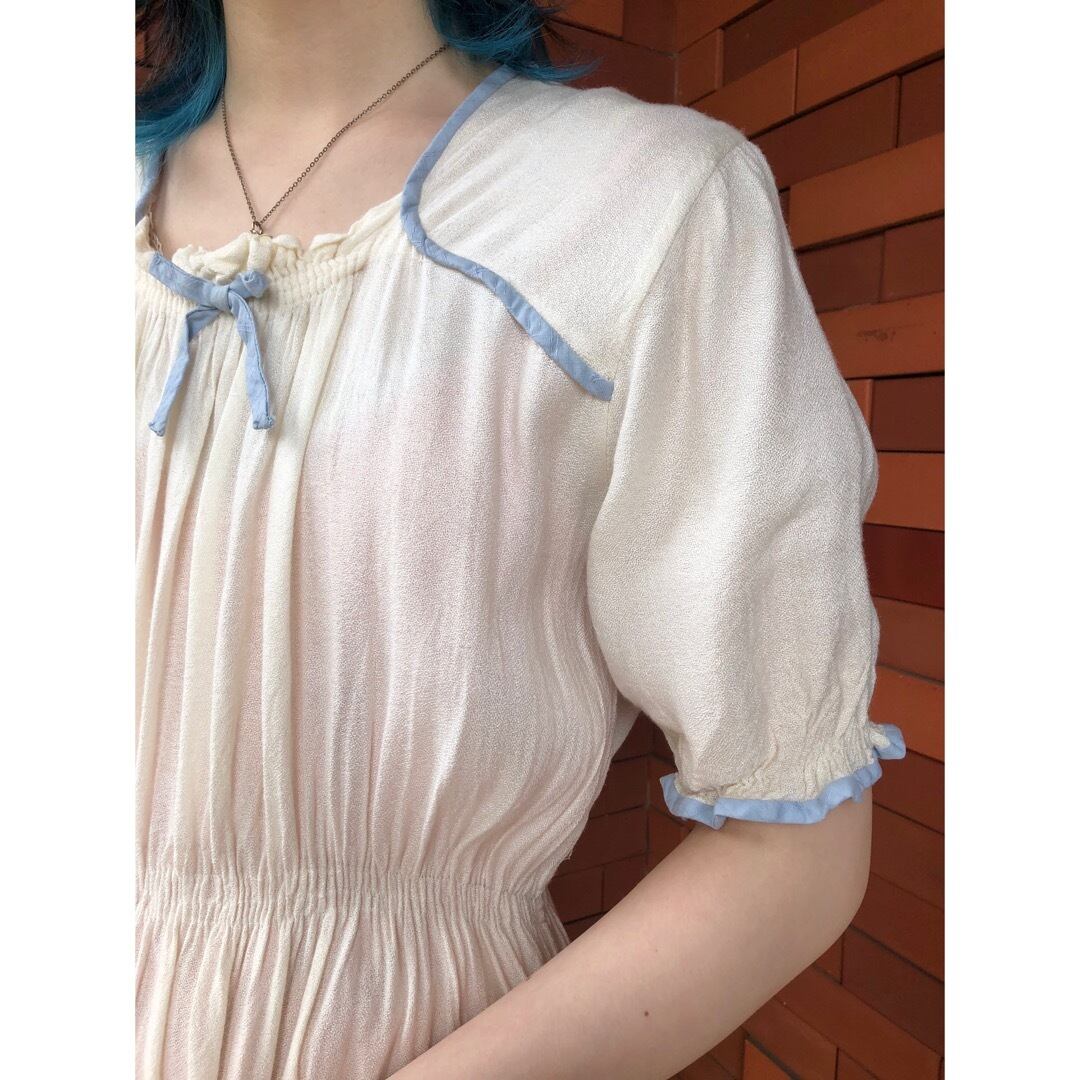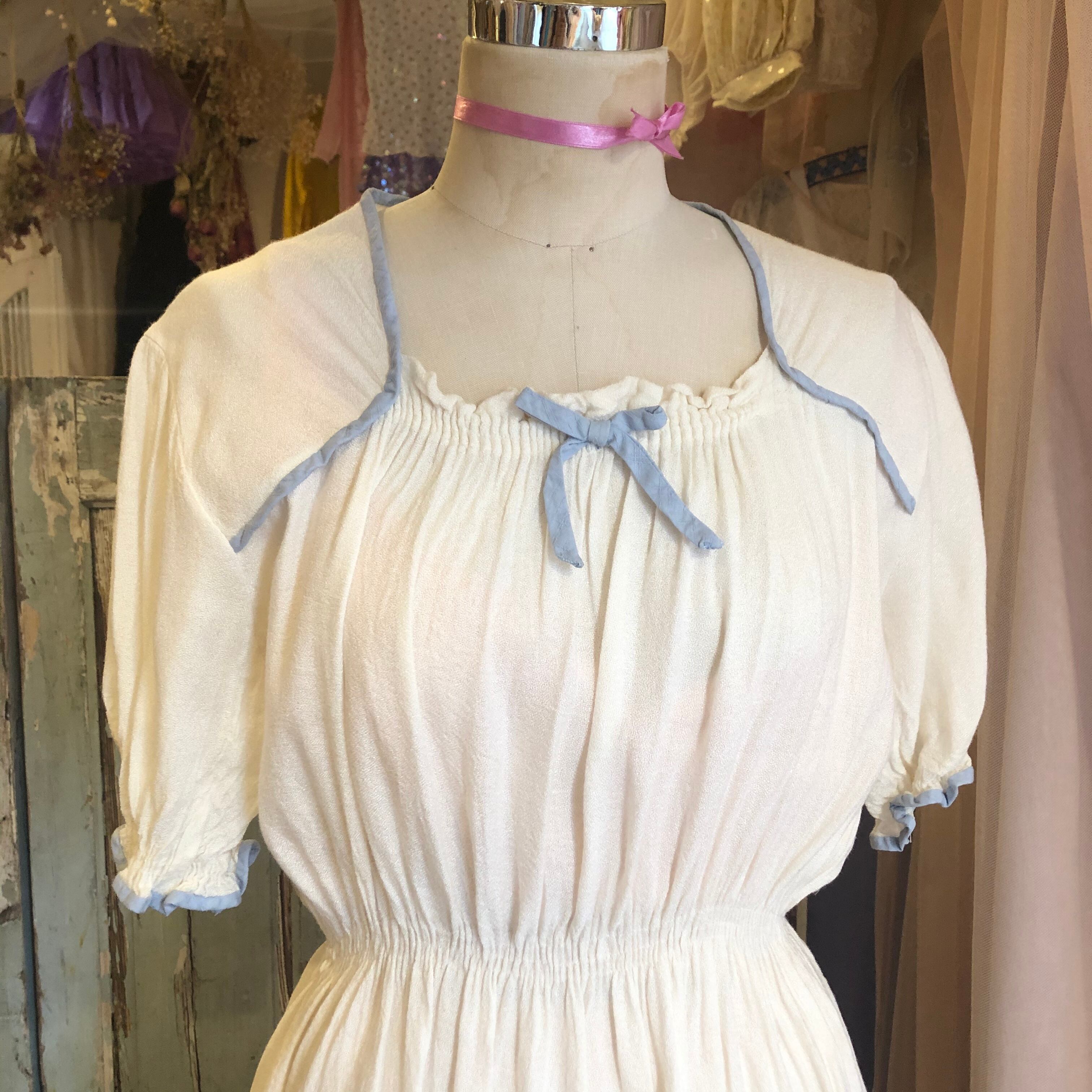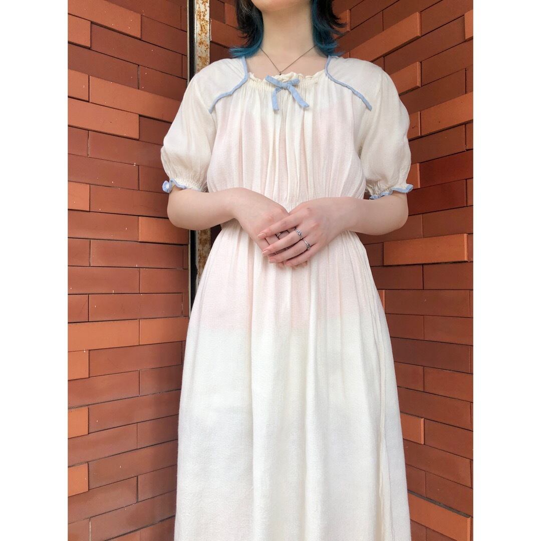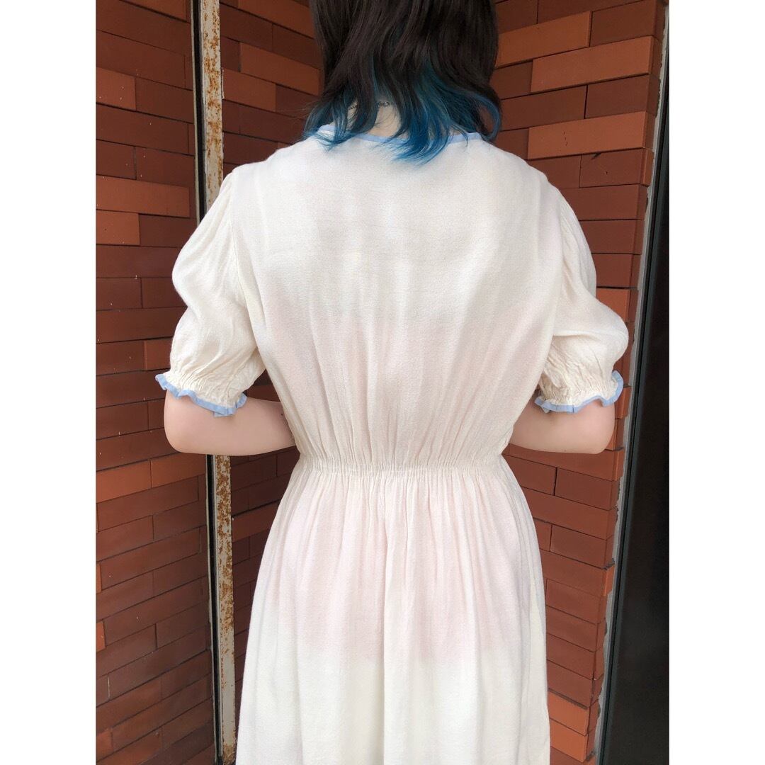 豪華な装飾こそないですが、シンプルゆえにくすんだ水色パイピングや胸元リボンの魅力が際立ちます。