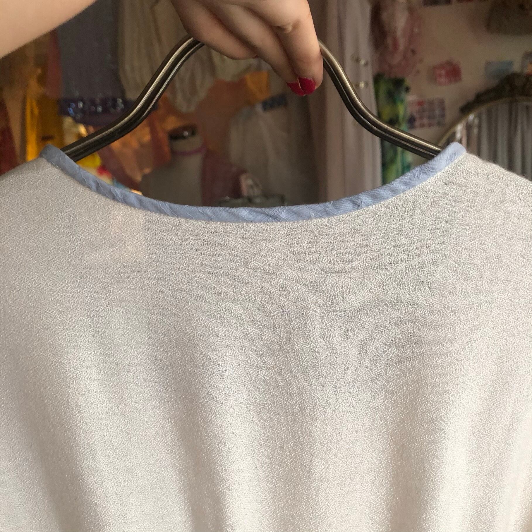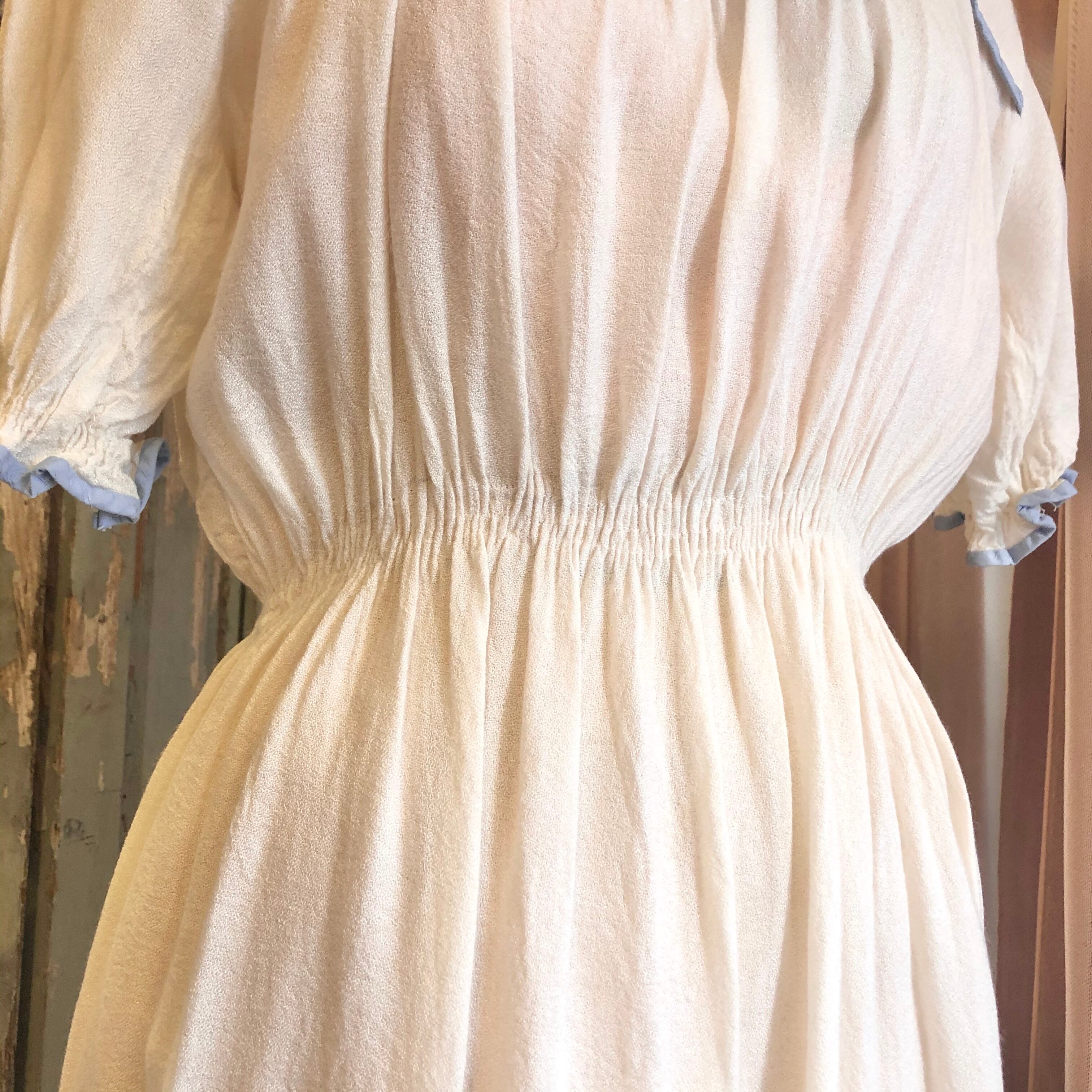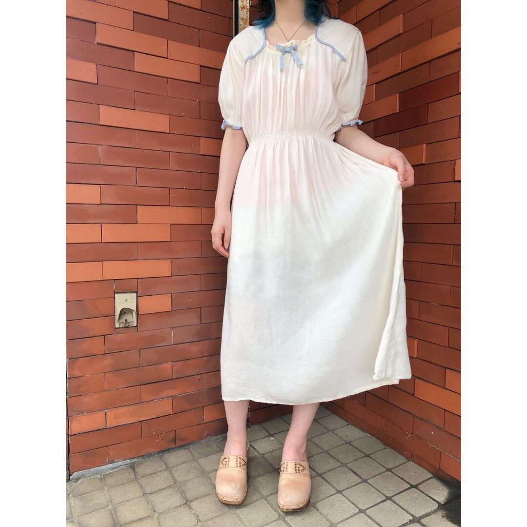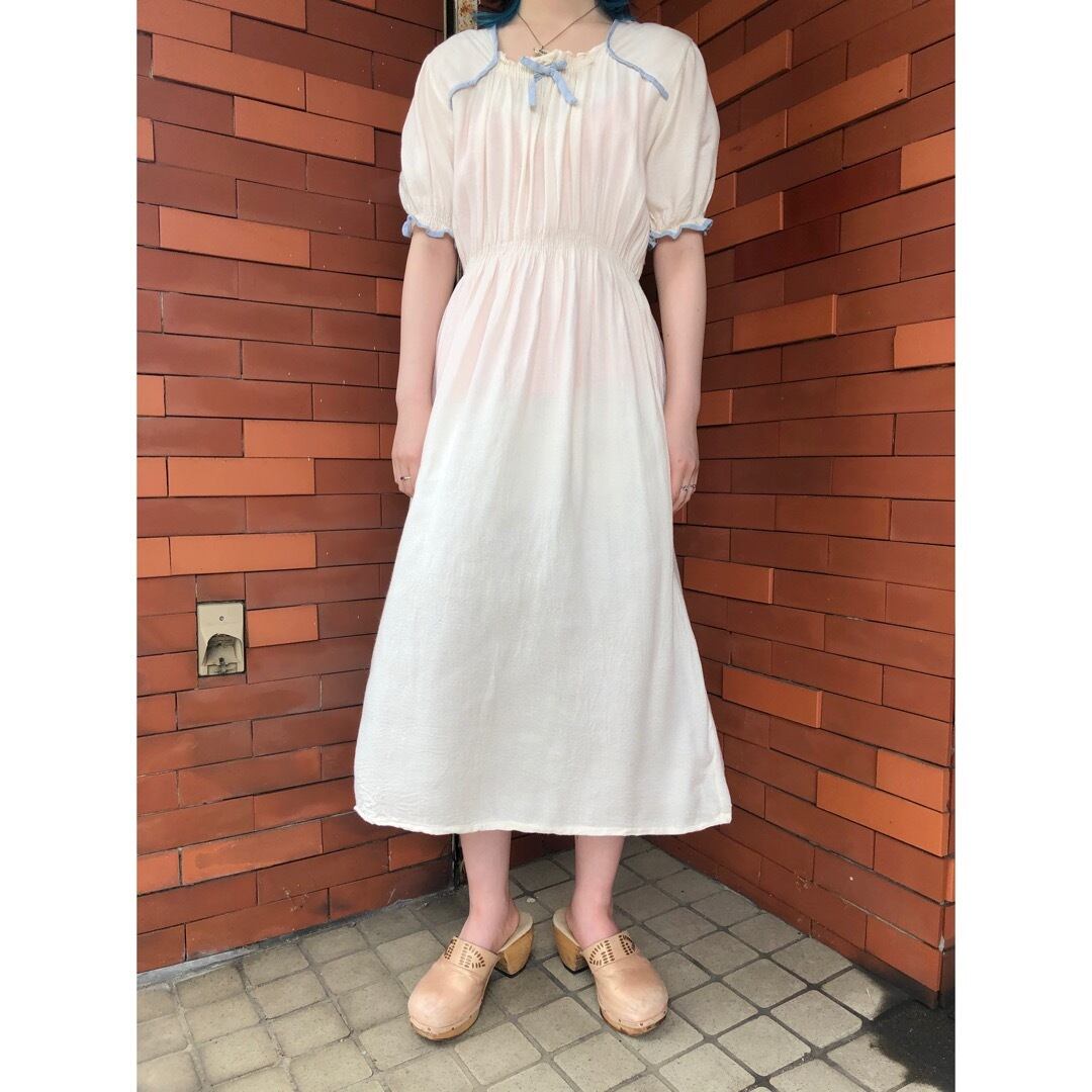 豪華な装飾こそないですが、シンプルゆえにくすんだ水色パイピングや胸元リボンの魅力が際立ちます。