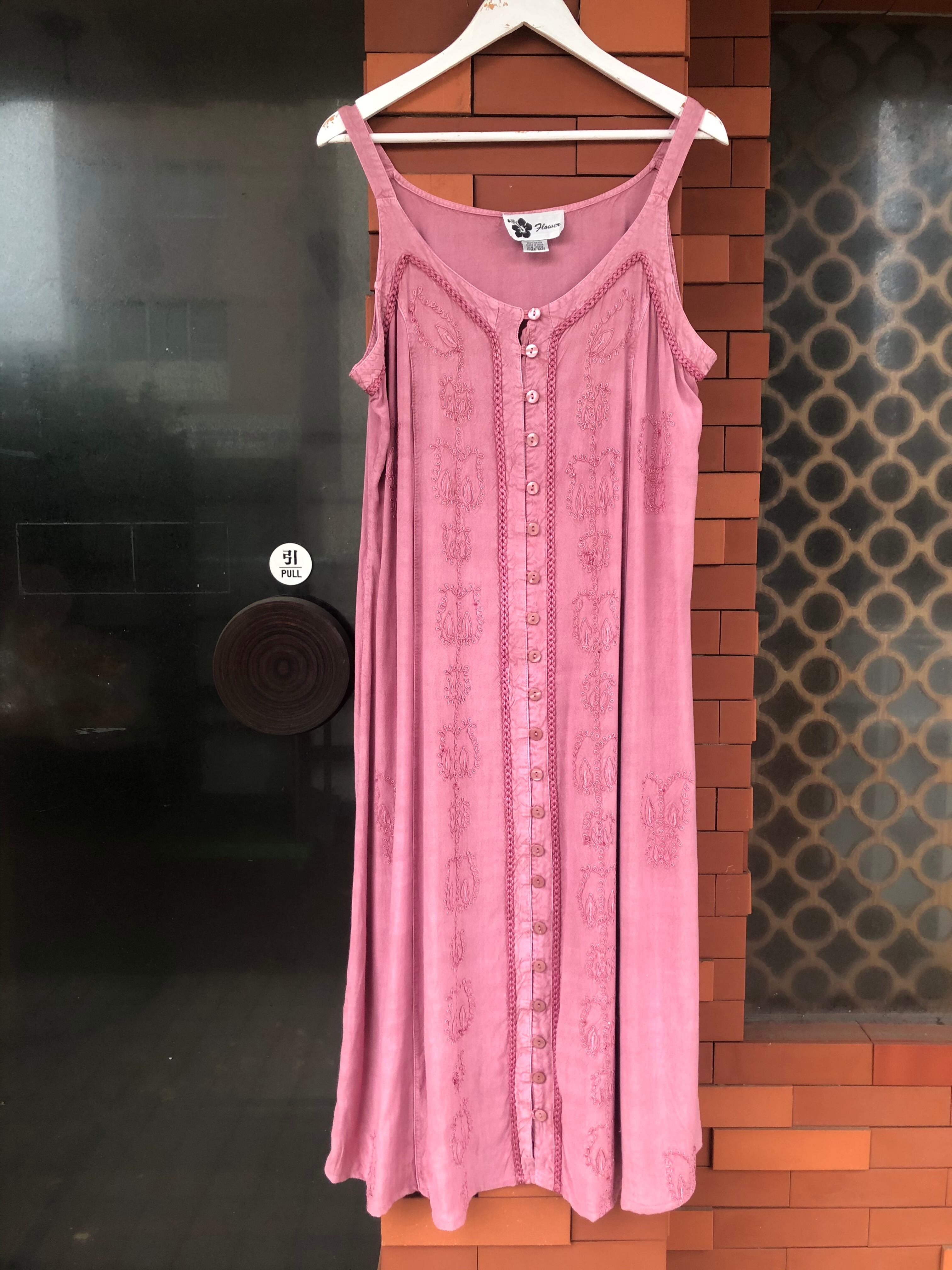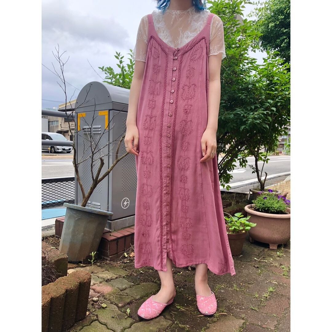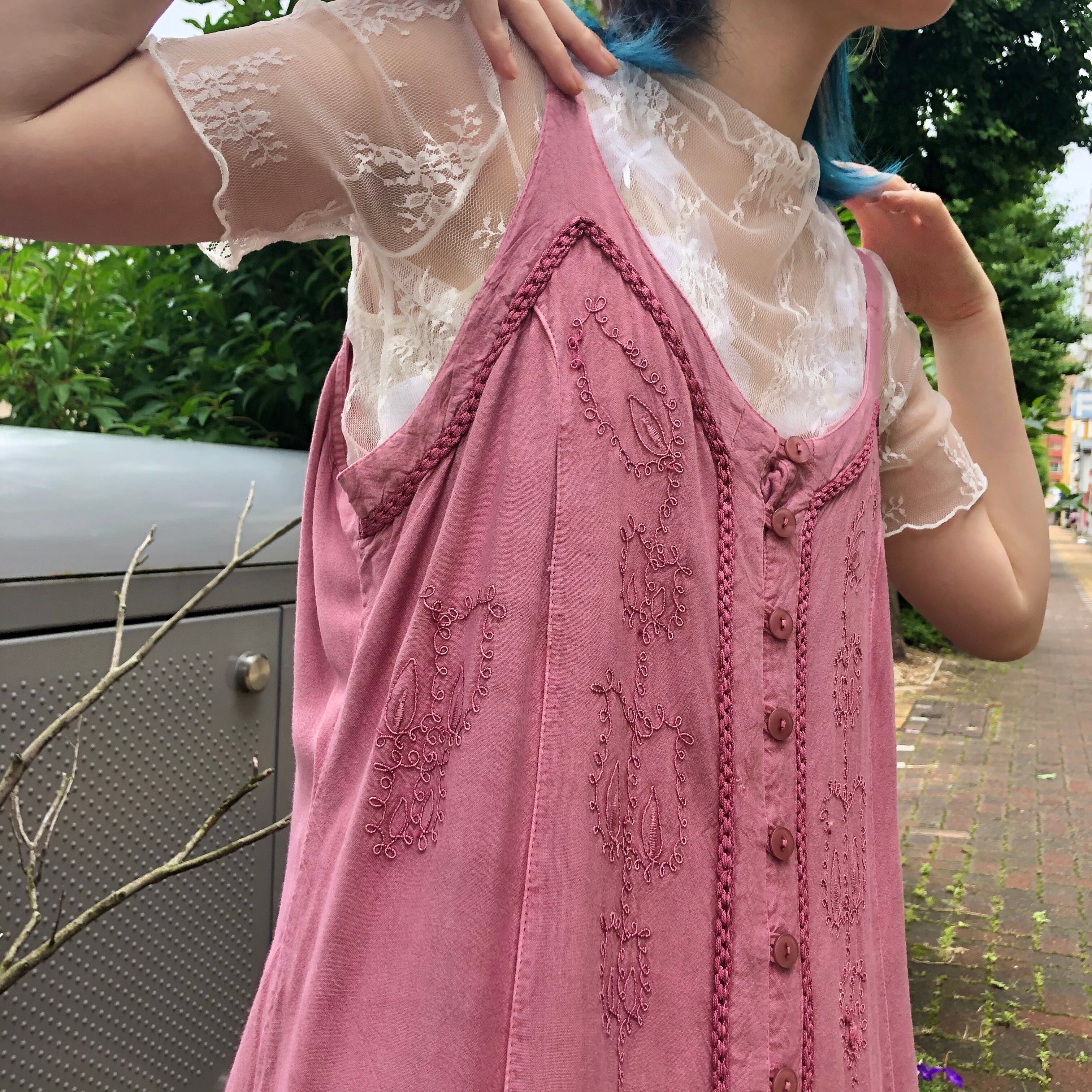 前身頃に縦に入った刺繍とそれを囲む三つ編みのようなパイピング。