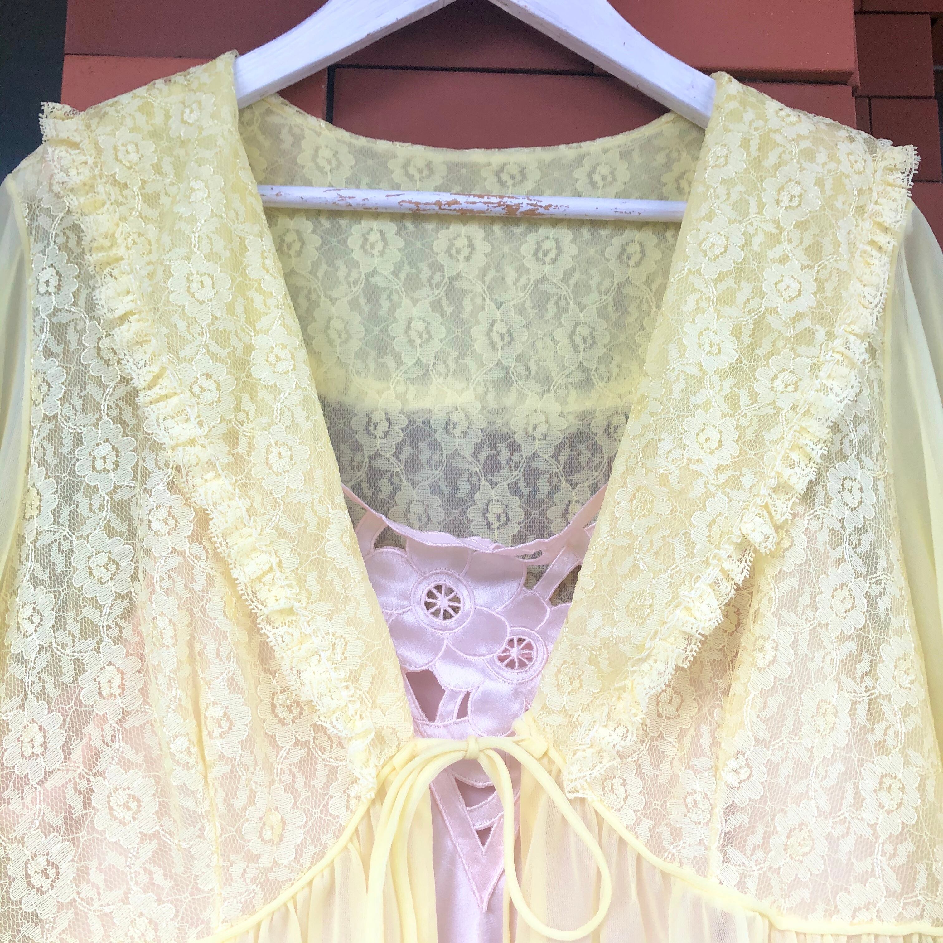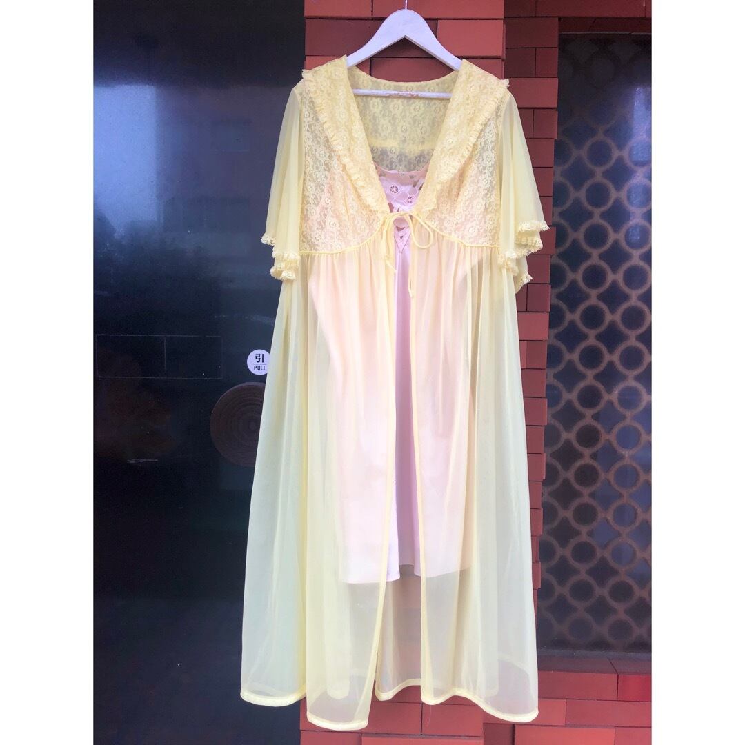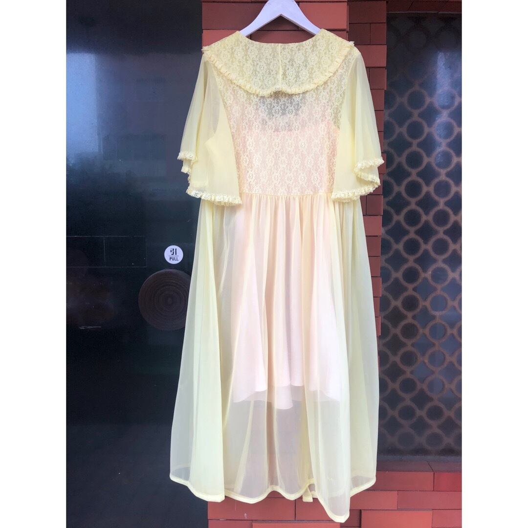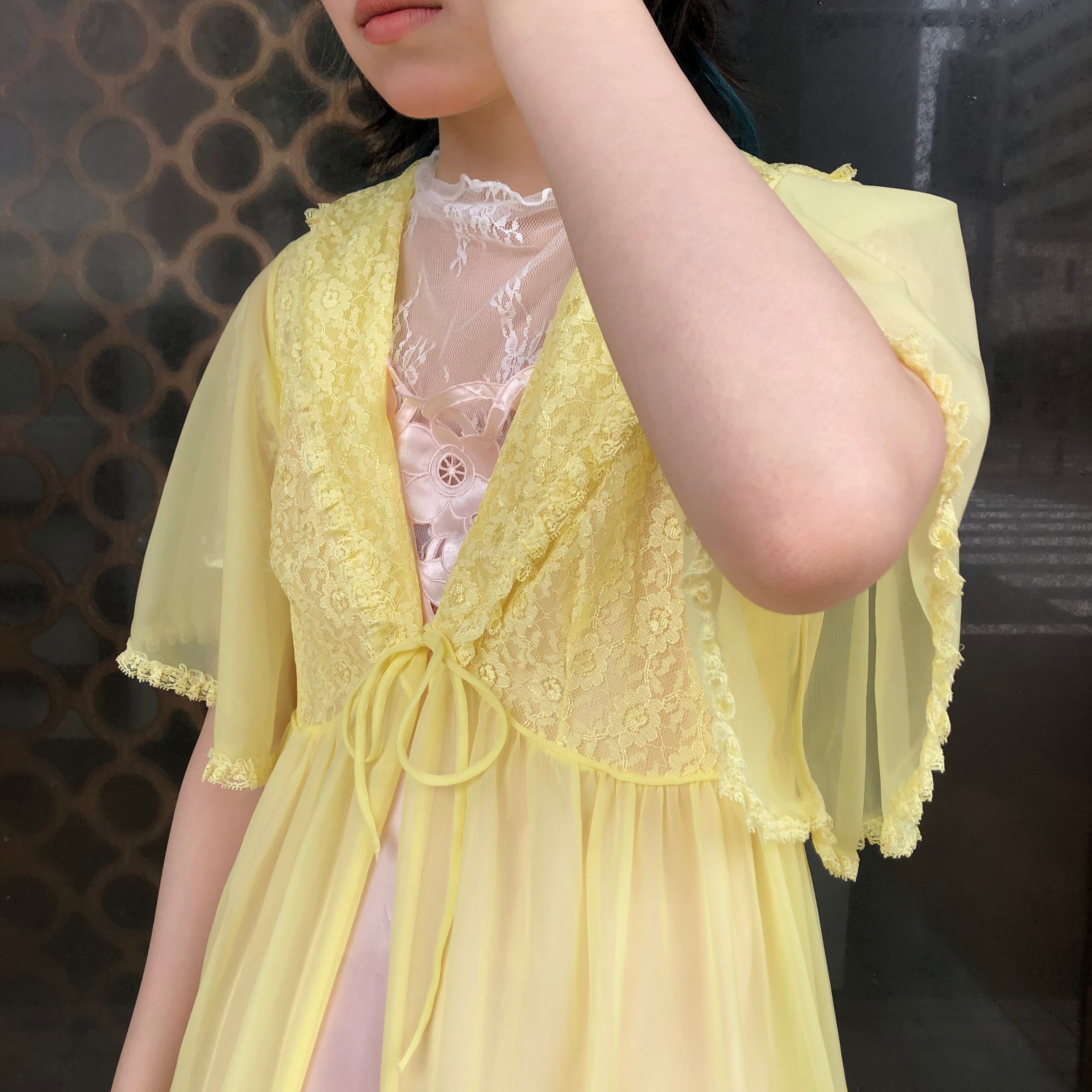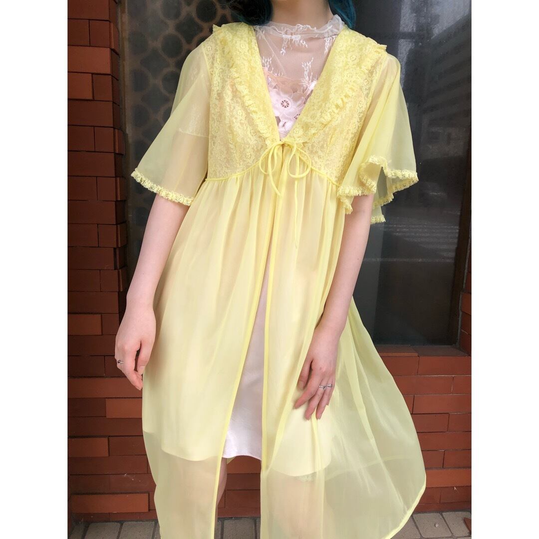 晴れた日には映えそうな爽やかなレモンイエローのシアーガウンです。