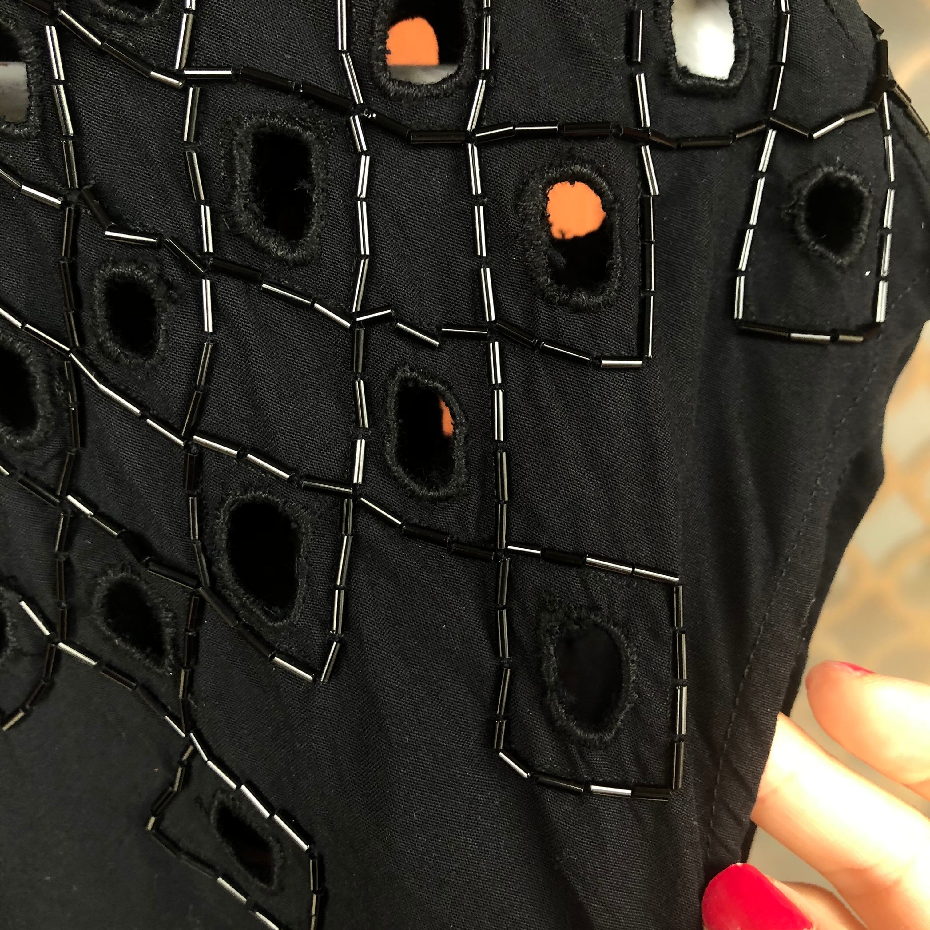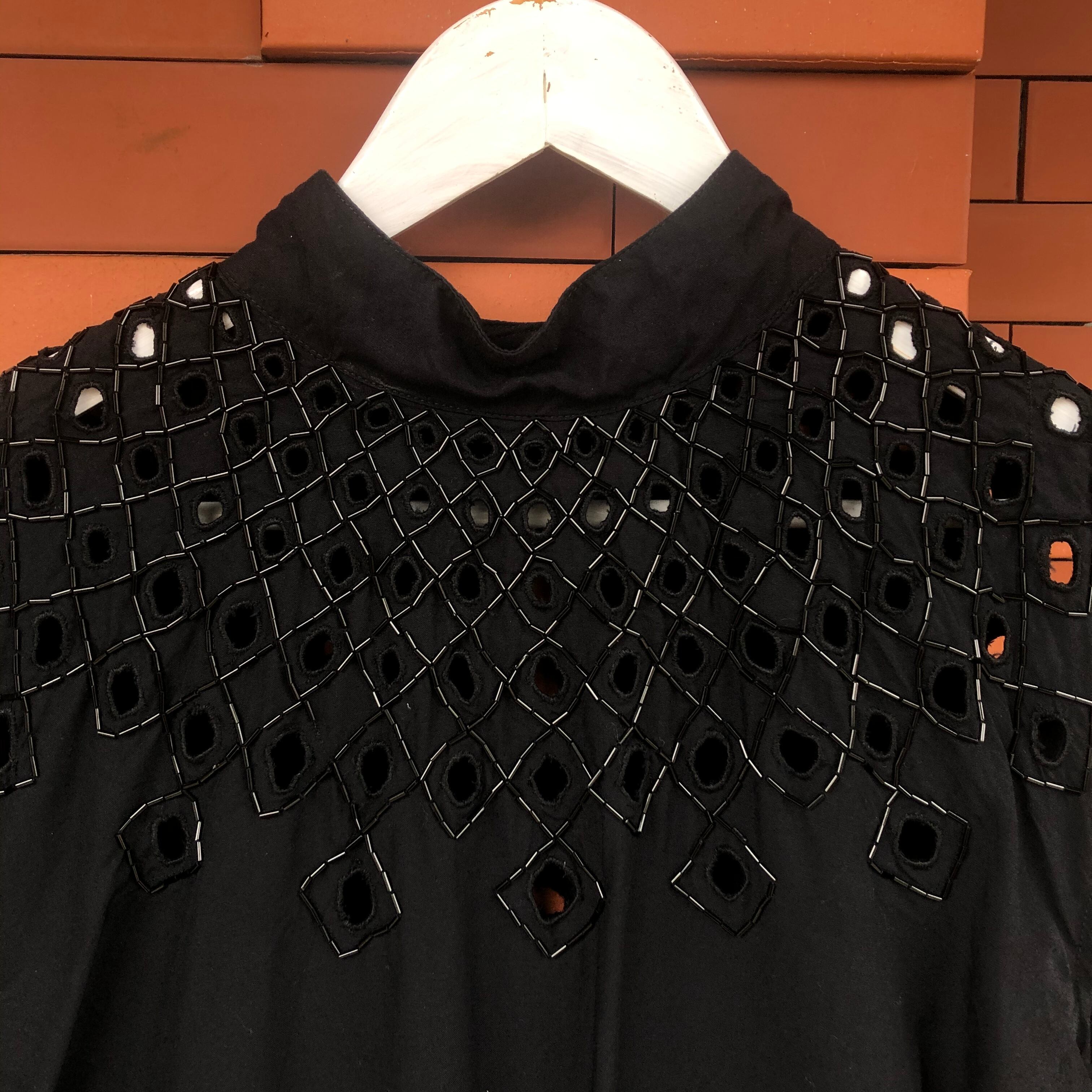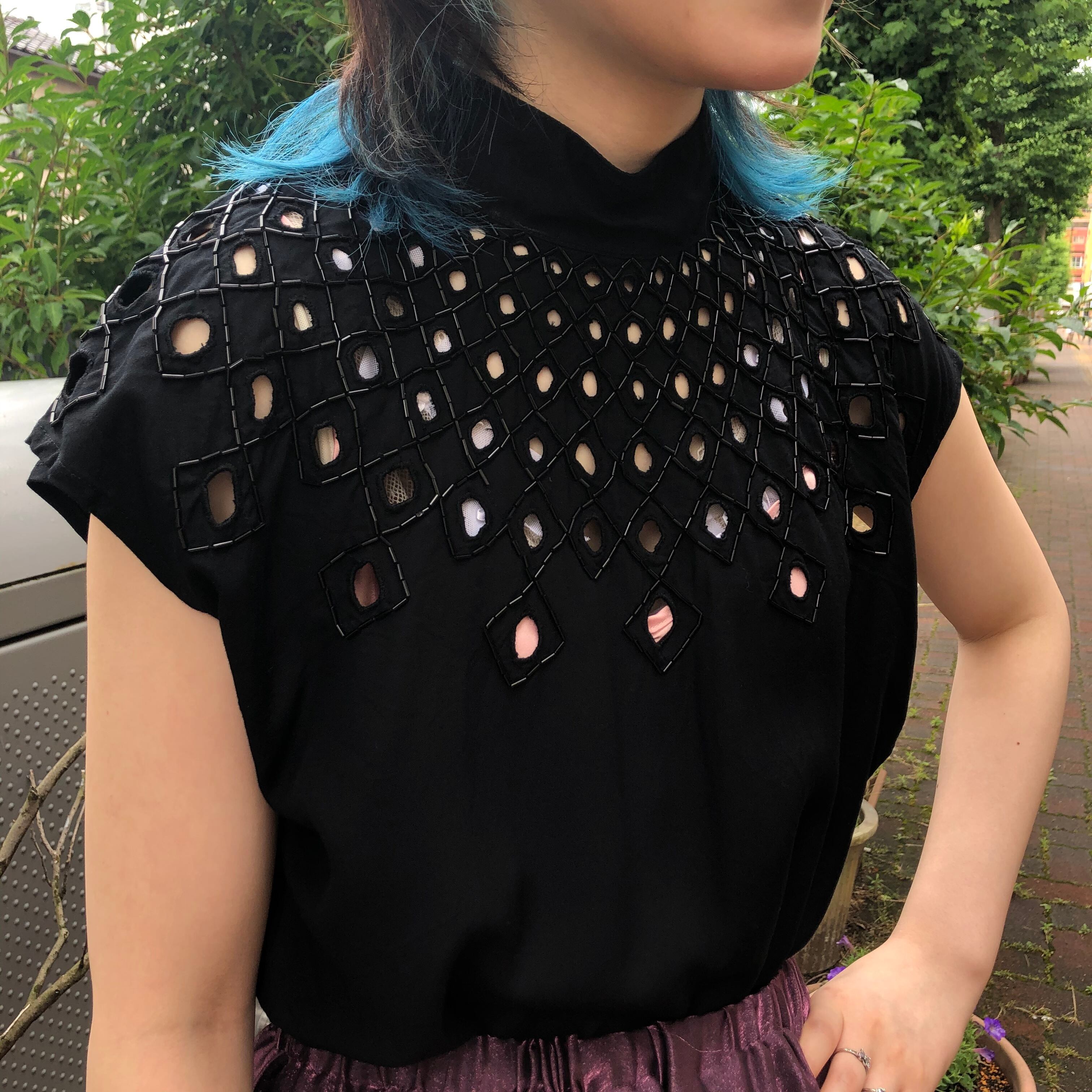 くりぬかれた穴を縁取るようにすべての穴にビーズ装飾が施されています。