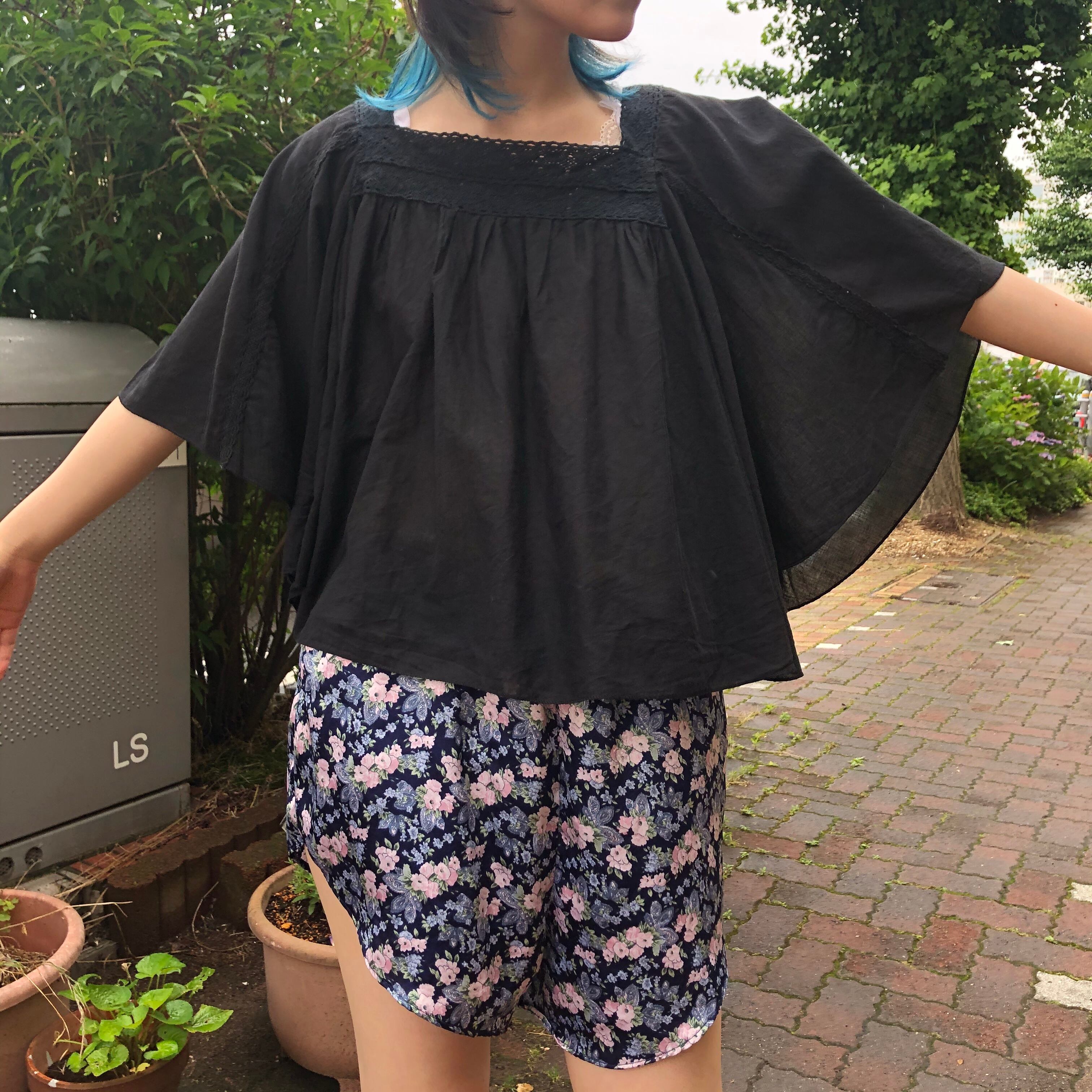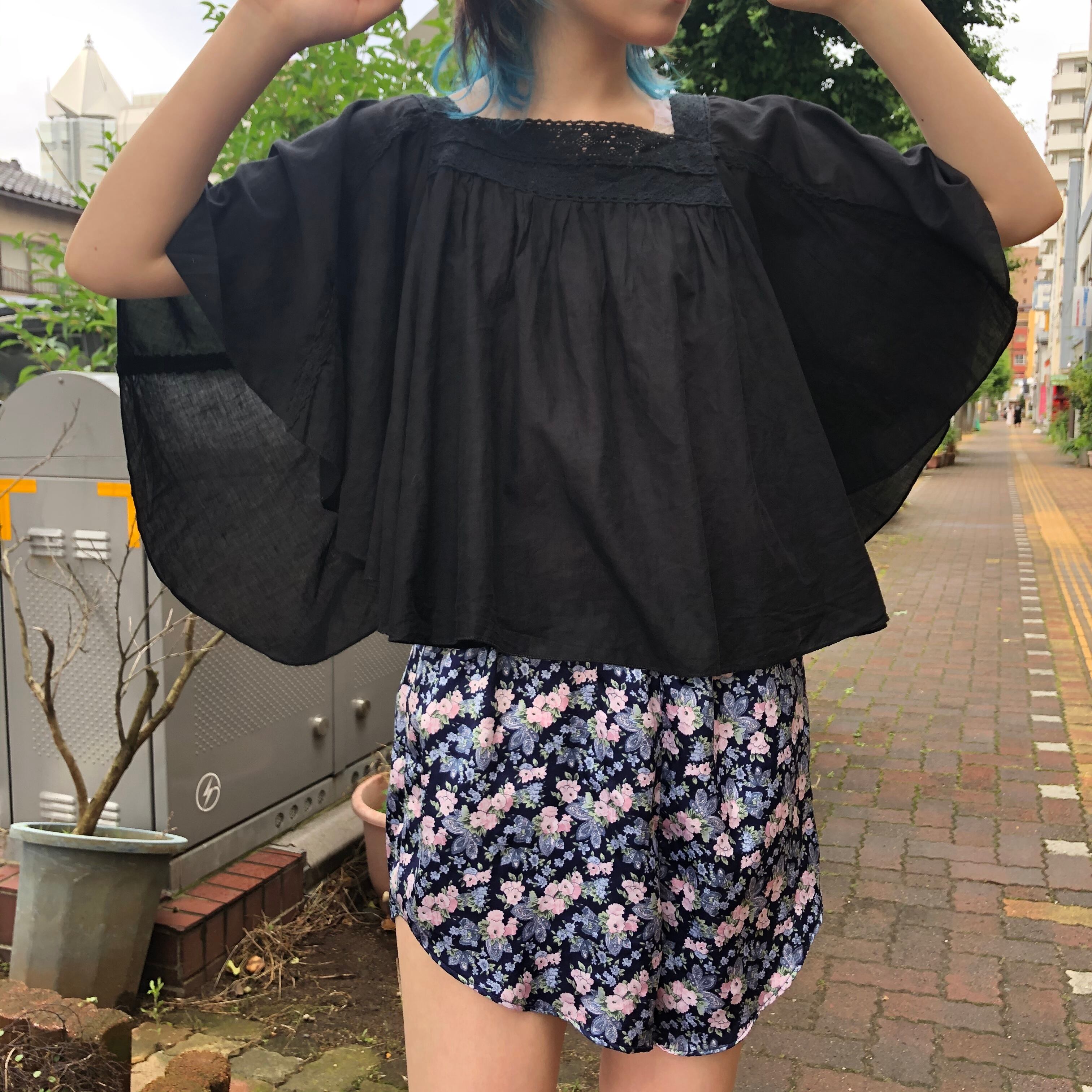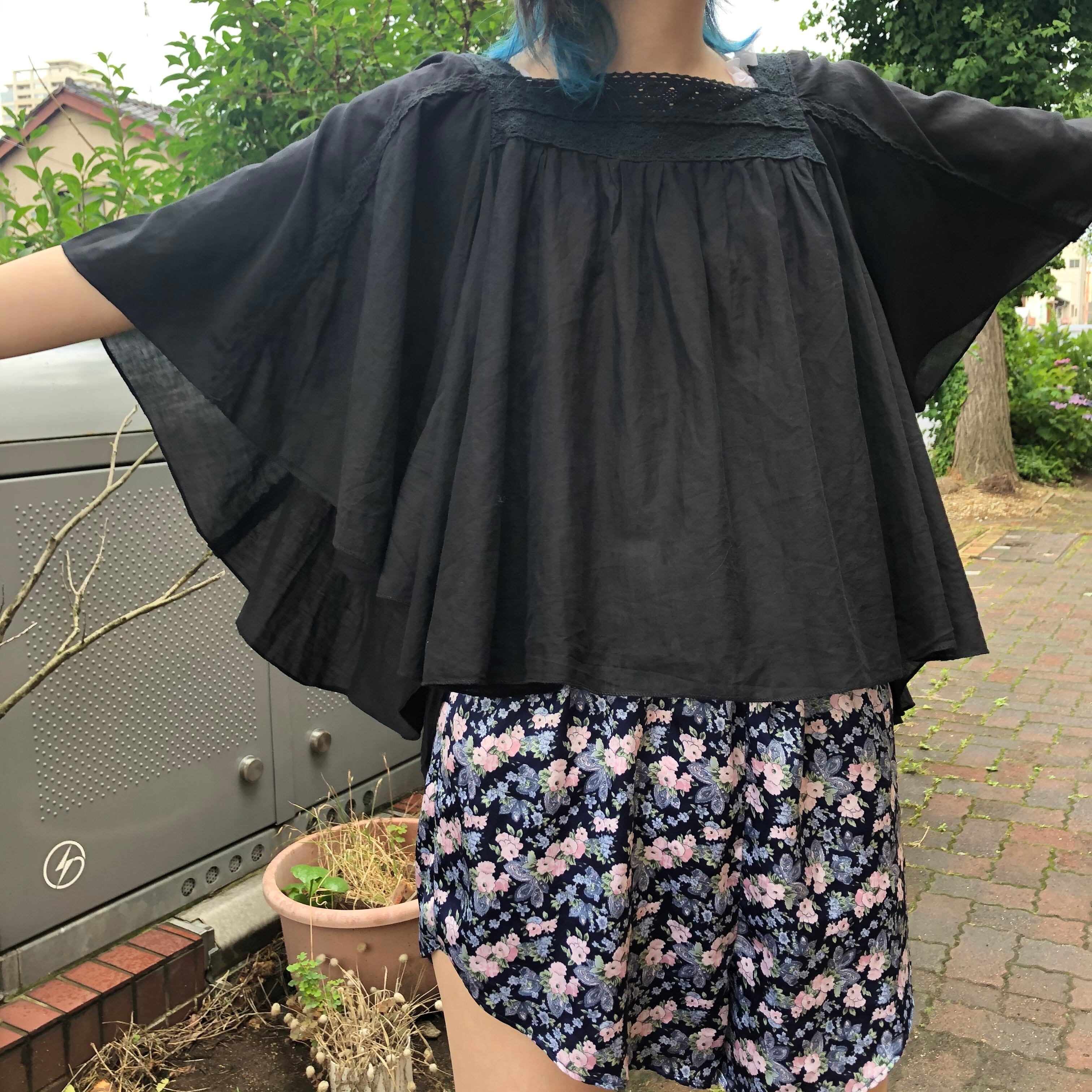生地たっぷりで袖を広げるとモモンガのようなシルエットになるチュニックです。