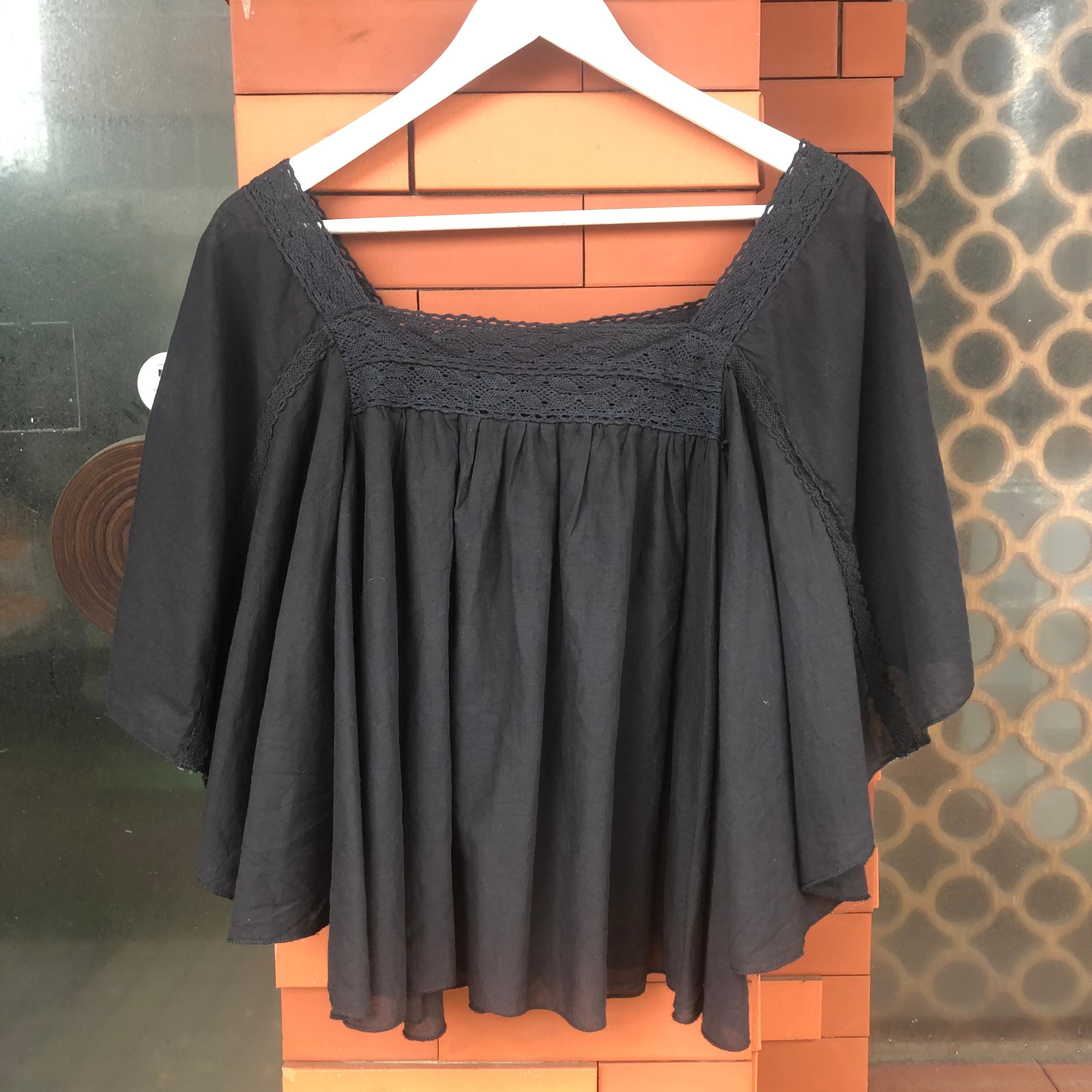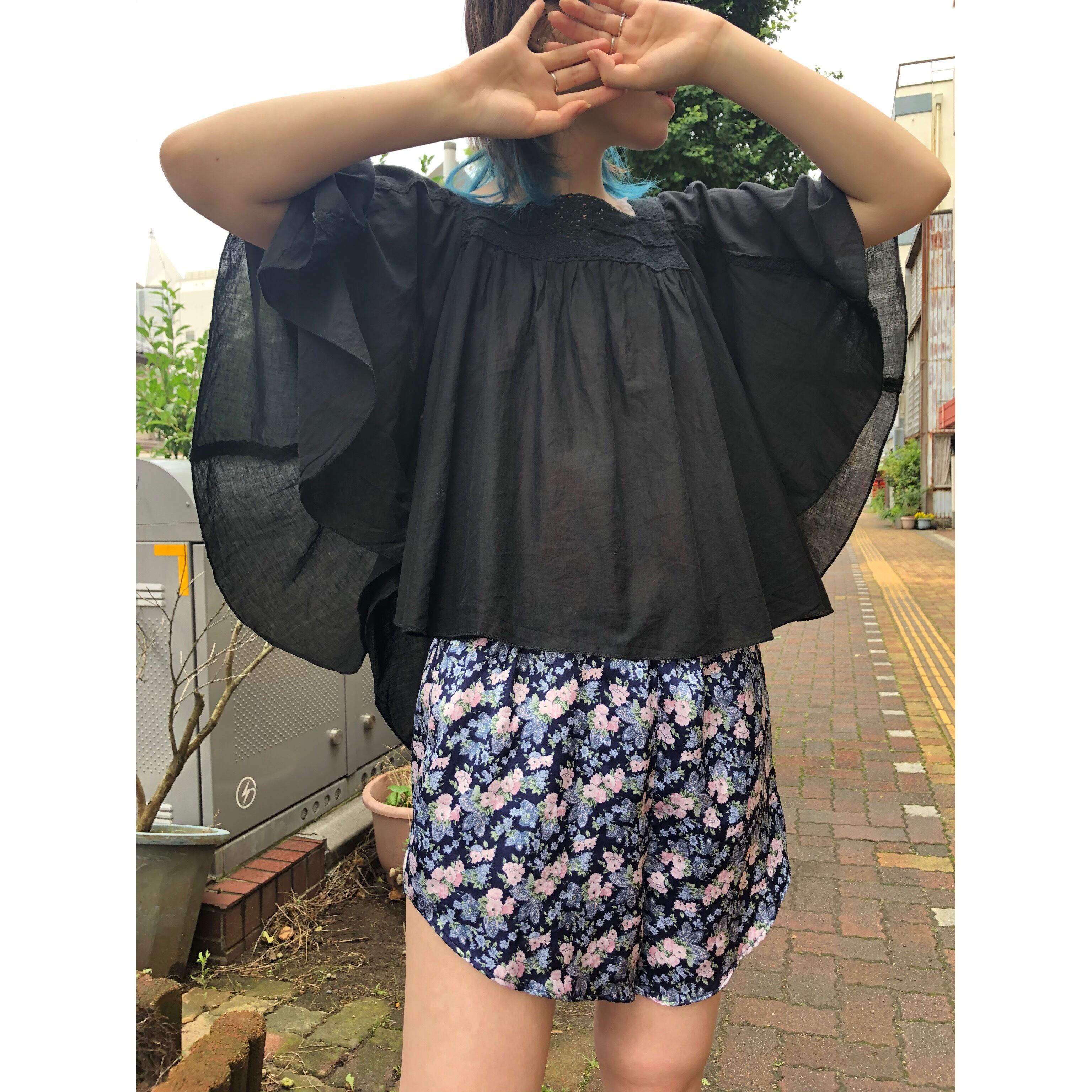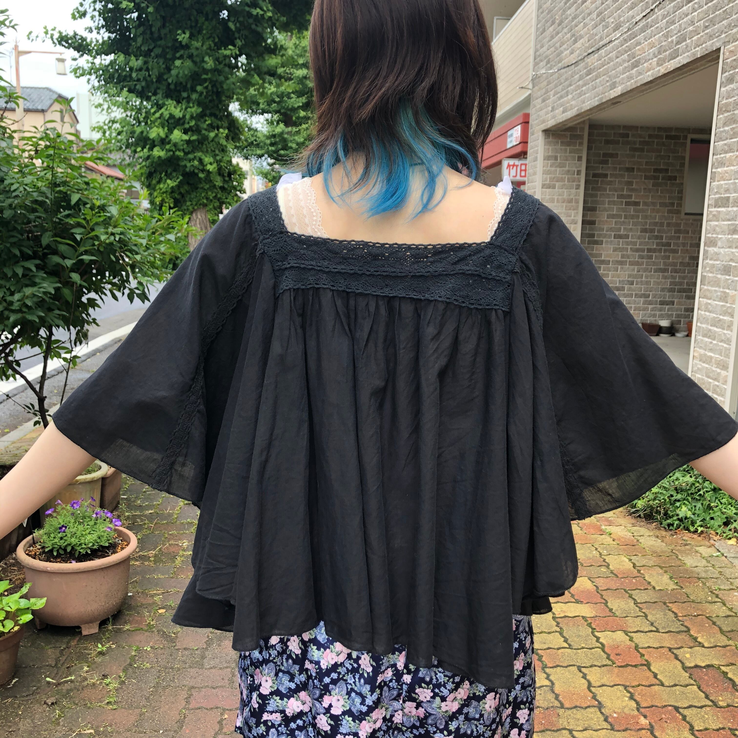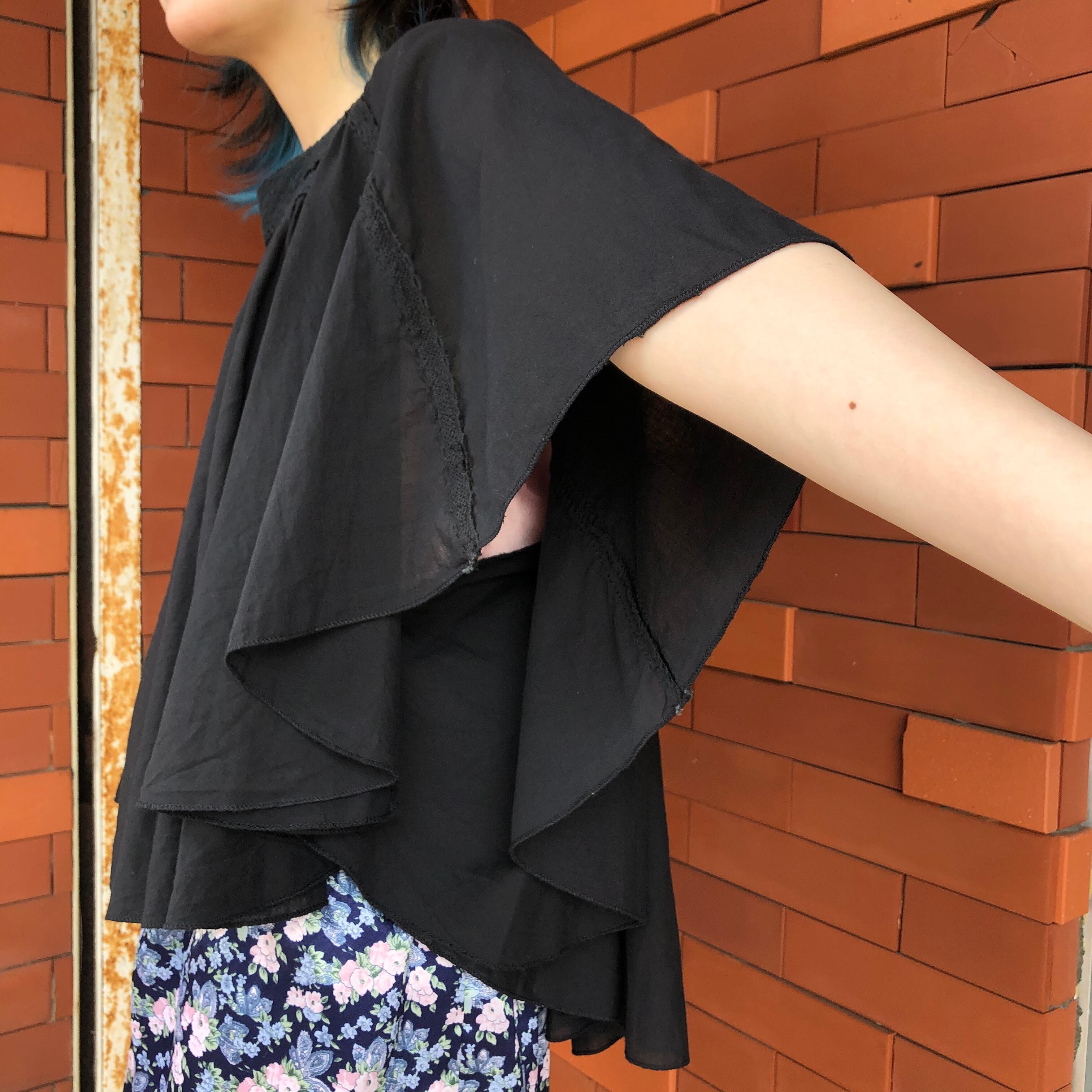 生地たっぷりで袖を広げるとモモンガのようなシルエットになるチュニックです。