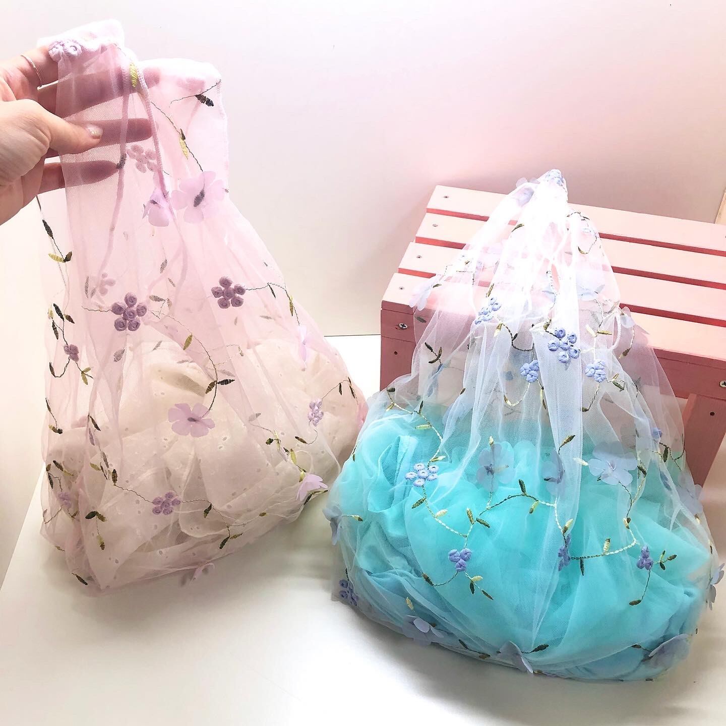 現在¥6000(税抜)以上お買い物してくださったお客様には、お花のチュール バッグを差し上げています。