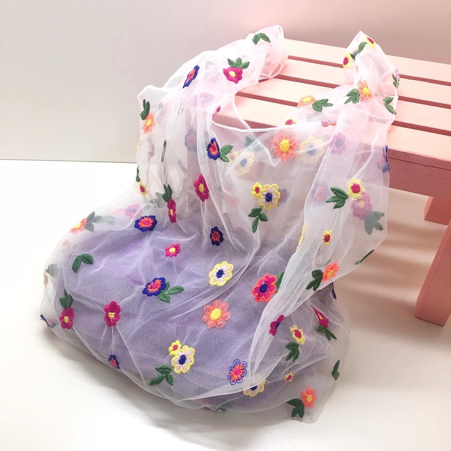 現在¥6600以上お買い物してくださったお客様には、お花のチュール バッグを差し上げています。